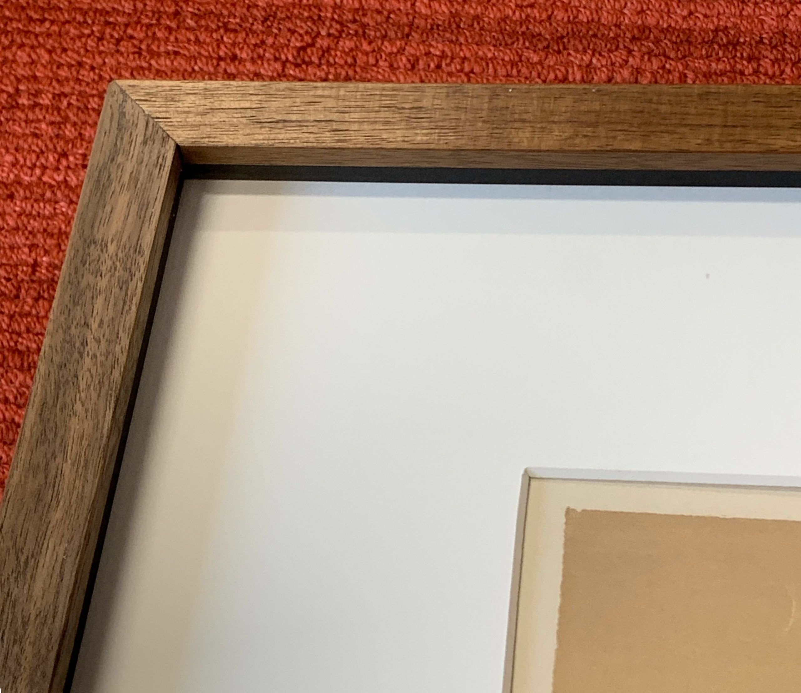 Custom framed in oiled and waxed walnut, with spacers lifting the UV-Filter Plexiglass one-quarter-inch above the mat. All conservation materials.