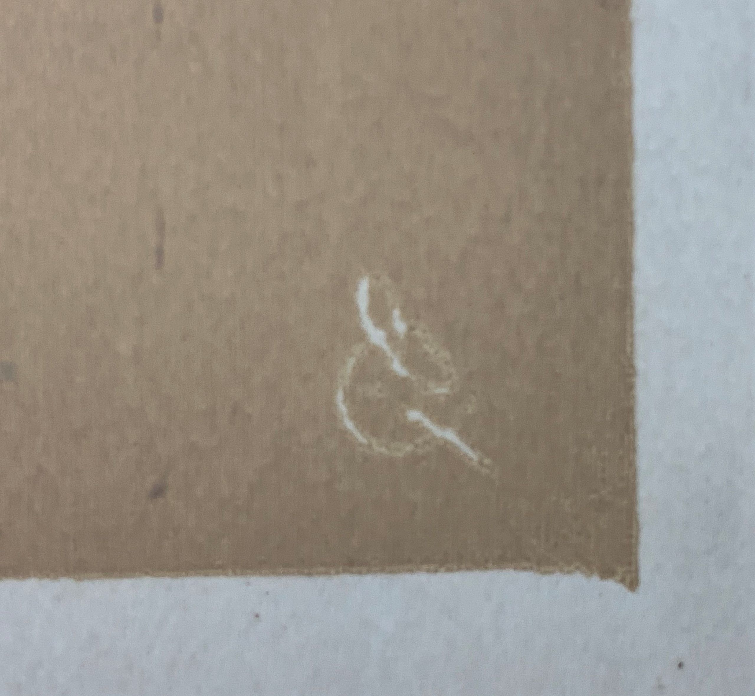 Signed in the plate en recto lower right. Hand-numbered in pencil en recto lower right margin. The monogram stamp of the printer is en recto in the lower left corner of the image.