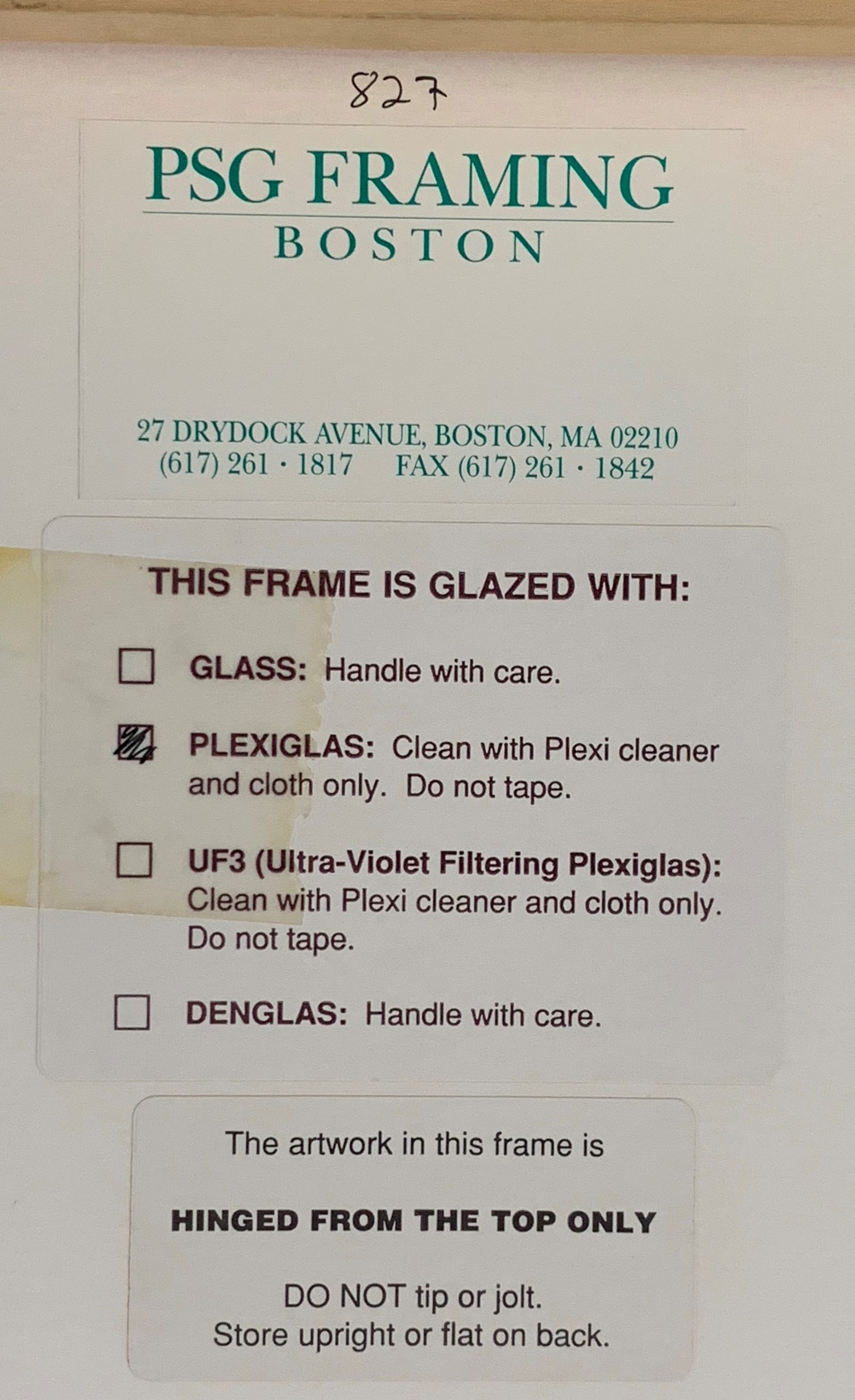 Custom matted and framed in a black-painted heavy wood frame behind 99% UV-filtering Plexiglass.