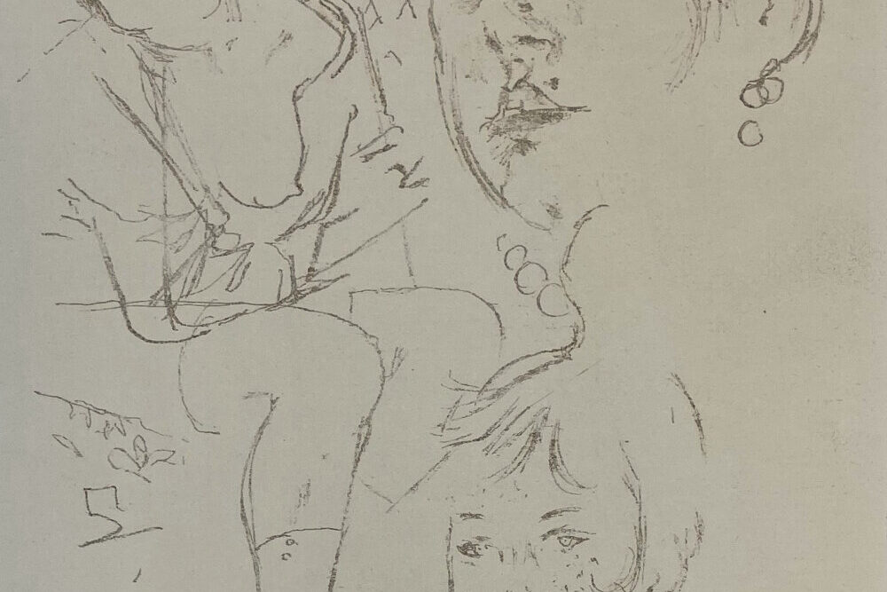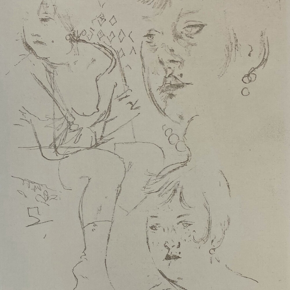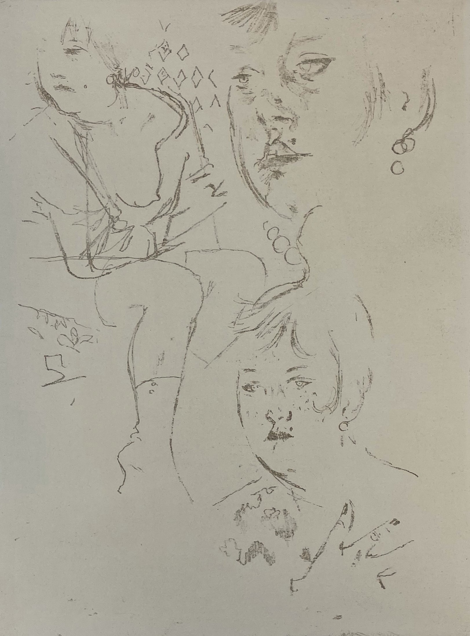 Berthold Brecht’s 1930 film Dreigroschen [The Threepenny Opera] introduced the world to the great musical standards “The Ballad of Mack the Knife” and “Pirate Jenny”, among others. More than that, it was a biting socialist critique of the capitalist world, and in that regard it resonated with Jack Levine, one of the great social critic artists in the mold of Philip Evergood, Leonard Baskin, and George Gropper. Levine was inspired by Dreigroschen—and his memories of truancies from school, occasions in which he would tour the erotic temptations of Boston—to make a suite of pictures, of which this etching is the 13th plate.