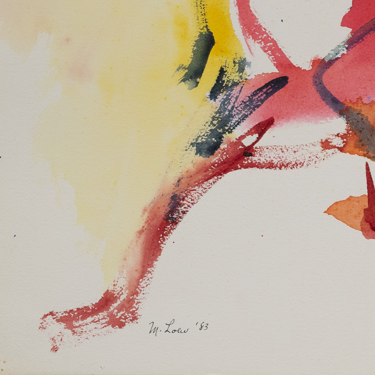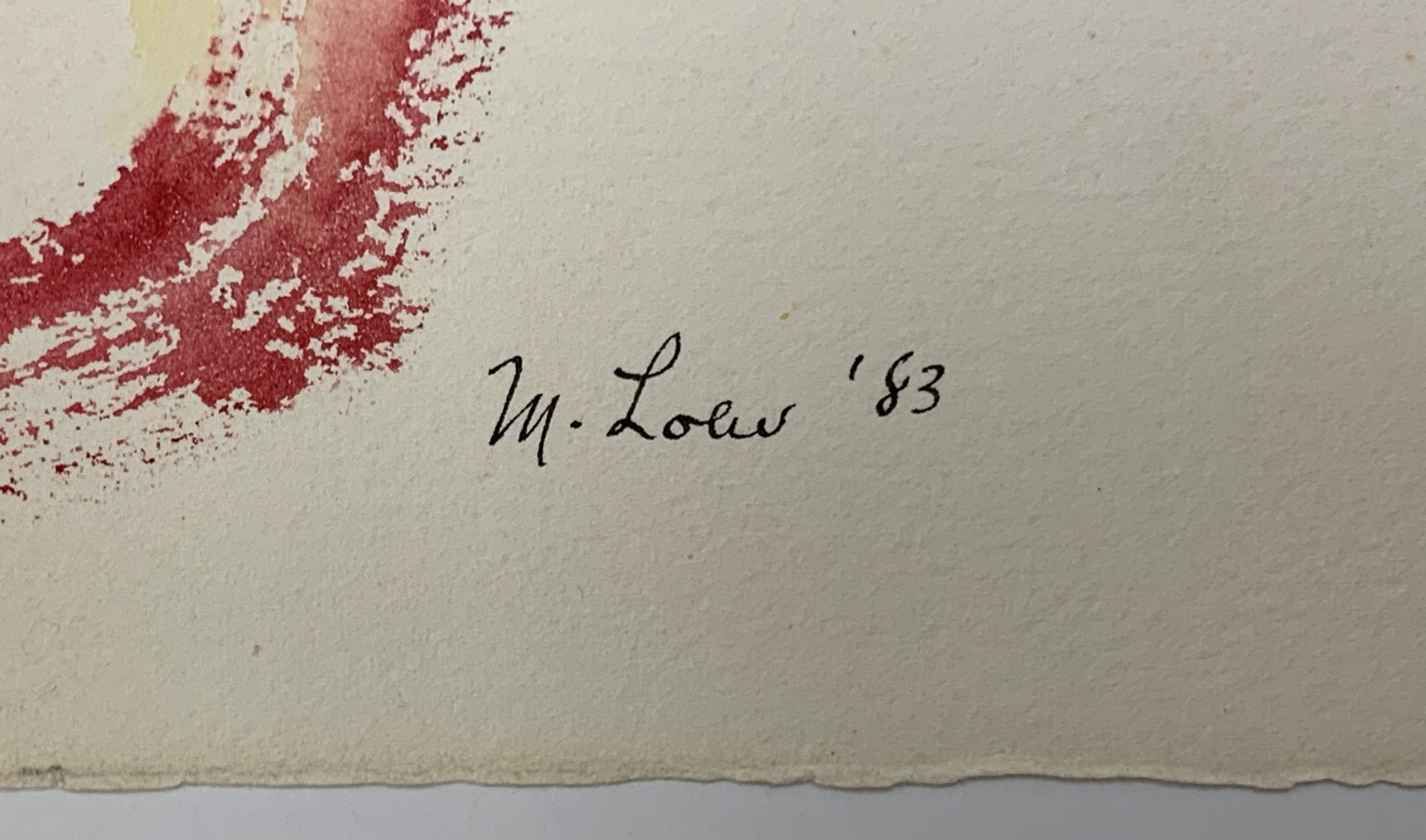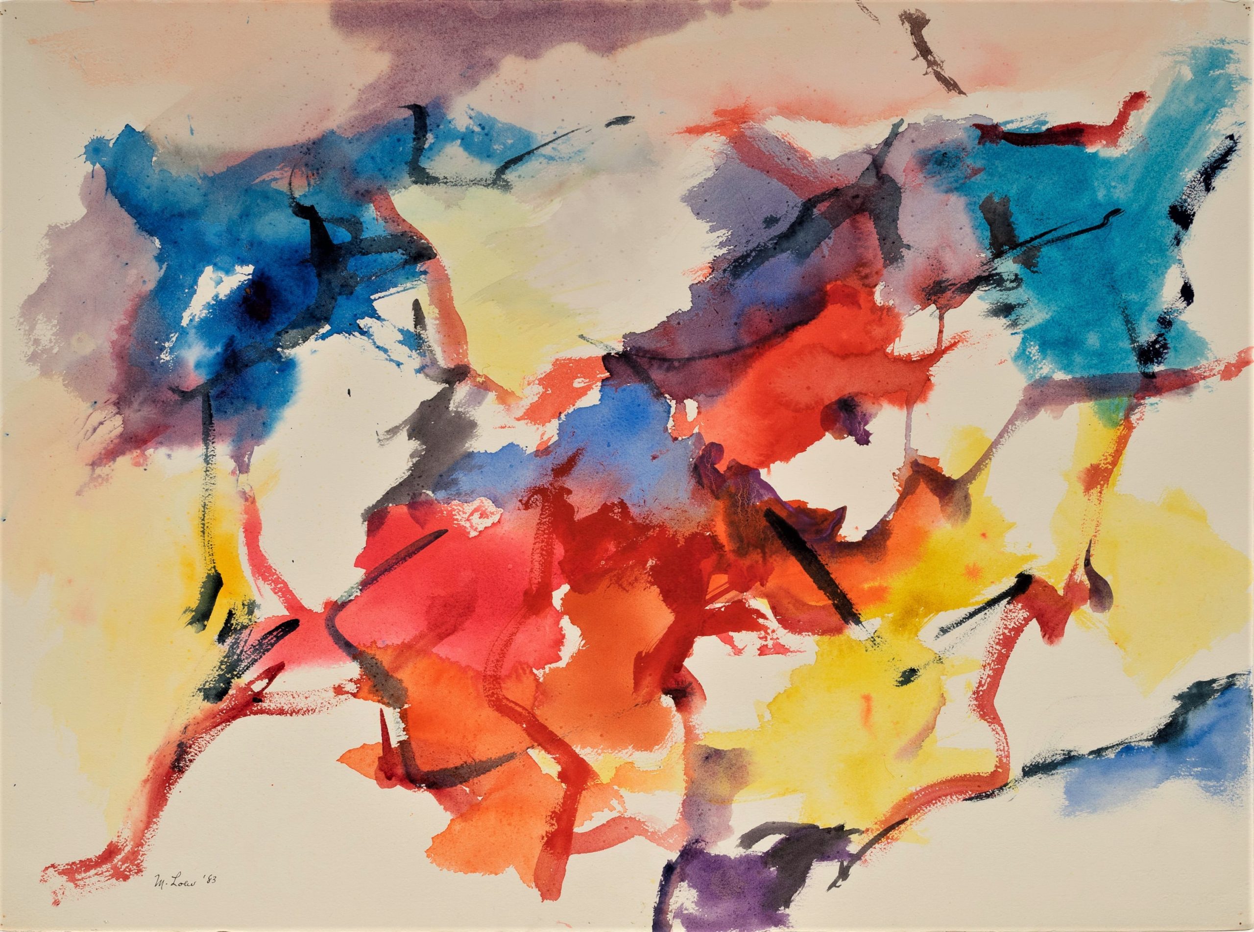This watercolor shows Loew at his best.  His use of colors across the palette—dark and brooding and soft and pastel—creates evocative and compelling works.  Loew is one of few abstractionists who paint abstractions of real items, though that is not always entirely clear to the viewer.