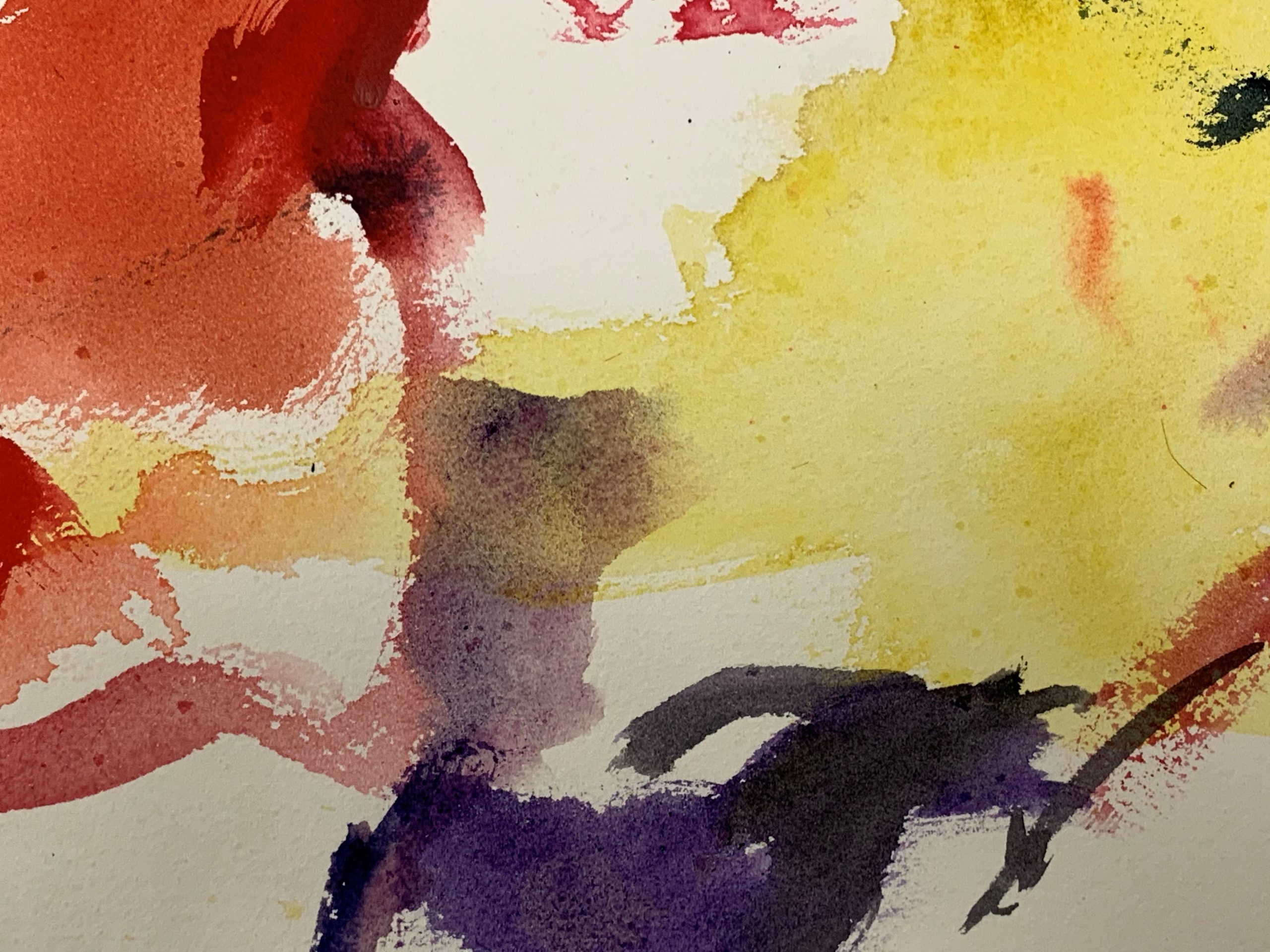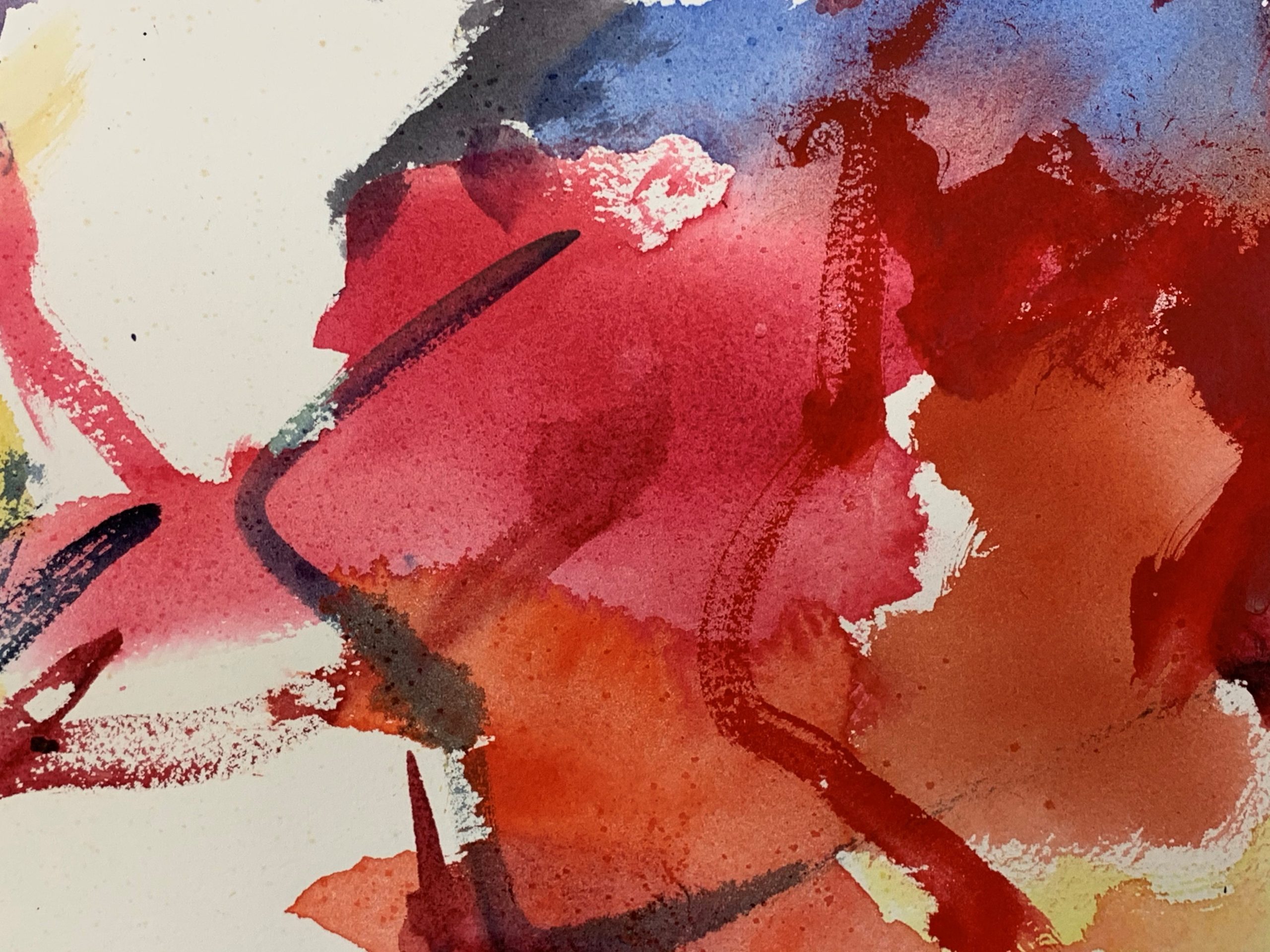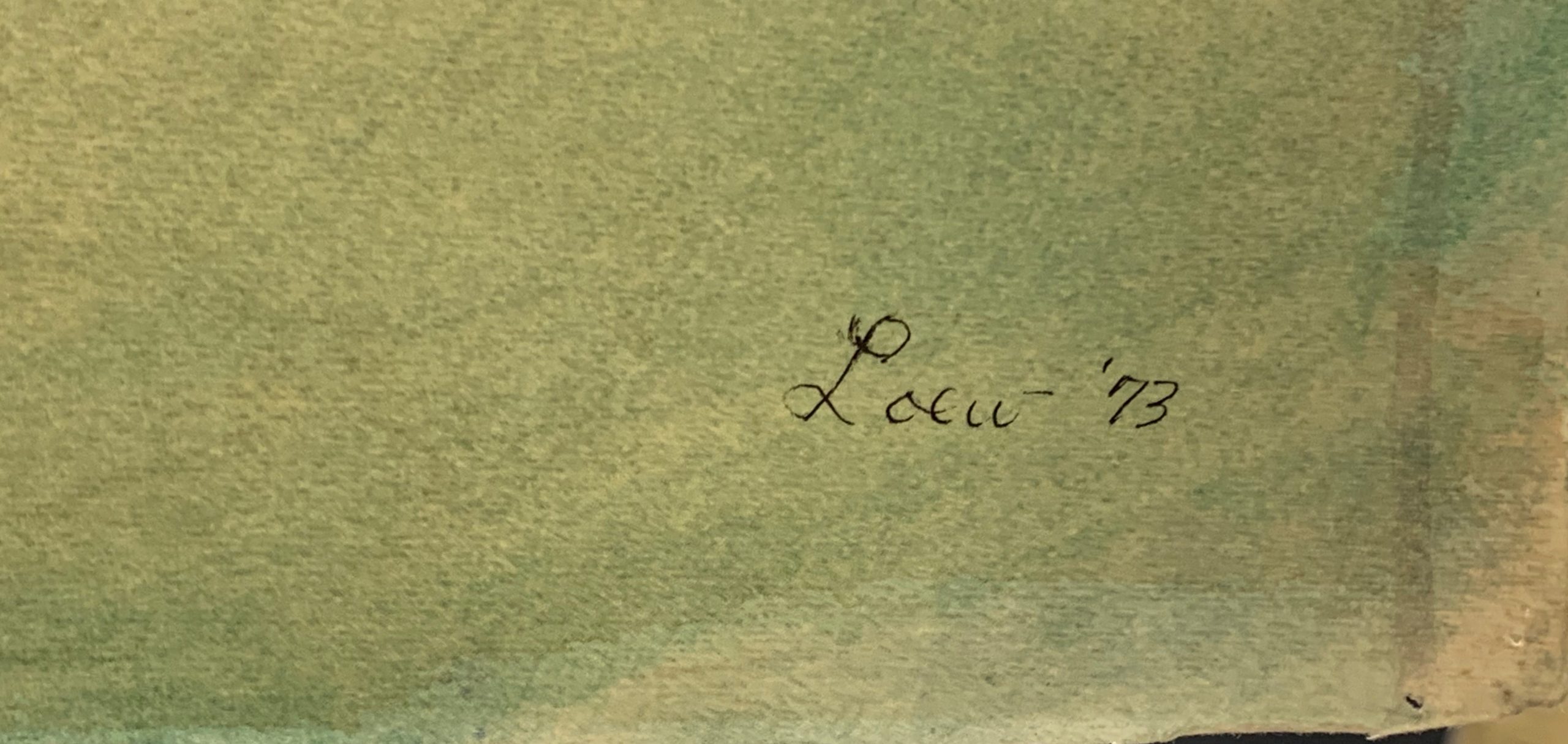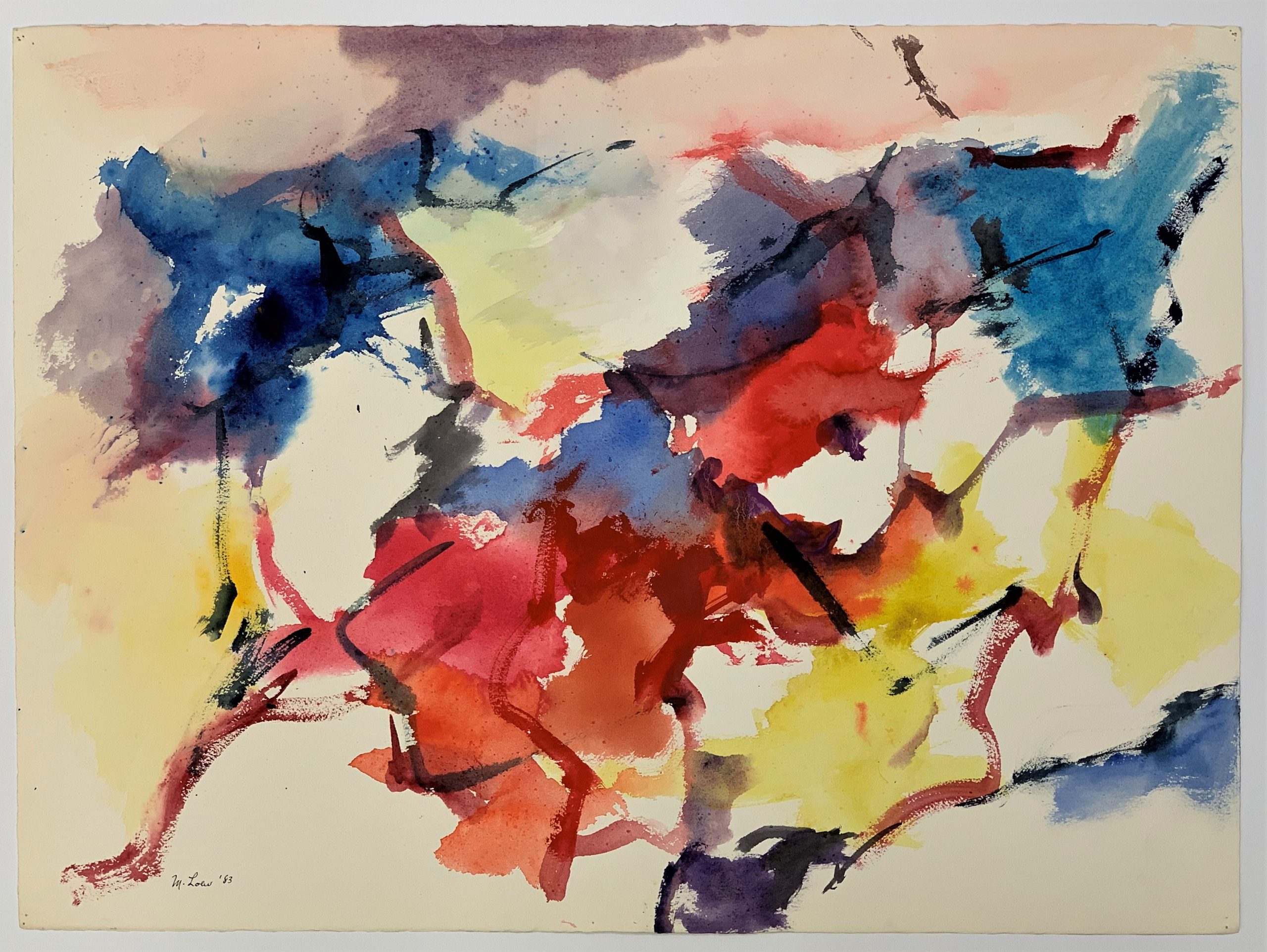 This watercolor shows Loew at his best.  His use of colors across the palette—dark and brooding and soft and pastel—creates evocative and compelling works.  Loew is one of few abstractionists who paint abstractions of real items, though that is not always entirely clear to the viewer.