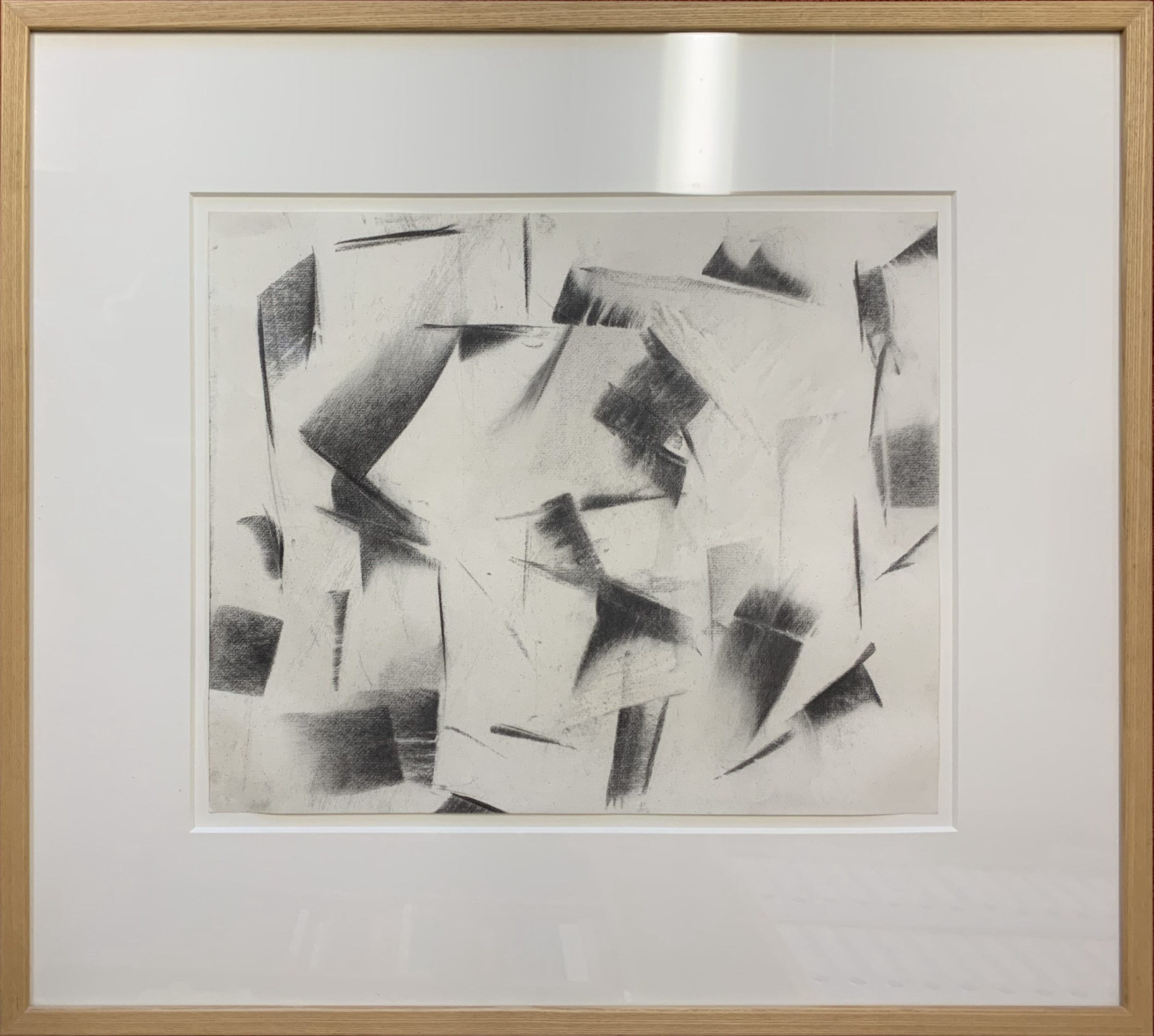 Michael Loew started his art career painting portraits and depictions of urban life.  But after serving in the Navy during World War II, he lost interest in representational work and moved full-tilt to abstractionism.  He then spent the next forty years teaching and painting abstract works.  This picture is a rare instance of Loew working with charcoal.
