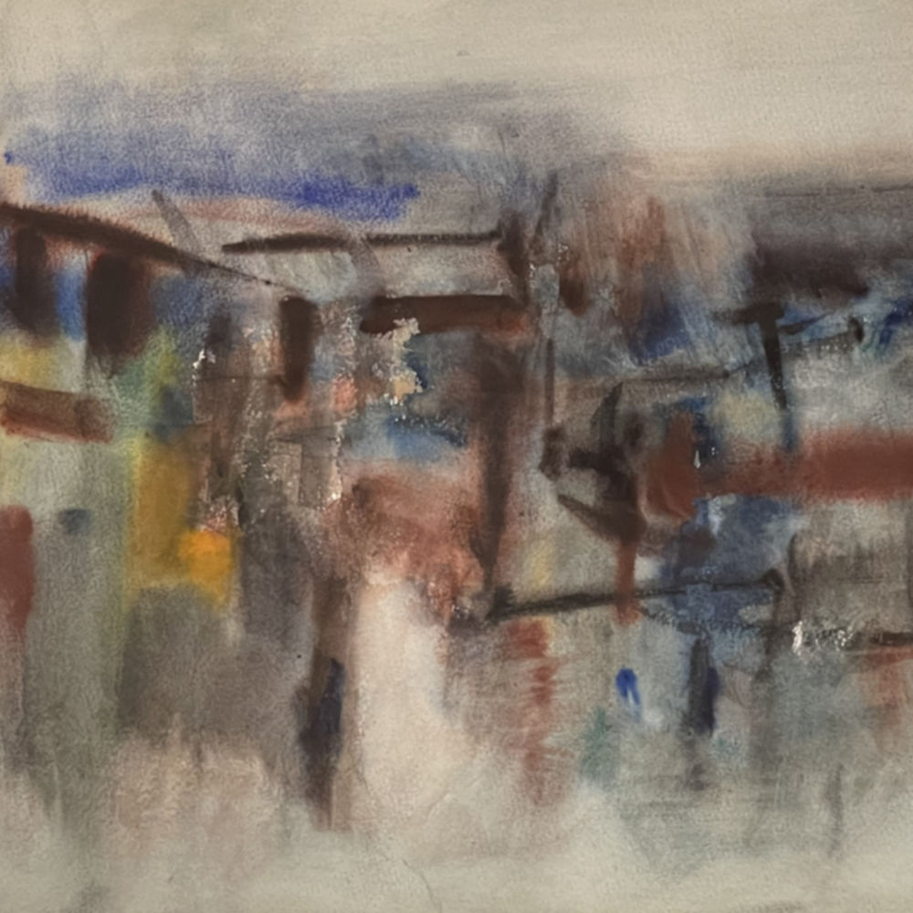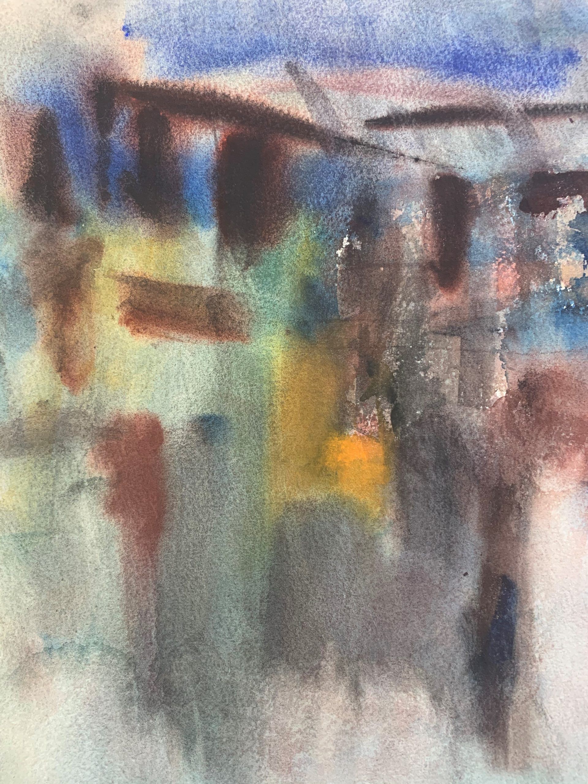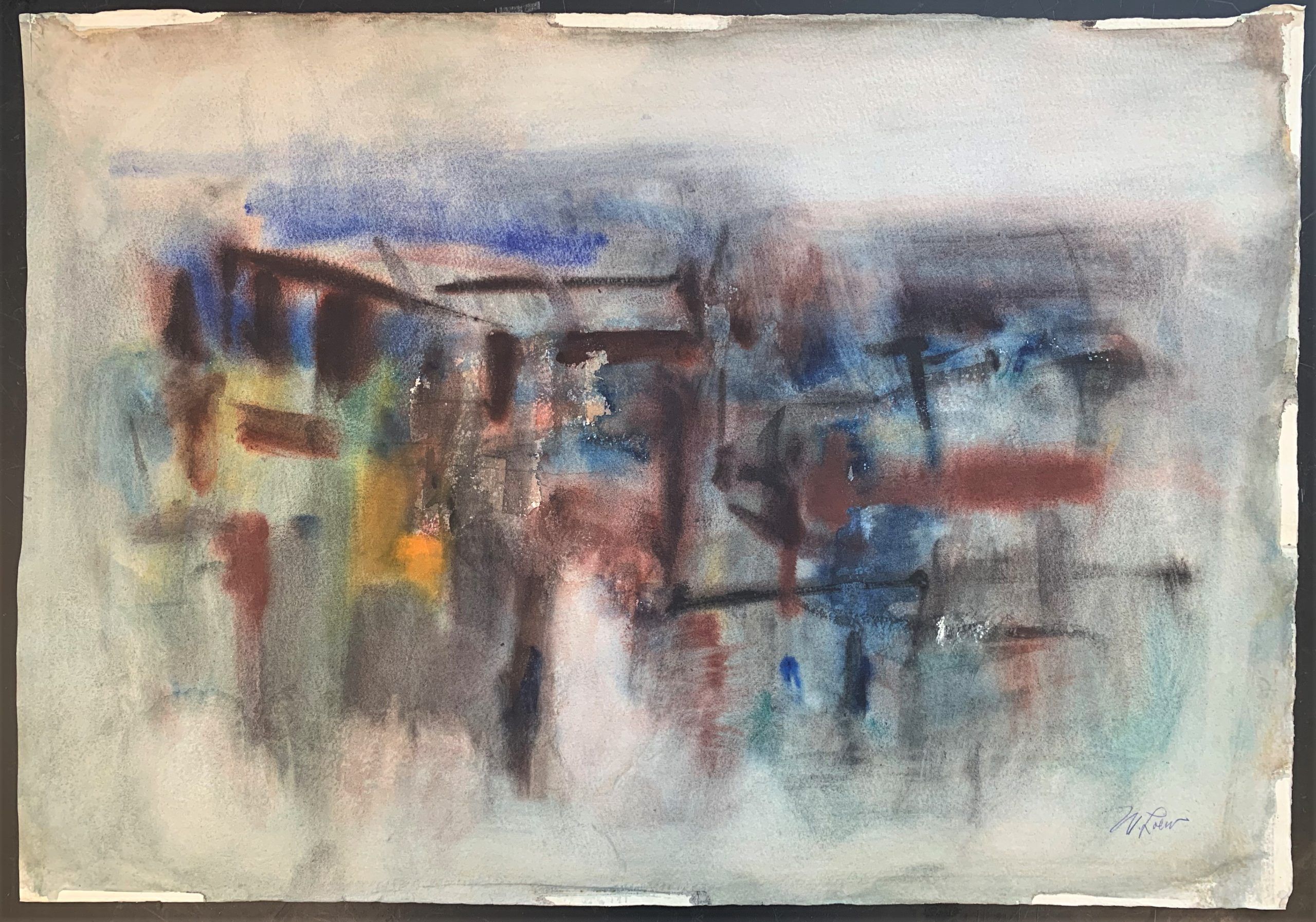This watercolor shows Loew at his best.  His use of colors across the palette—dark and brooding and soft and pastel—creates evocative and compelling works.  Loew is one of few abstractionists who paint abstractions of real items, though that is not always entirely clear to the viewer.