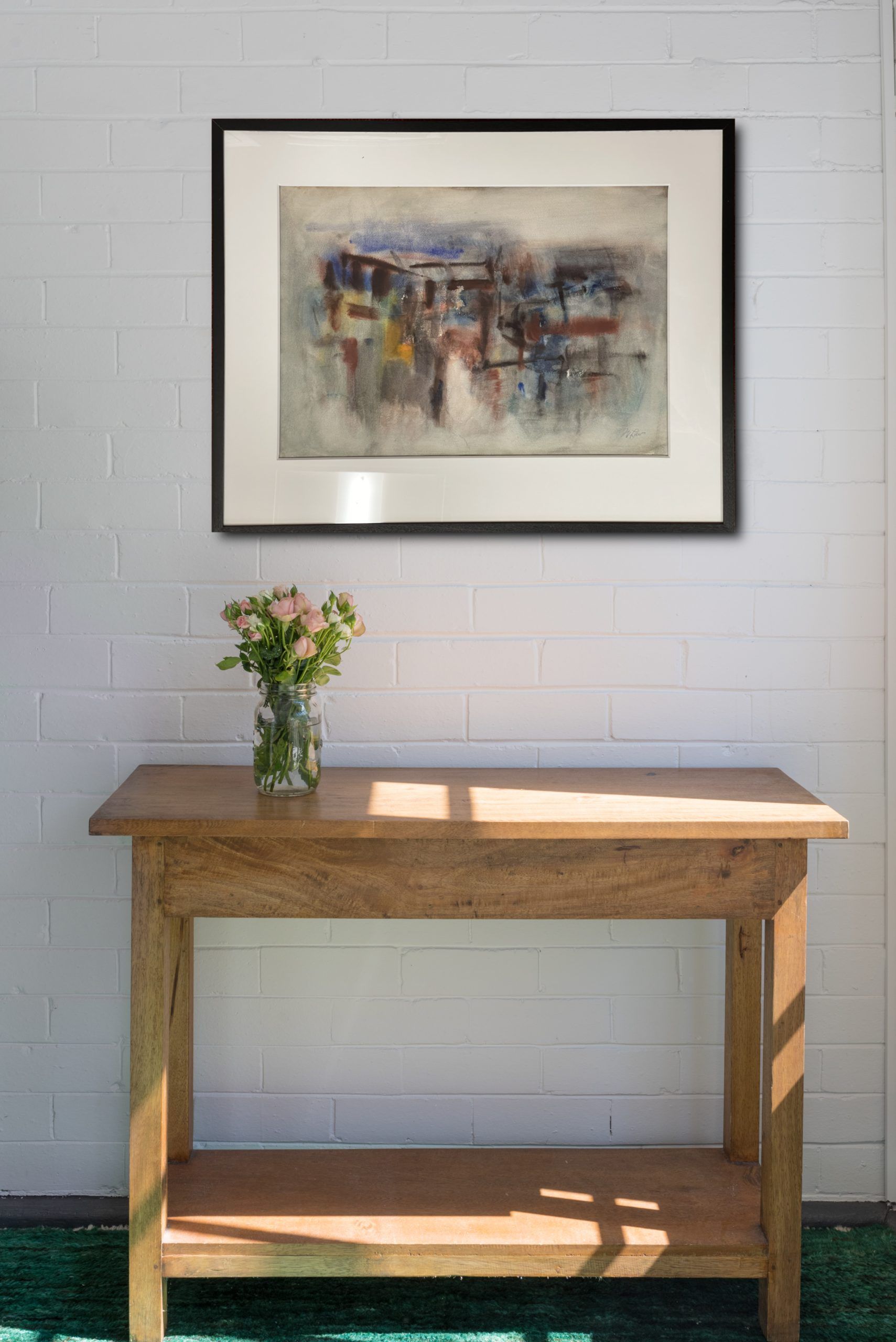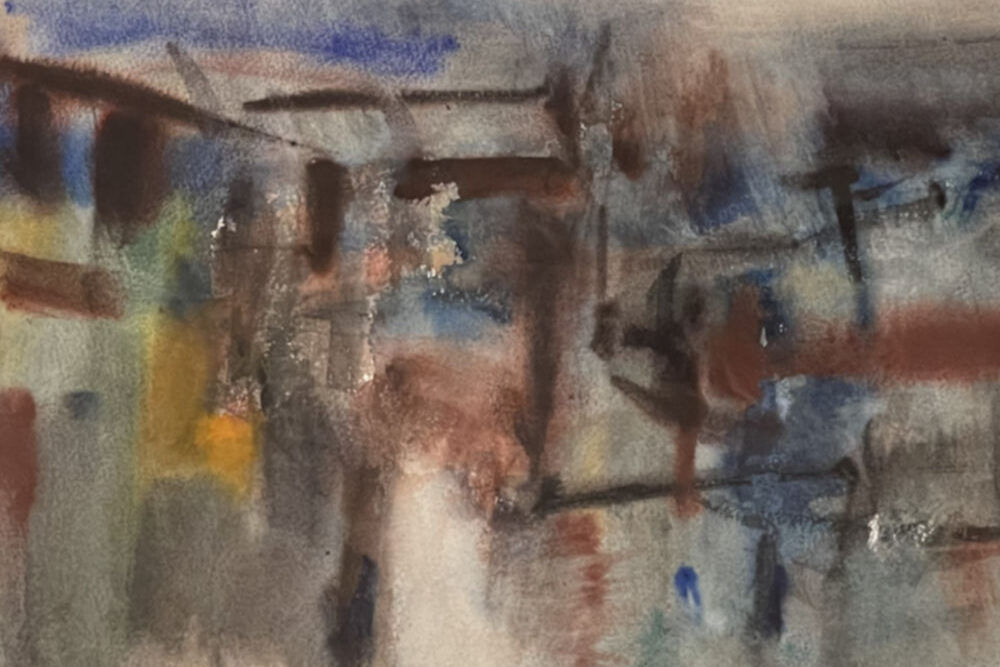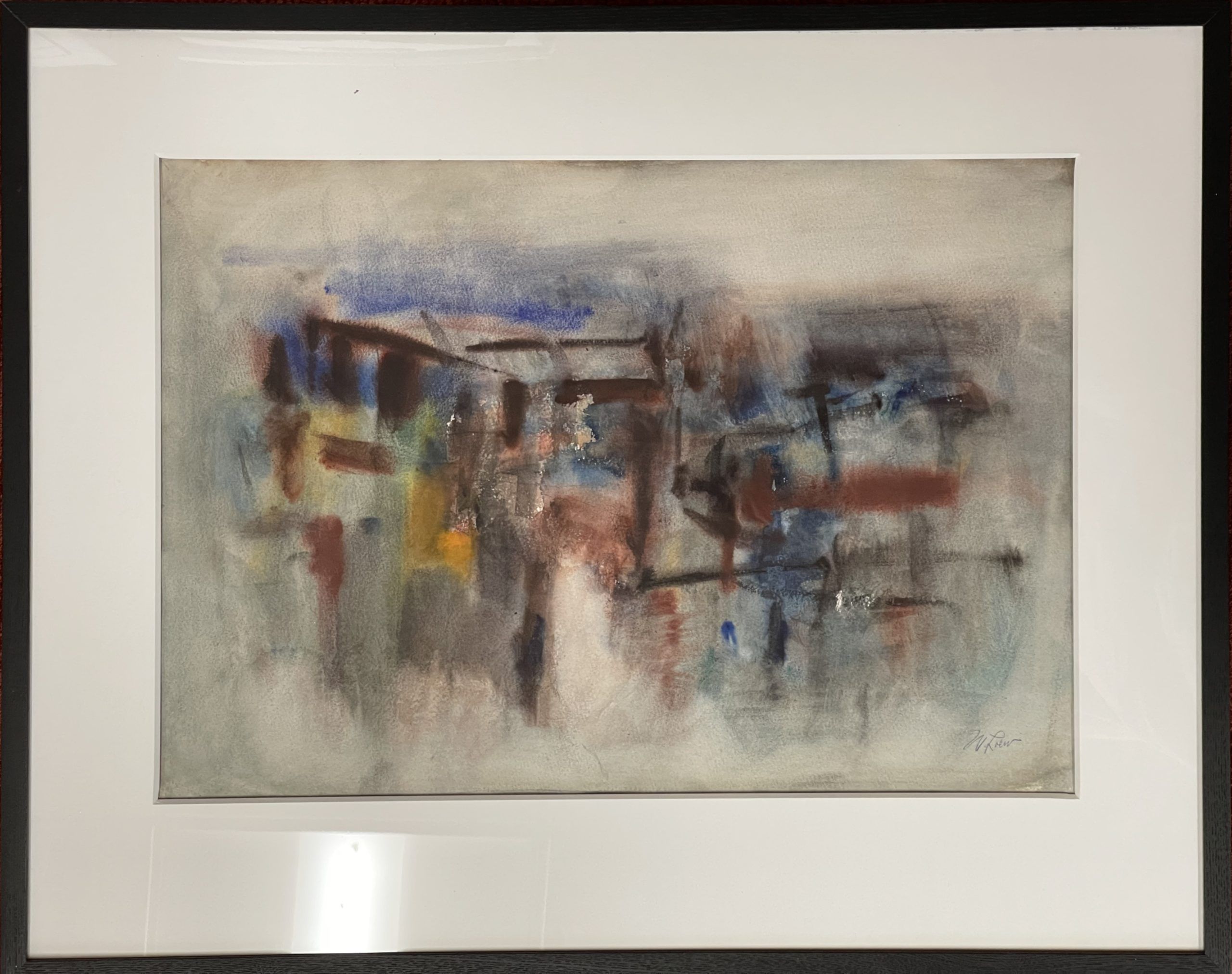 This watercolor shows Loew at his best.  His use of colors across the palette—dark and brooding and soft and pastel—creates evocative and compelling works.  Loew is one of few abstractionists who paint abstractions of real items, though that is not always entirely clear to the viewer.