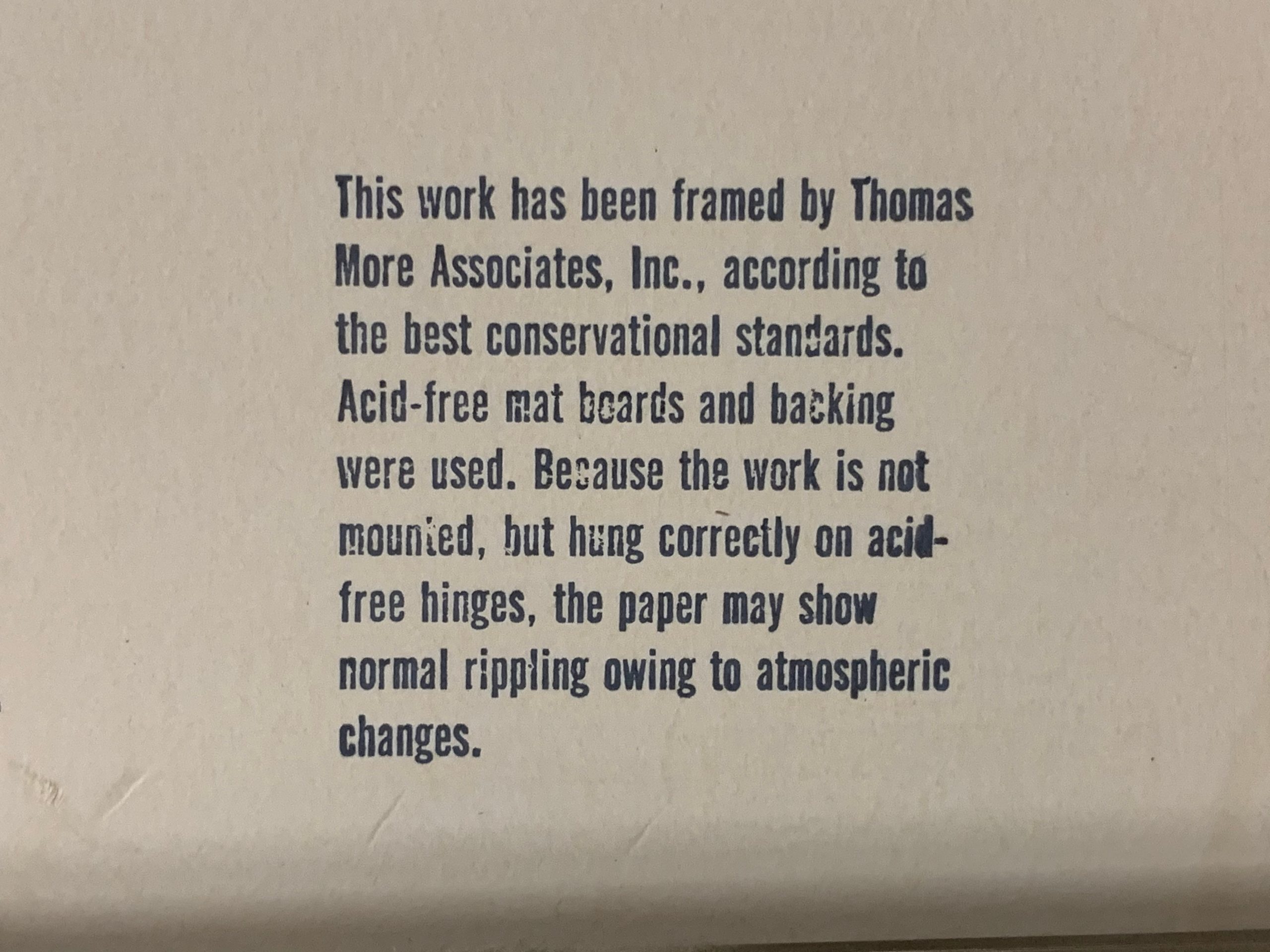 Framed and matted by Thomas More Associates, a prominent period framer.