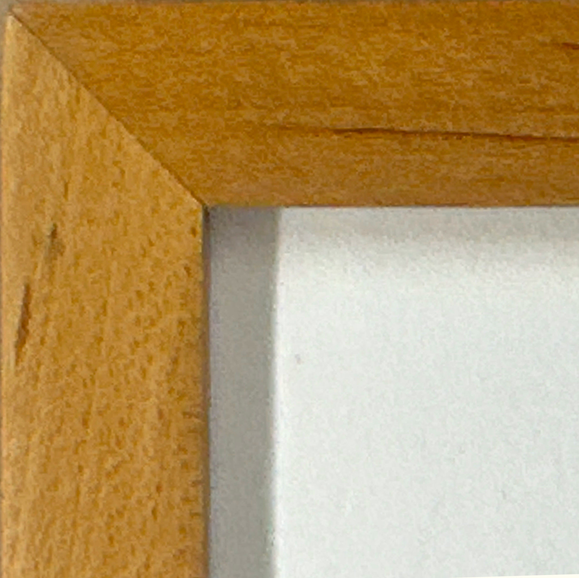 Custom framed in a solid beech frame behind 99% UV-blocking art glass using strictly conservation-grade materials.