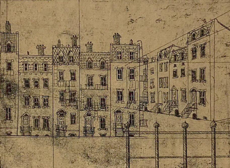 Etching on tan wove paper.