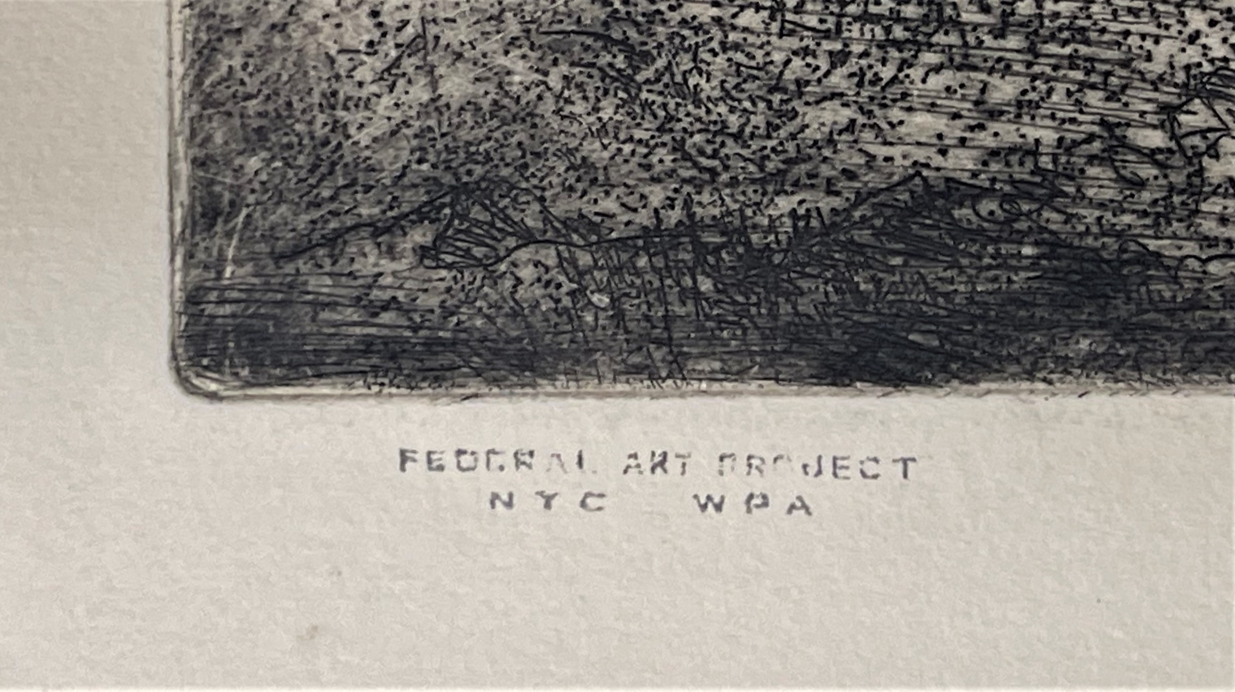 Hand-signed by the artist, in pencil, en recto lower right. Titled en recto lower center. With the stamp of the Federal Art Project en recto lower left.