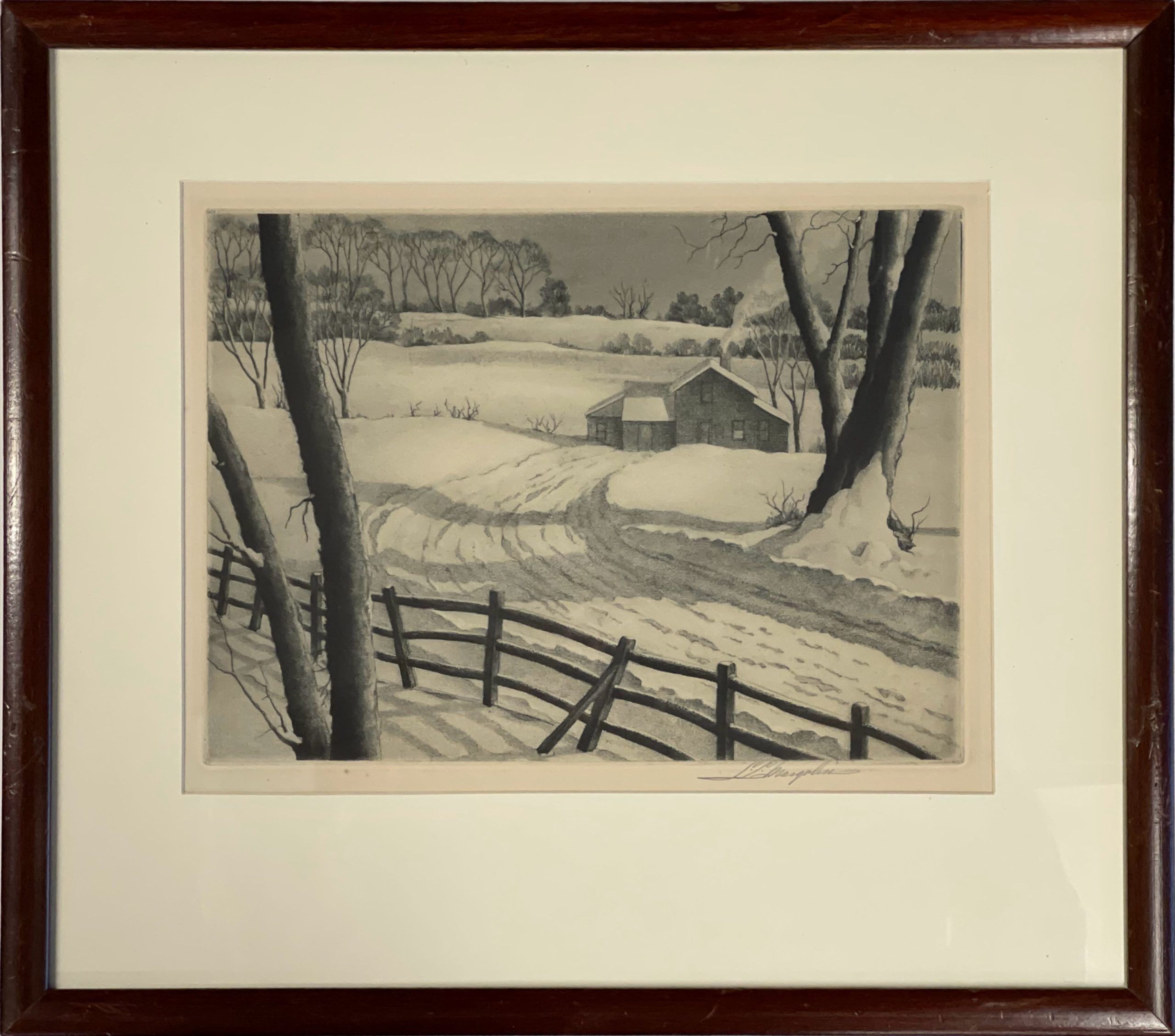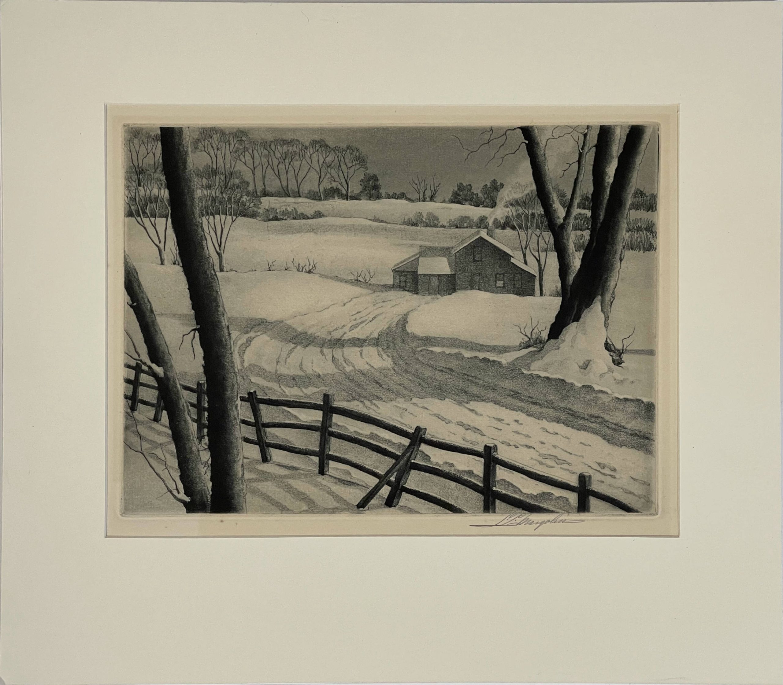 This work is a classic example of Samuel L. Margolies’ works: A peaceful winter scene.