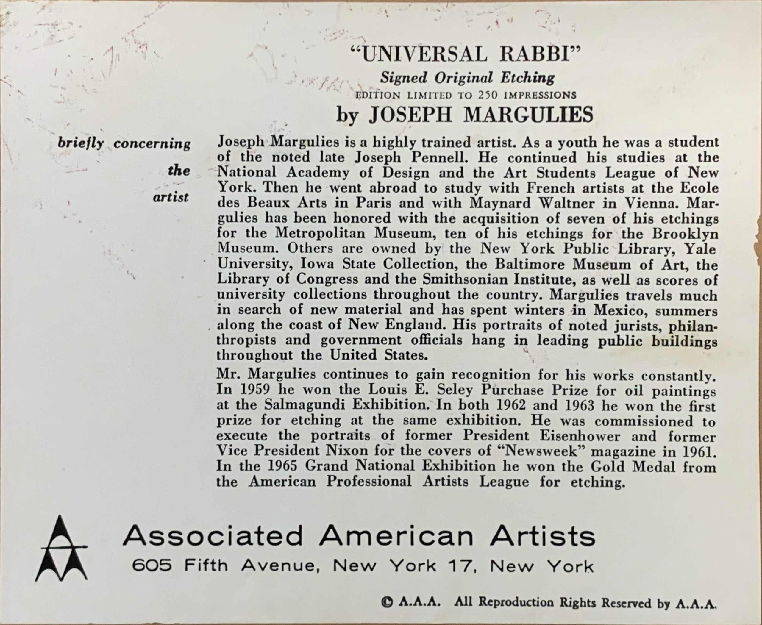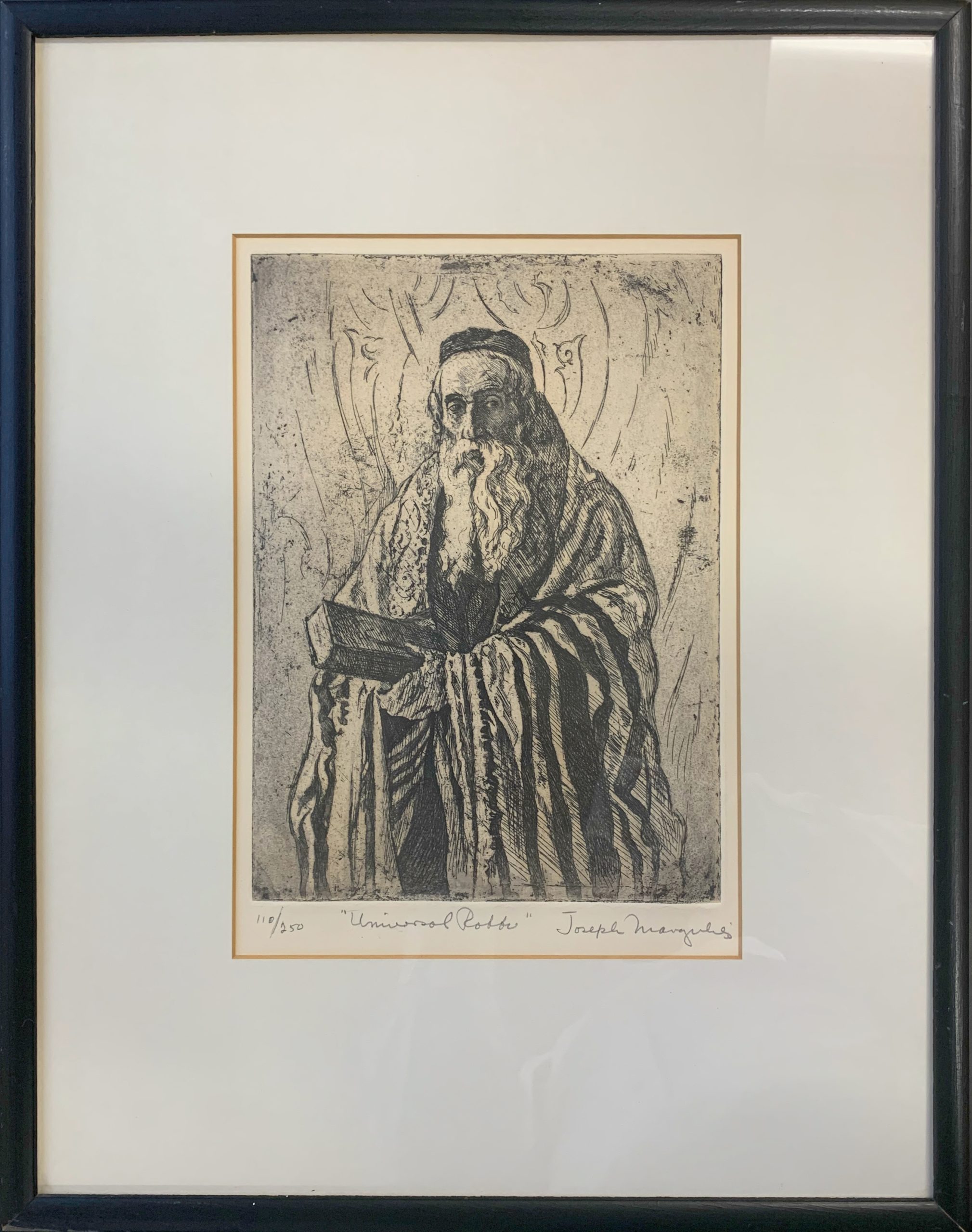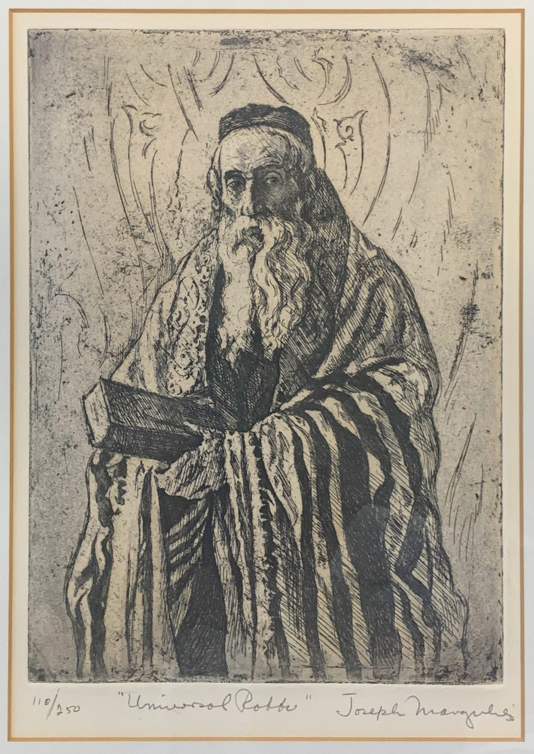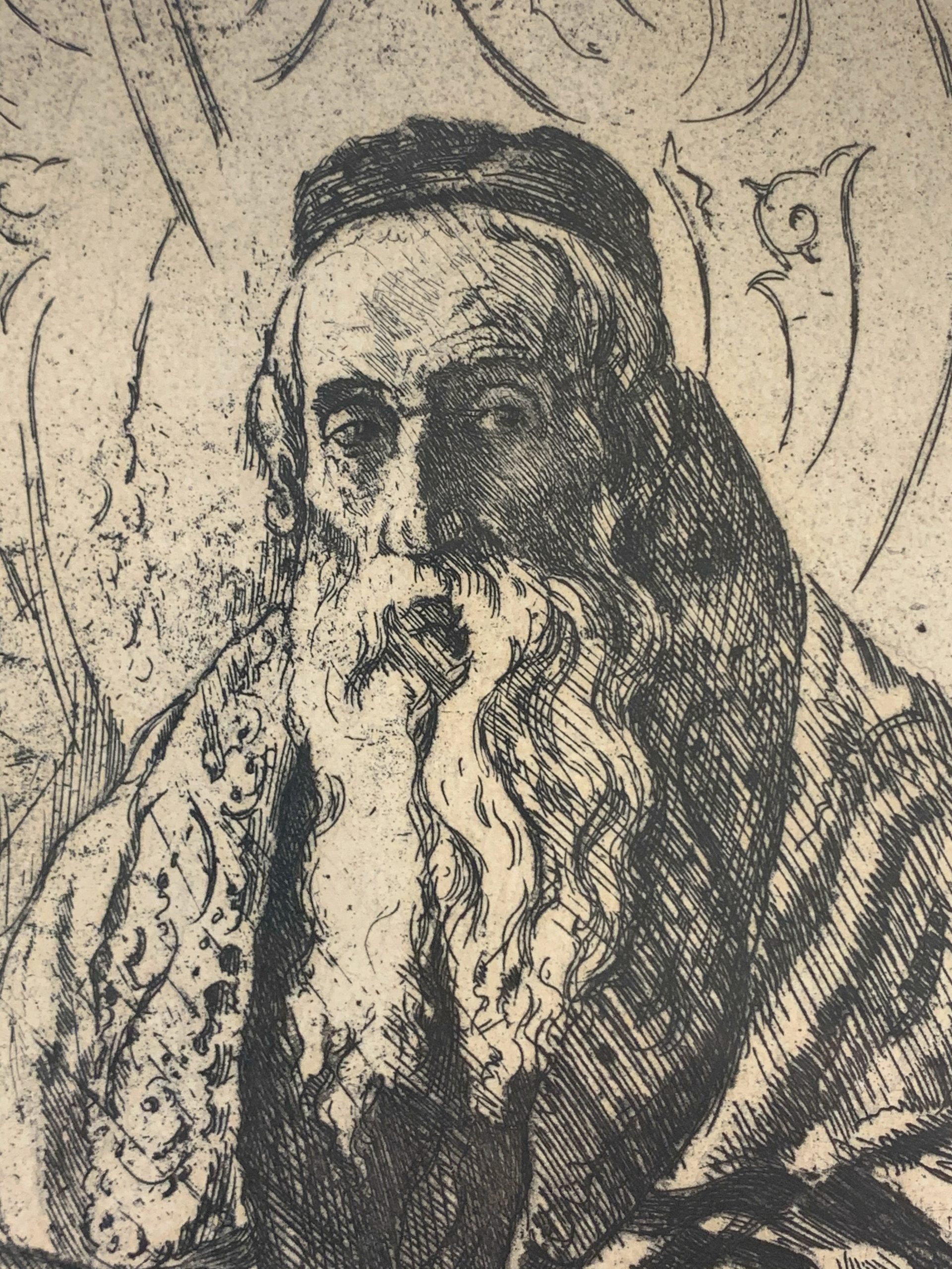 A masterful etching by Joseph Margulies, a universally-acknowledged master of the art. A rabbi, with thoughtful brooding eyes.