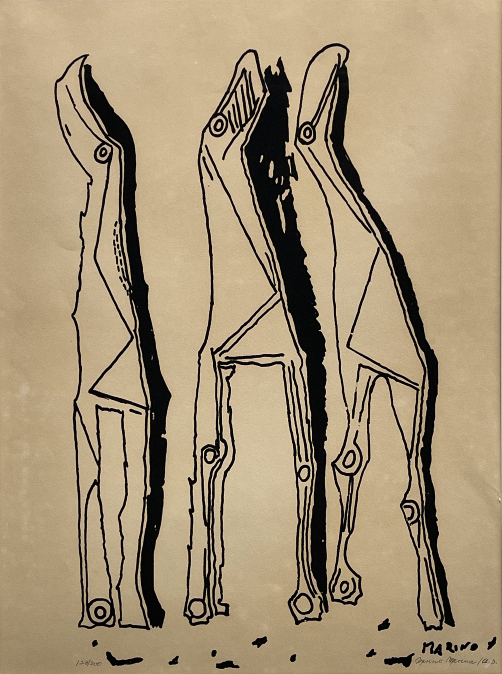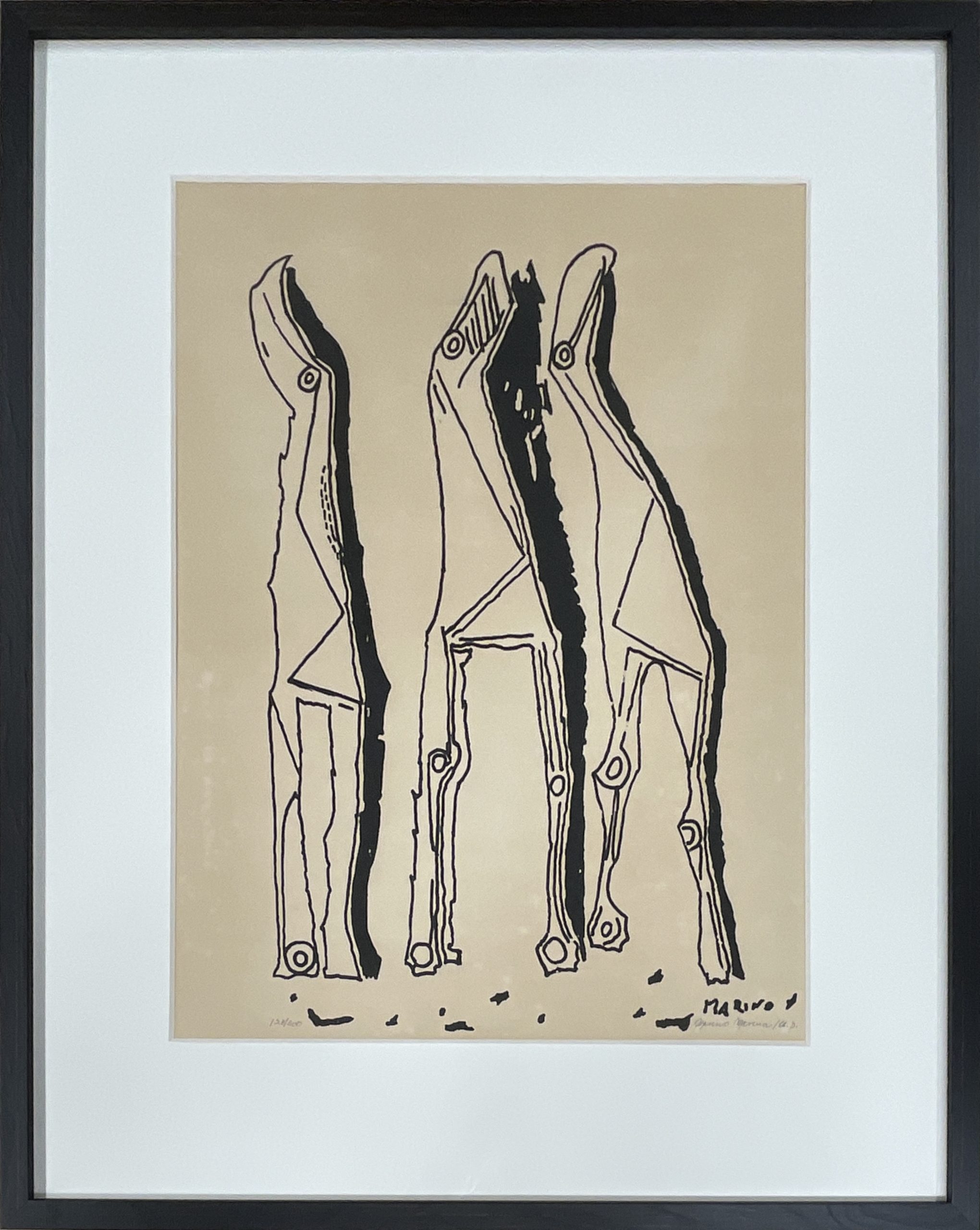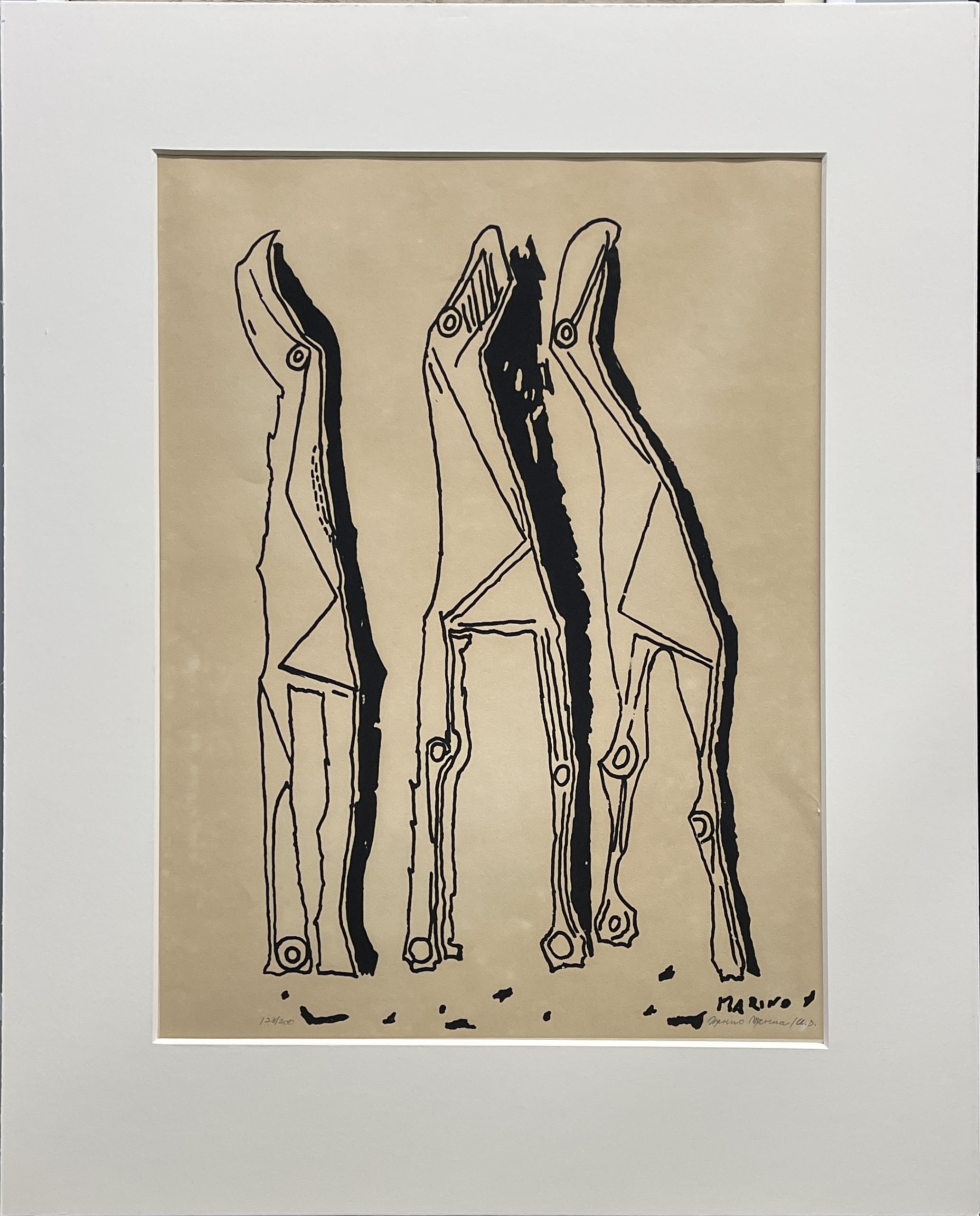 This work is part of sculptor and artist Marino Marini’s iconic series of Cubist-inspired abstractions of horses. Nicely framed to stabilize UV damage. Because of the application in pencil of the artist’s name under his signature in the plate, we offer this at our cost as a non-authenticated work.