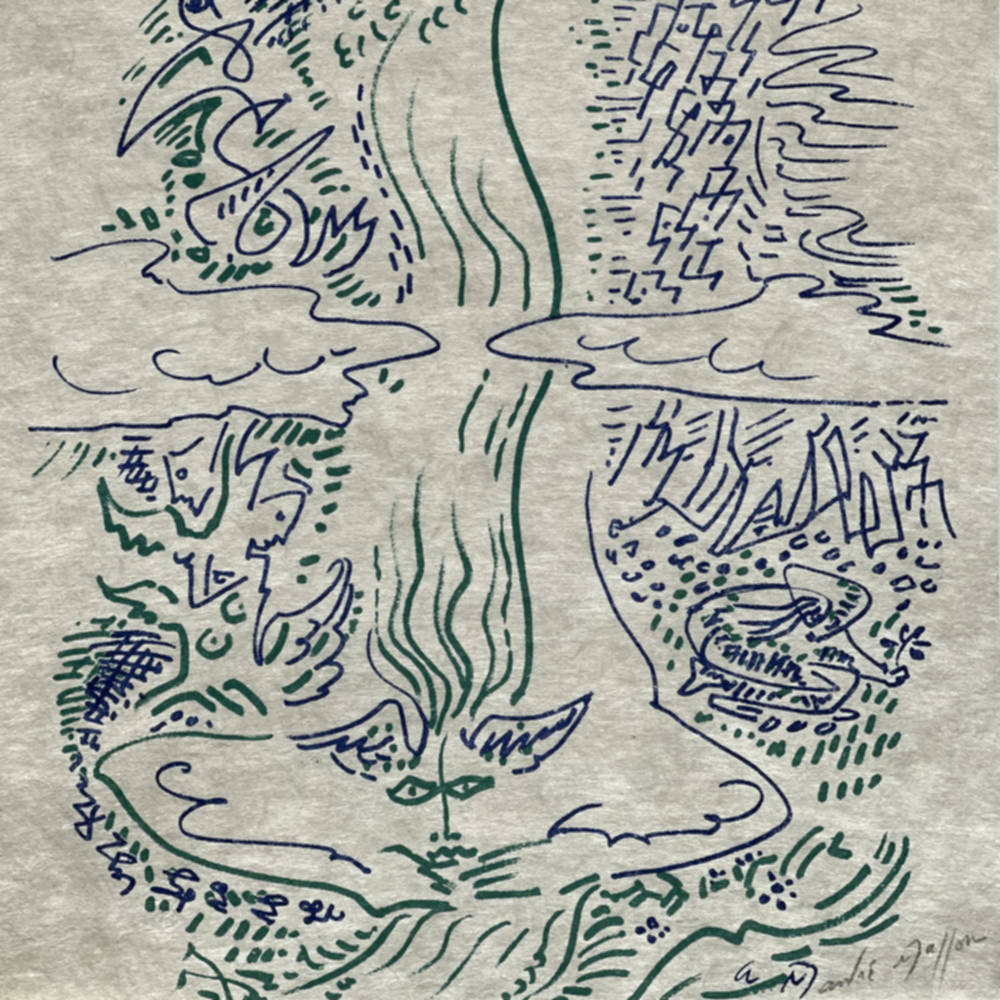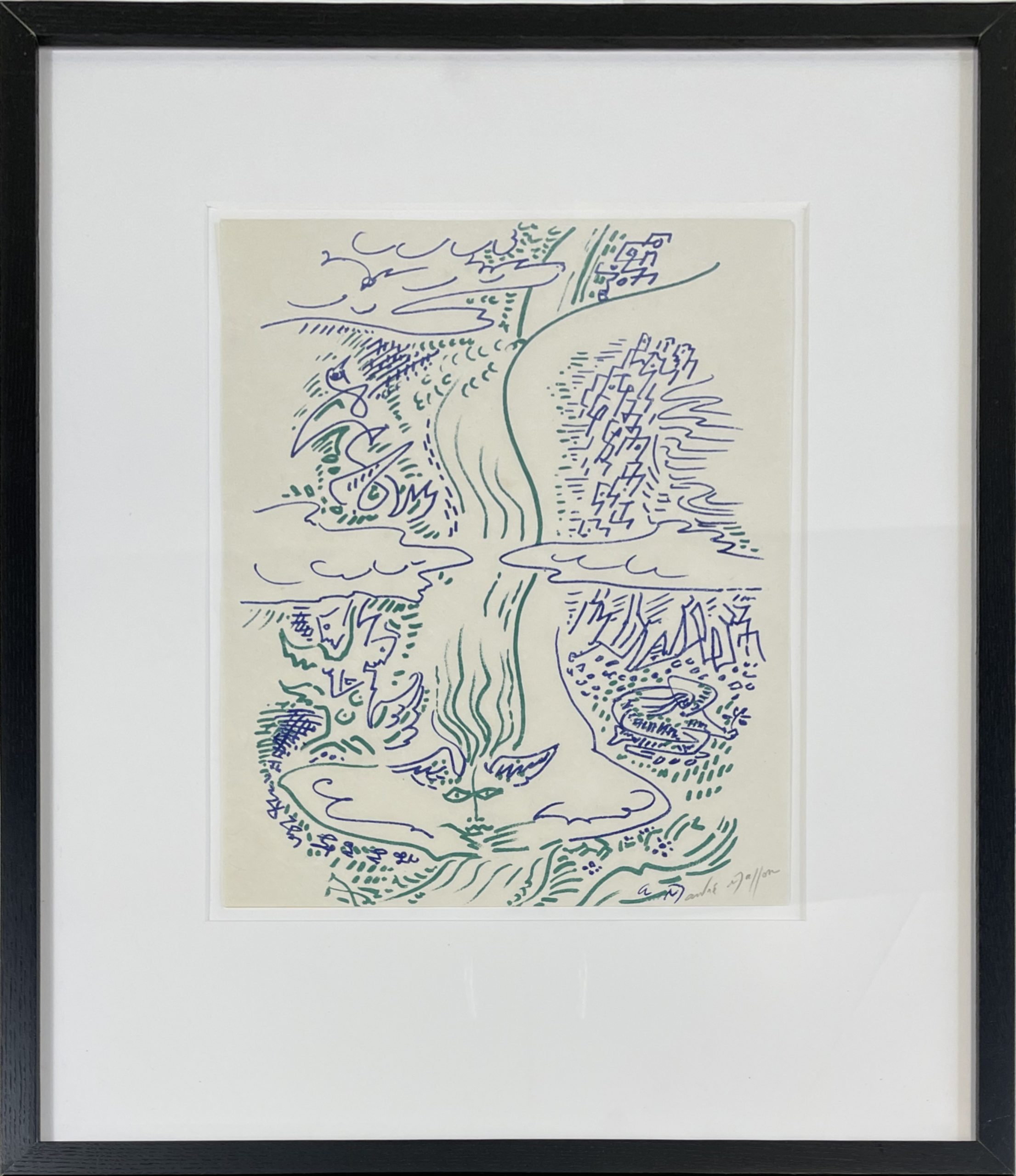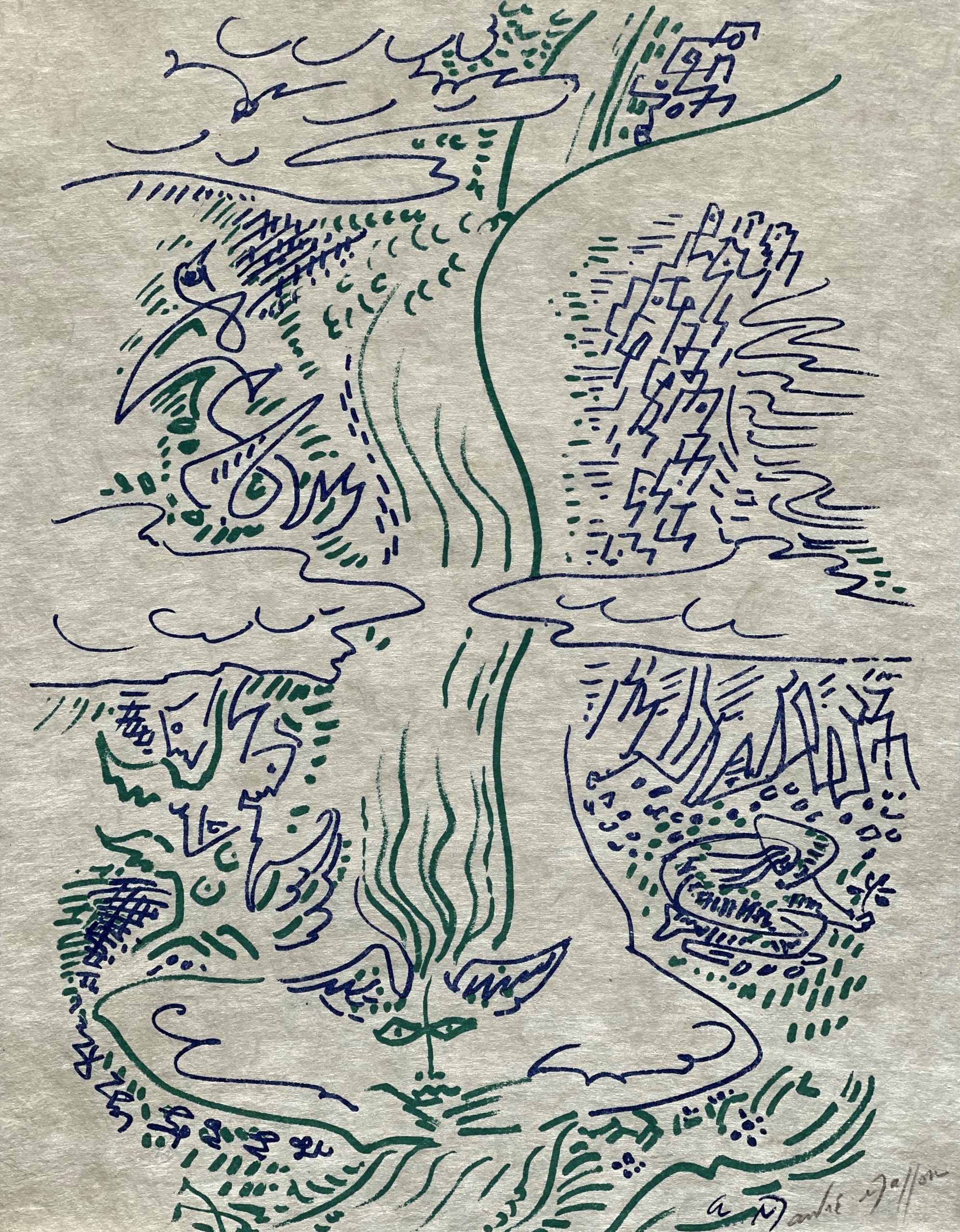 One of four pictures drawn by André Masson to illustrate Maria You Know [Maria tu Sais], a now-scarce book of love poems by Jacques Lassaigne.