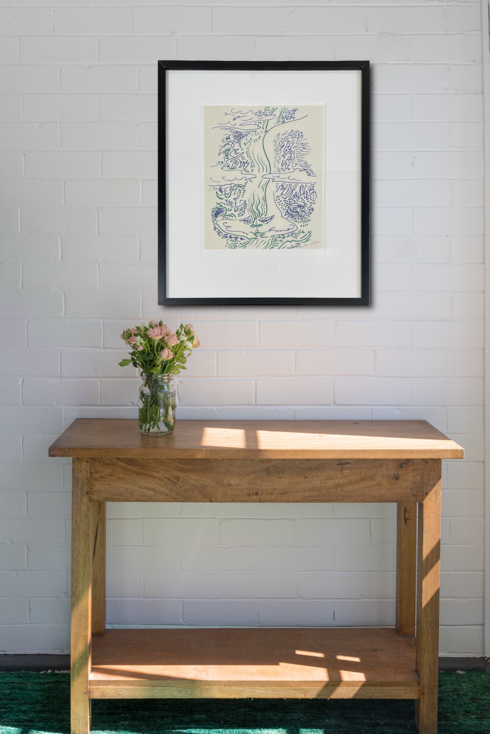 Custom matted and framed in a black-stained solid Ash frame behind 99% UV-filtering art glass. All conservation materials.
