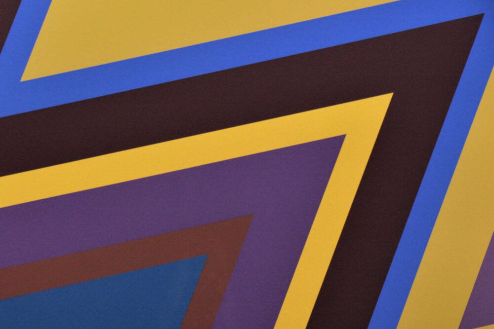 On the heels of his T cycle paintings, Howard Mehring adopted a new pattern scheme based on the “Z” form.  Though these works make no effort to be “optical” (in the sense of creating spatial illusionism or three-dimensionality), they are strikingly dynamic.