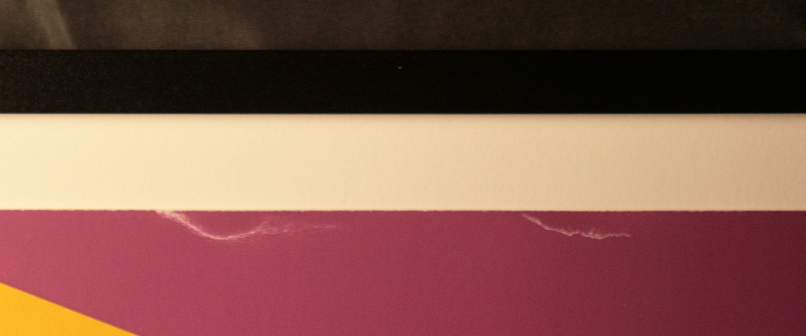 Very good condition.  Modest bruising along edges, as shown in photos.  Paint is exceptionally bright, crisp, smooth, and clear.  Without margins, as printed.