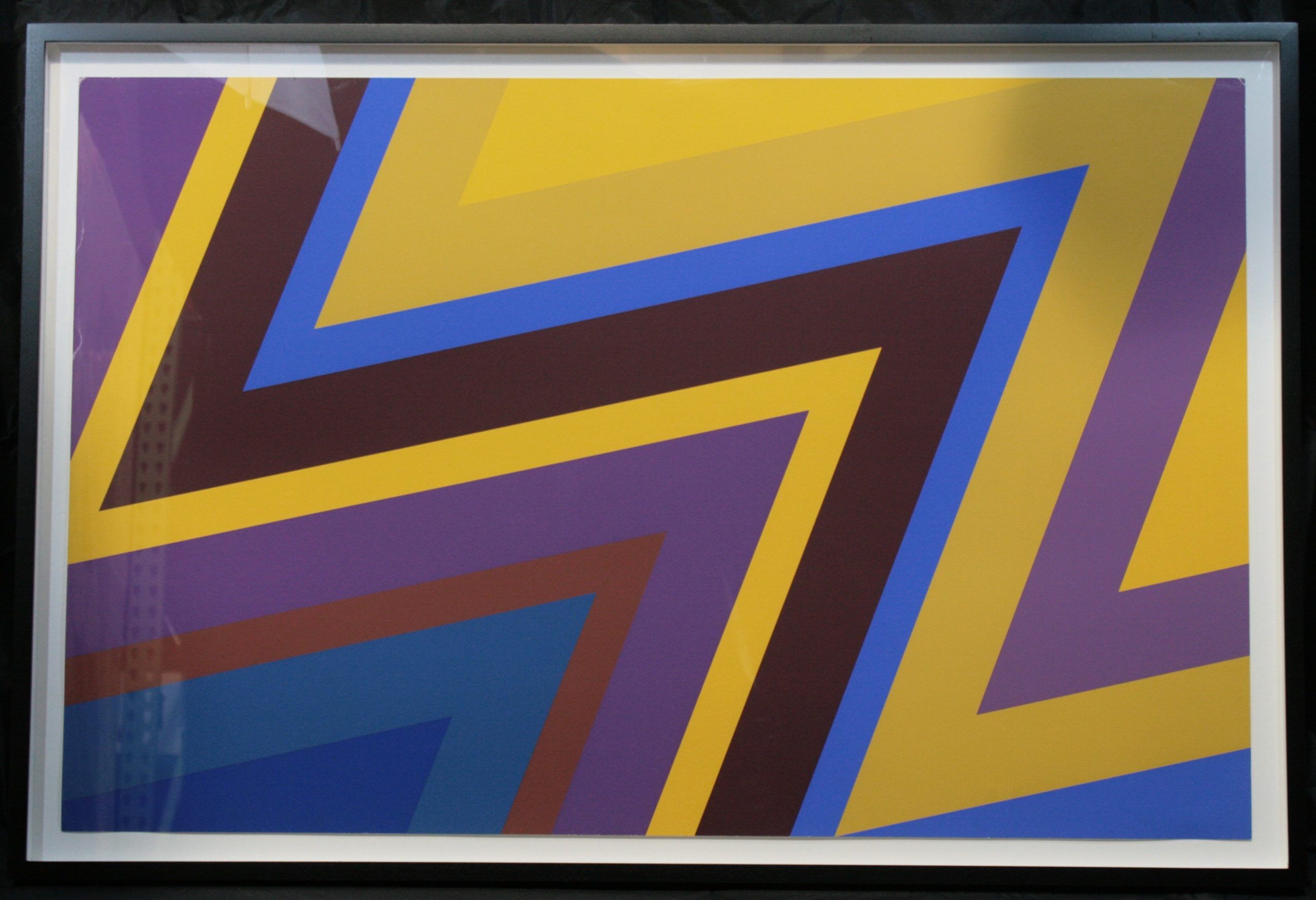 This example is a rare signed proof print of an archetypal Mehring hard-edged silkscreen, with deep, rich colors, beautifully presented.