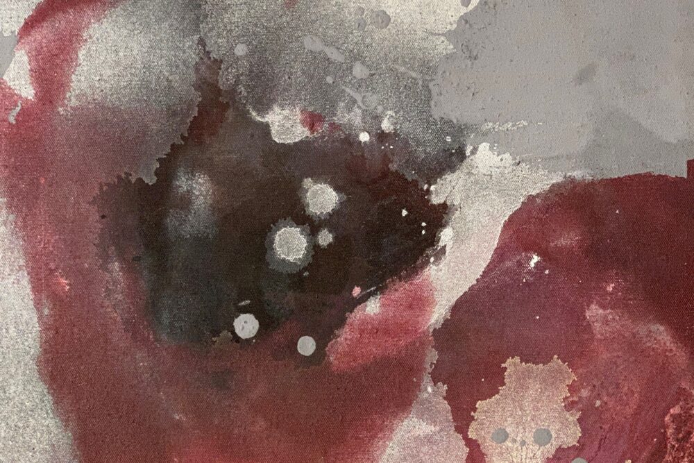 This untitled composition in Gray, Black, Red, White, and Cranberry is one of the very few of Mehring’s early works which remain extant. With layering of paint spread on an unprimed canvas, the work is simultaneously bright and dark, ordered and chaotic.