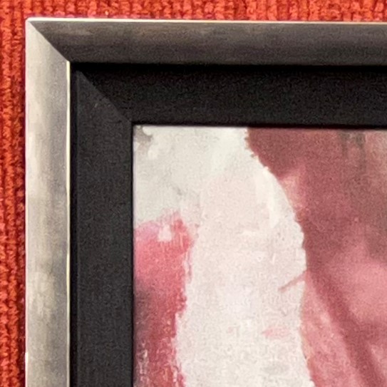 Professionally framed in a pewter-painted wood frame with a cloth-wrapped liner. Retaining the hang tag attached by the Marin-Price Gallery.