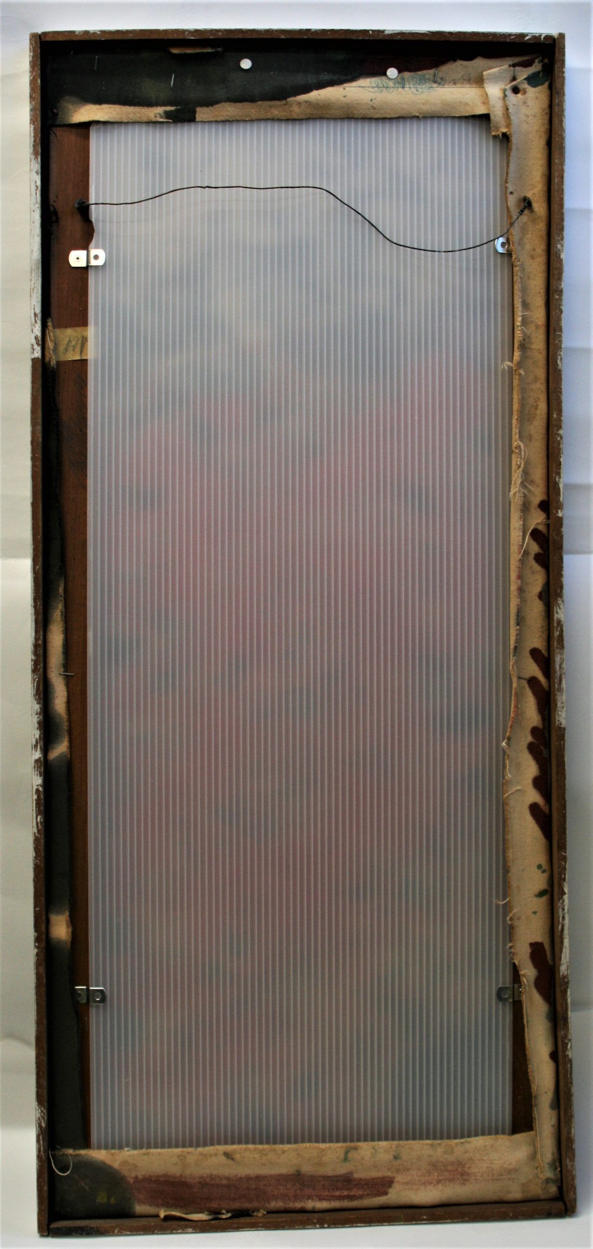 Framed in its original simple white-painted wood at the time of making.