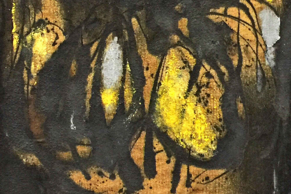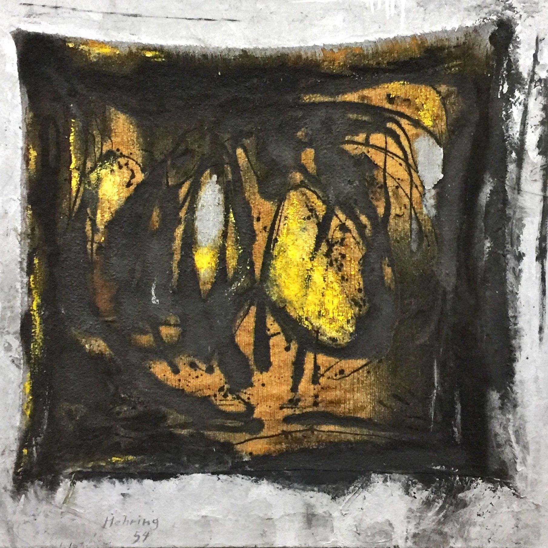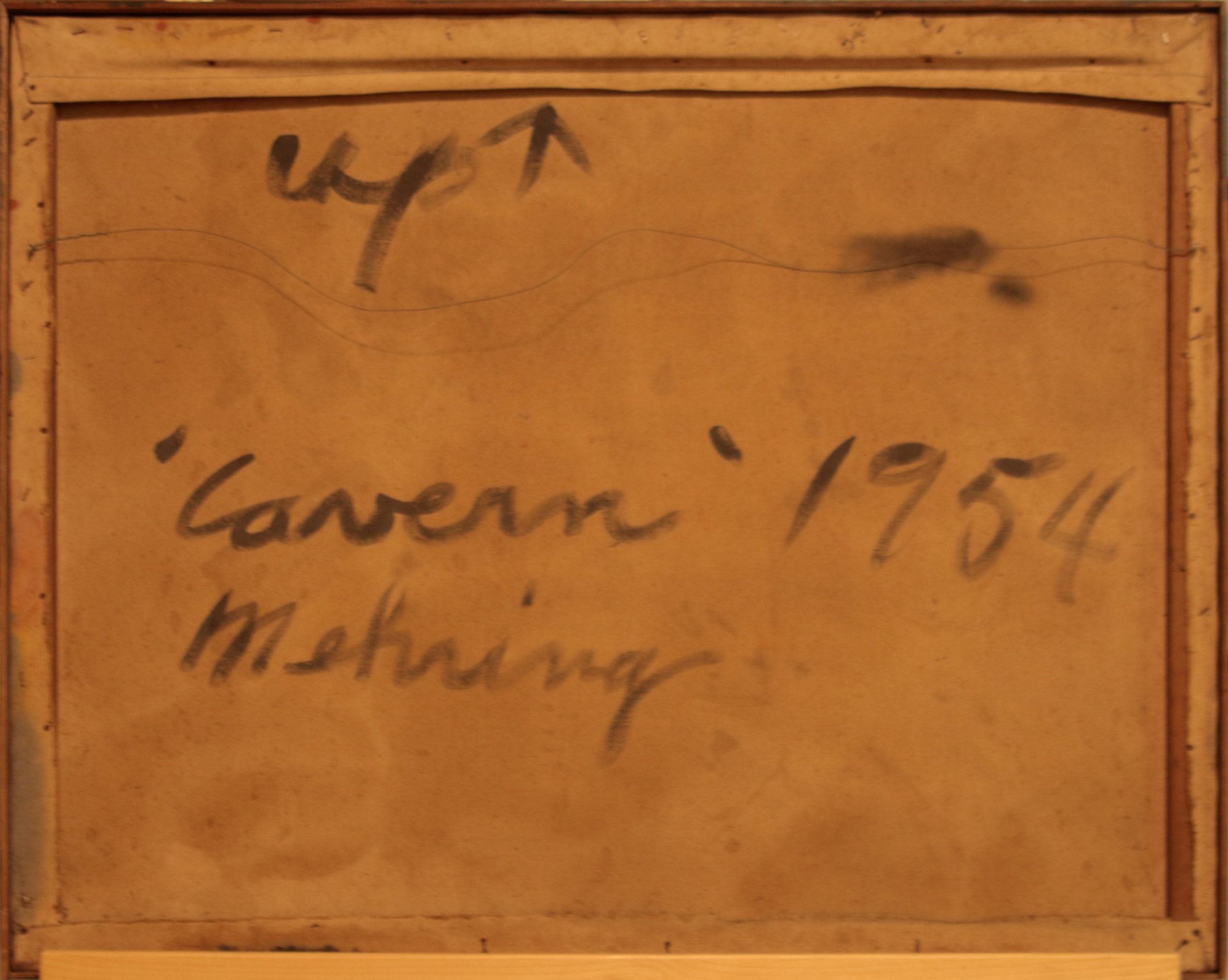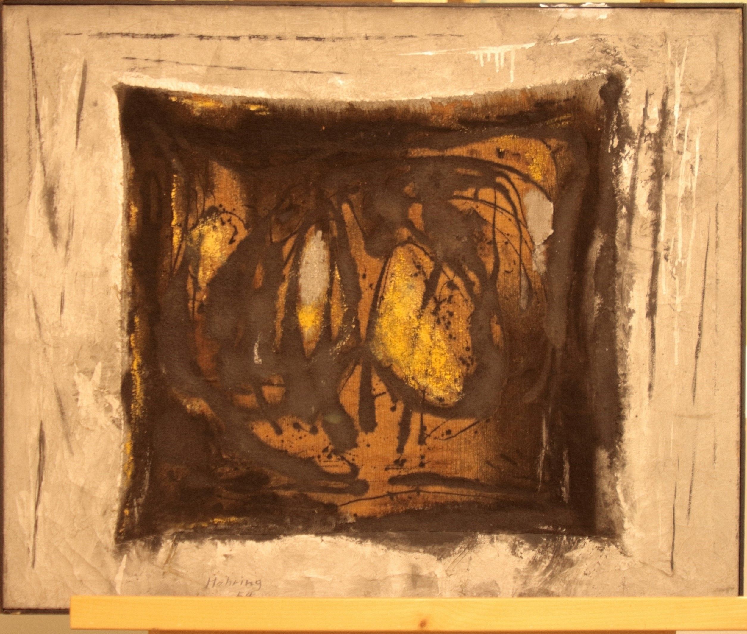 This painting is one of the very few of Mehring’s early works which remain extant.  With layers of both thinned and heavy paint poured and layered on an unprimed canvas, the work is simultaneously bright and dark, ordered and chaotic.