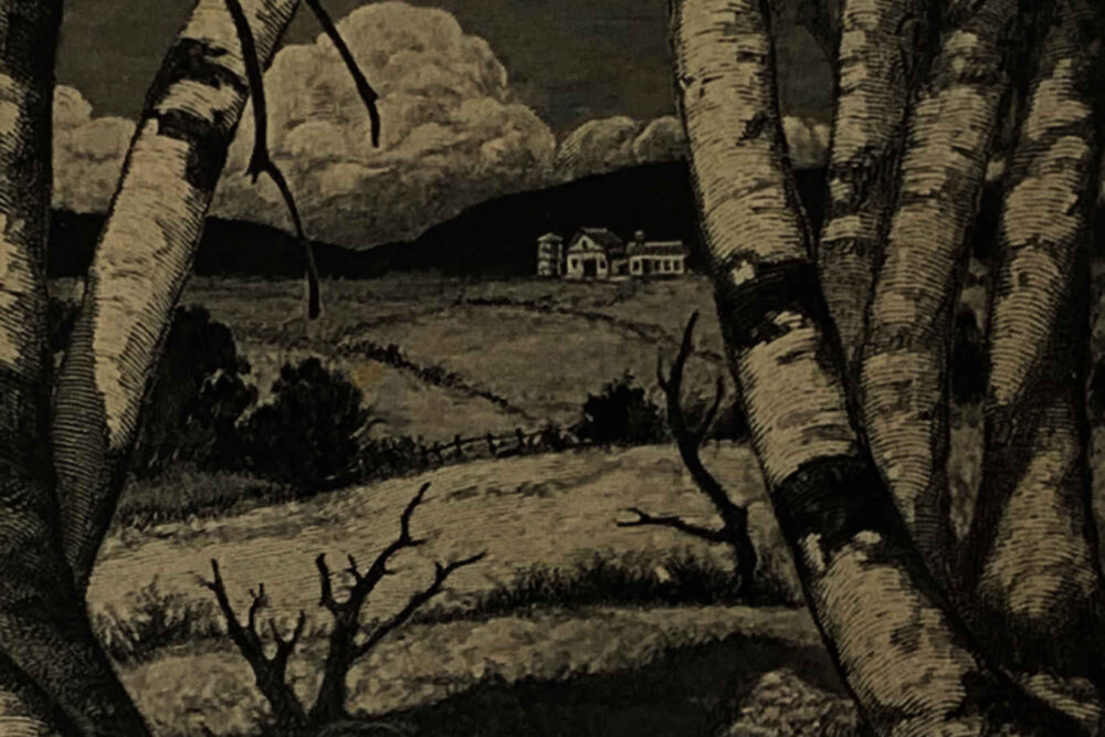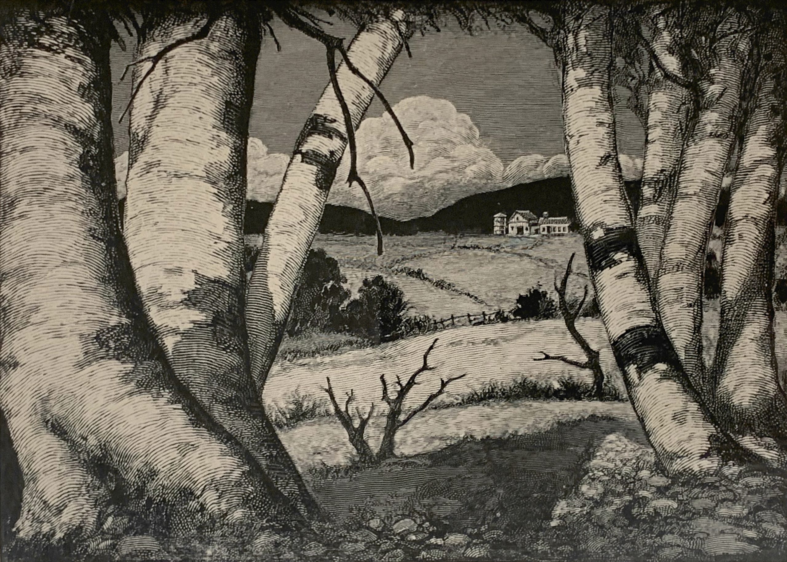 Hiram Campbell Merrill often visited Vermont, where his mother was born, and where he found inspiration for his work. This wood engraving is from one of Merrill’s Vermont trips. It highlights beautifully the crisp lines and minute detail achievable with a wood engraving.