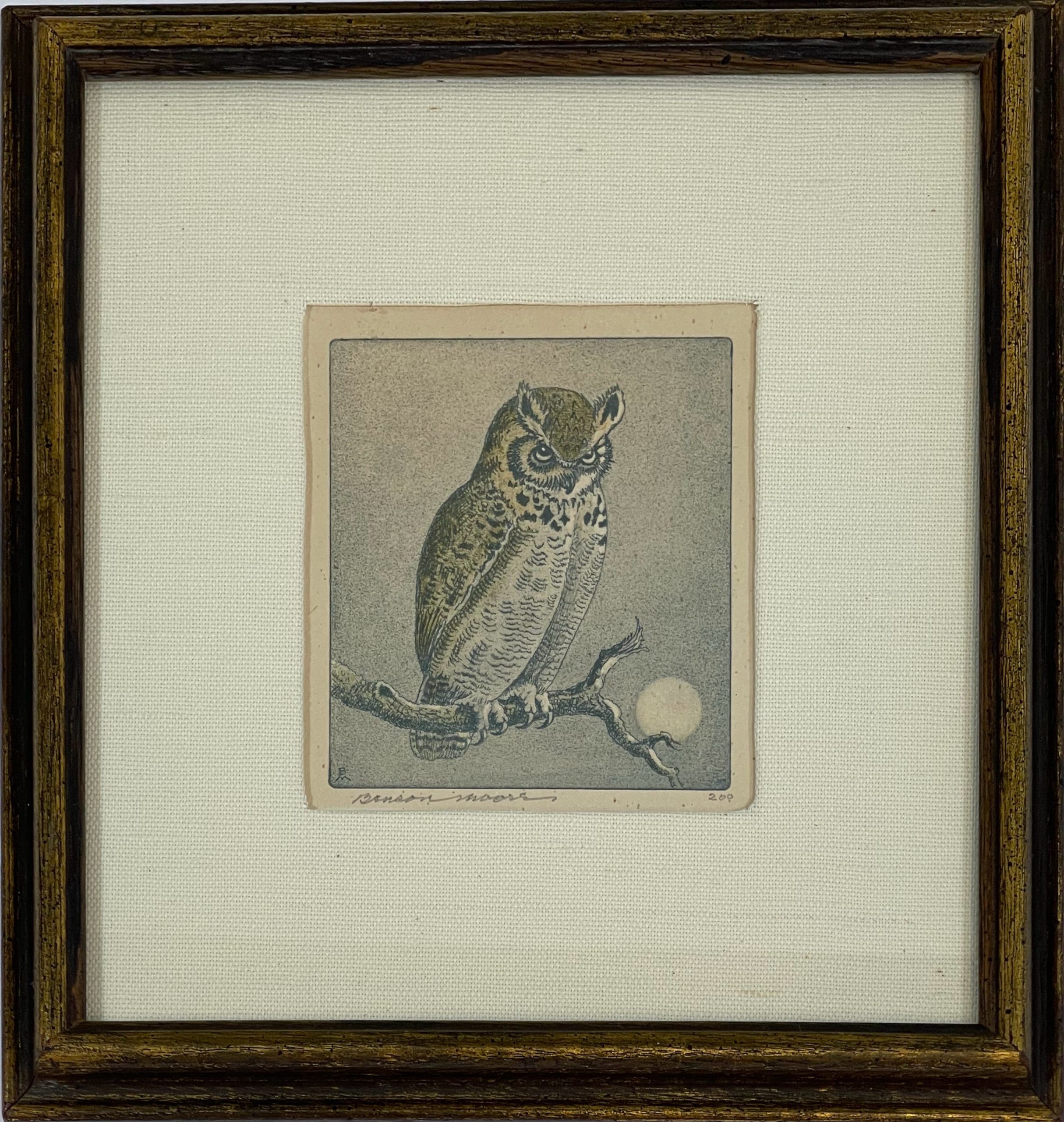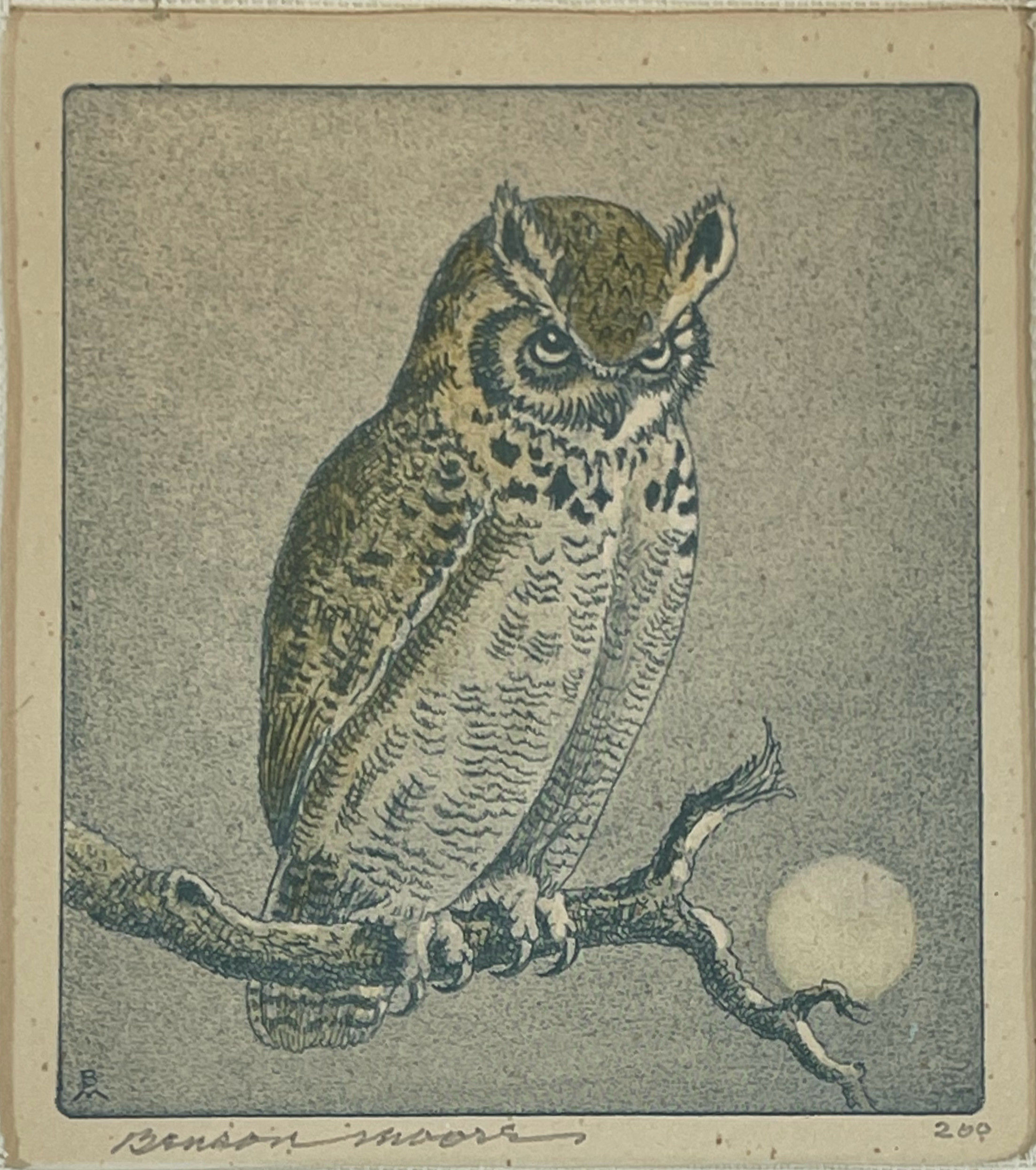 A beautiful study of a great horned owl by celebrated Washingtonian Native American artist Benson Bond Moore.