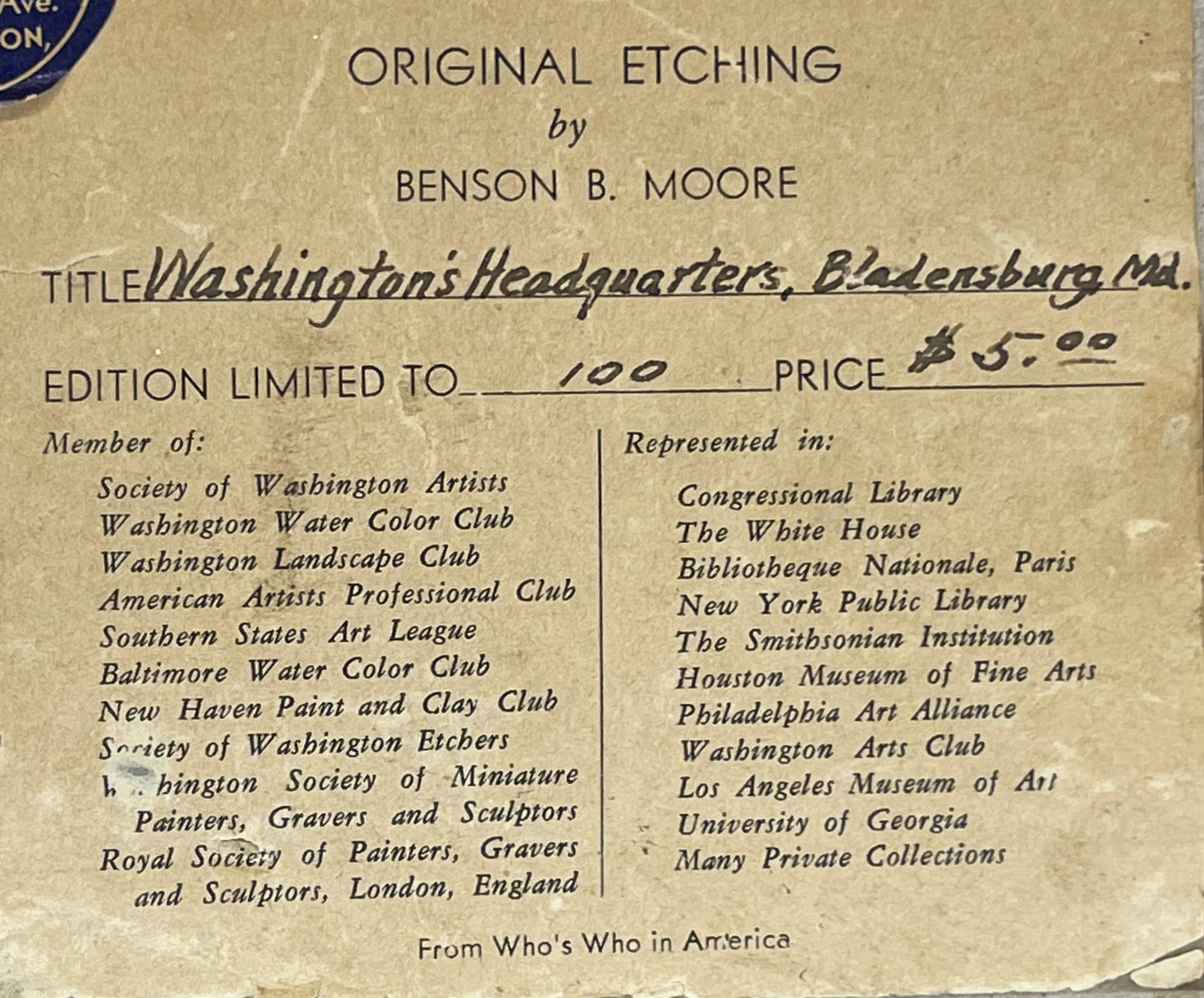 Old Etchings, Washington Artists