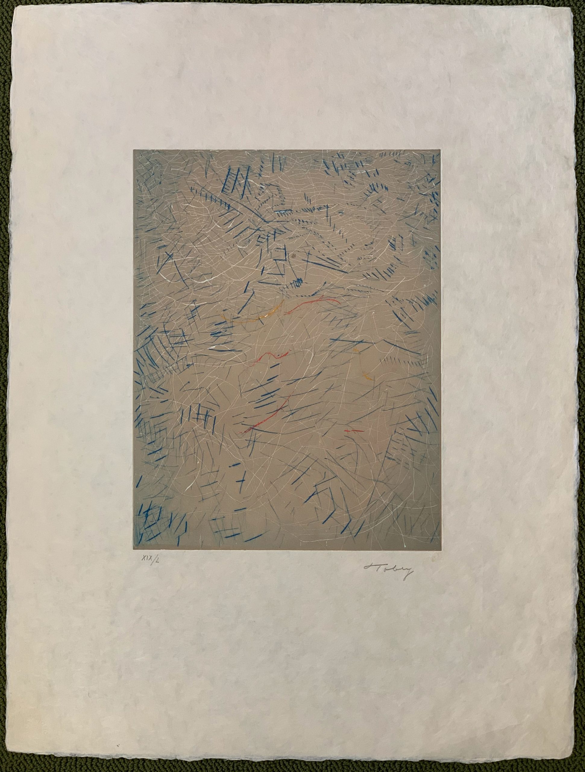 This work is an excellent example of Mark Tobey’s “white writing”.
