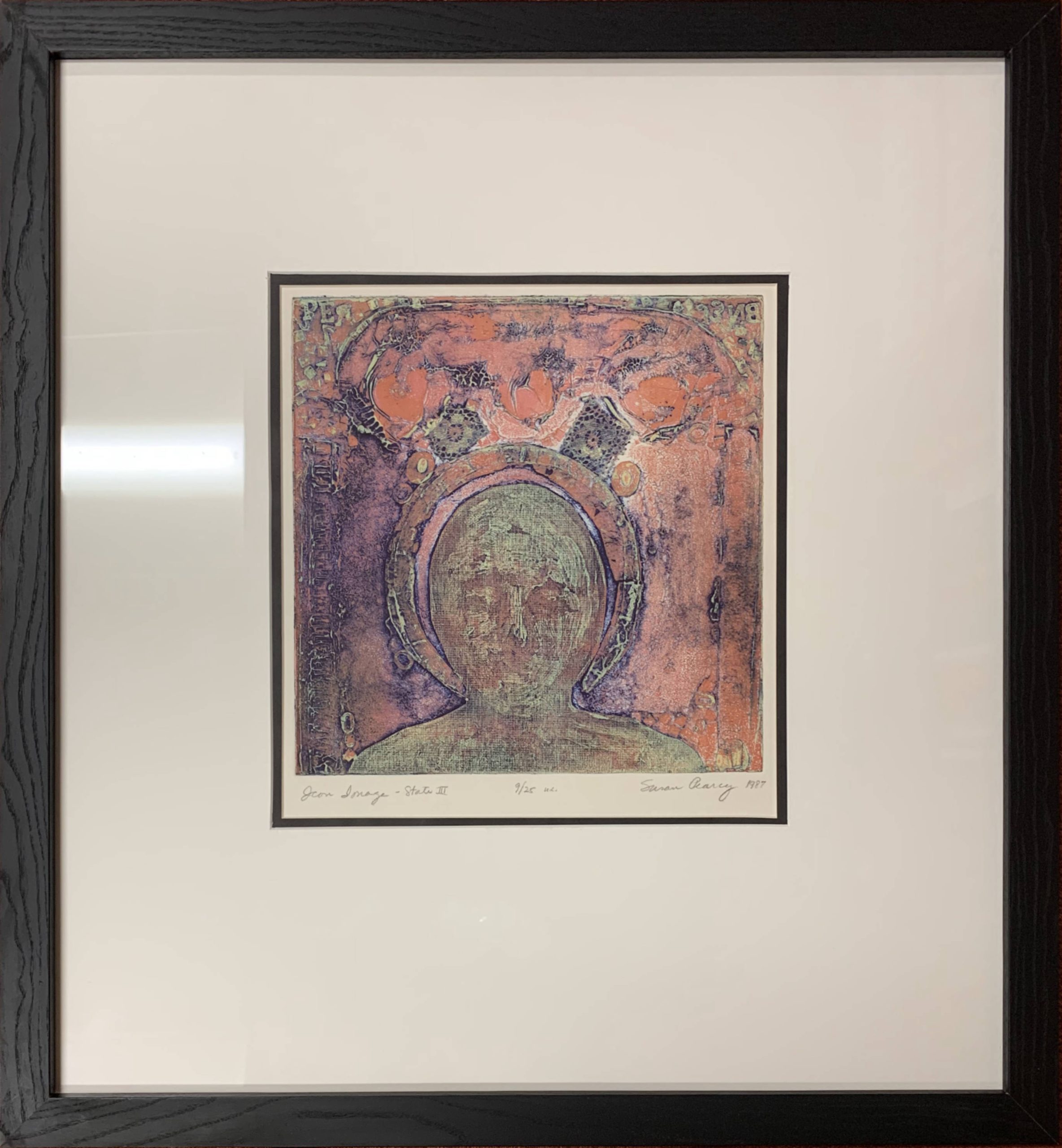 Double-matted and framed in black-stained solid Ash behind 99% UV-filtering Plexiglass. All conservation and archival materials.