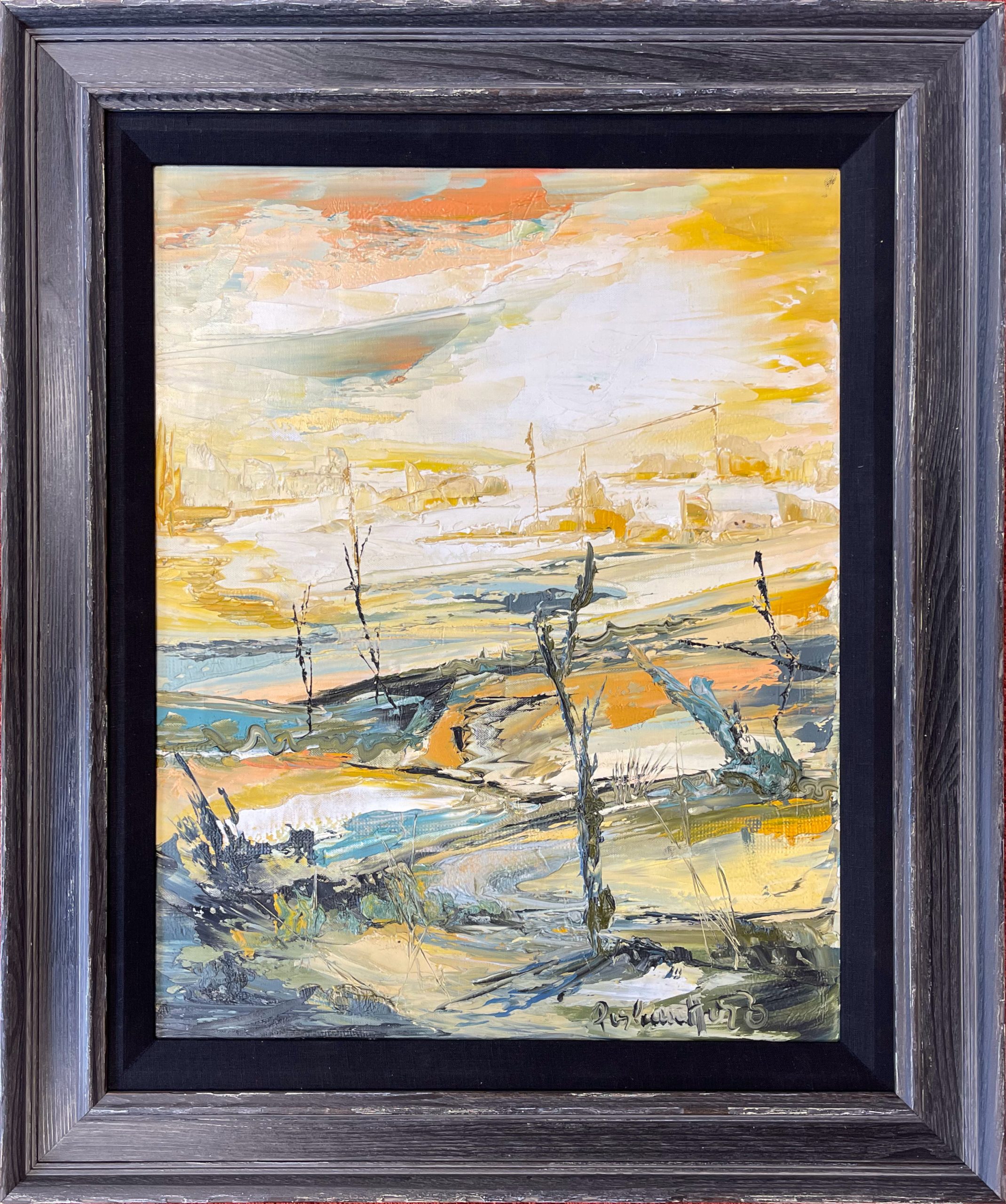 Rendered expertly in yellows and oranges, black and ash, Jack Perlmutter’s moody and surrealistic depiction of a desolate landscape.