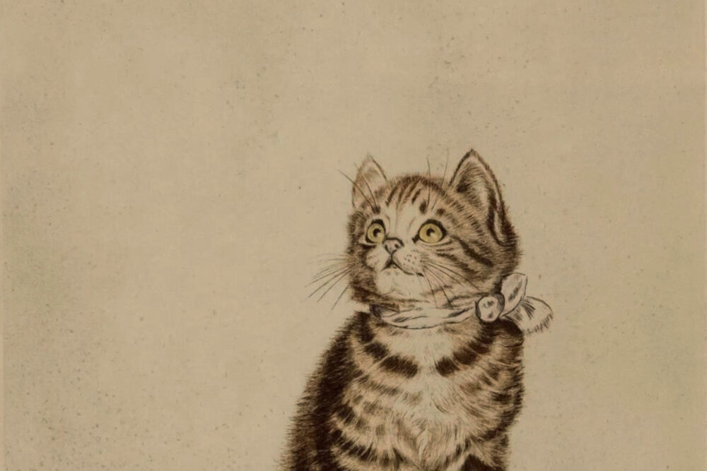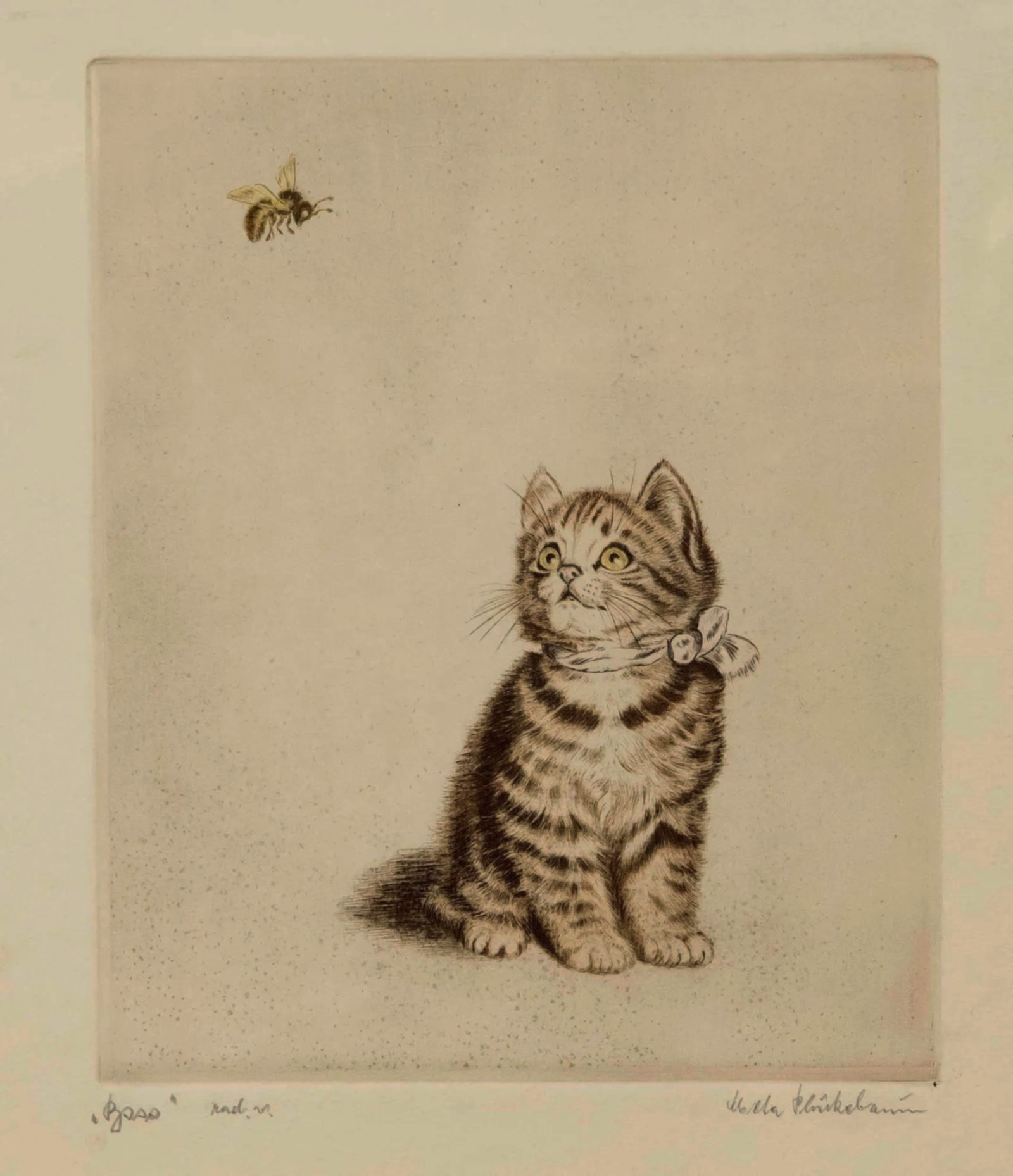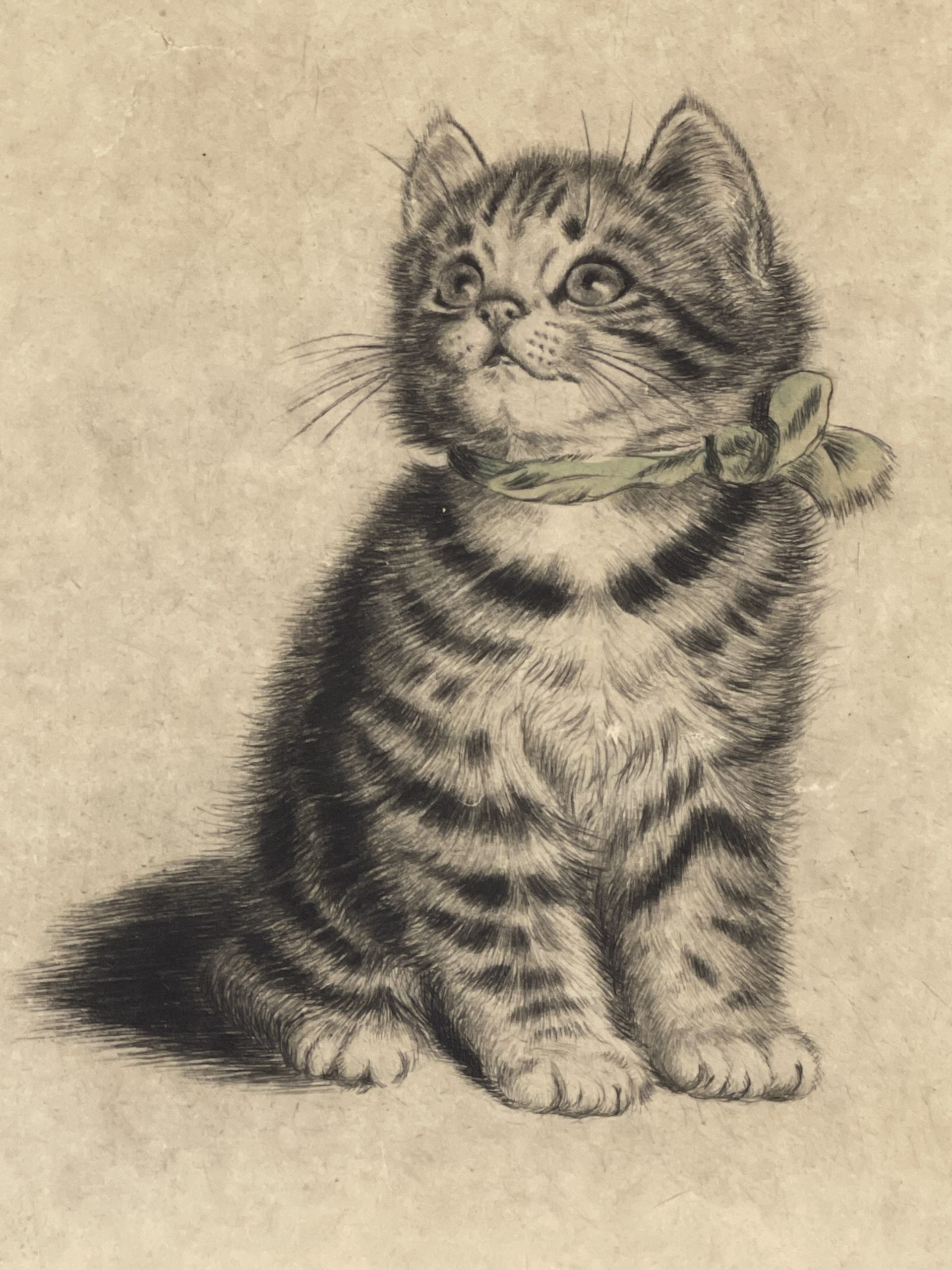 The German artist and illustrator Meta Pluckebaum is best known for her sensitive fine drypoint etchings of cats (as well as dogs and other animals).  She was a serious artist, well-trained, despite the humor and appeal of her works.