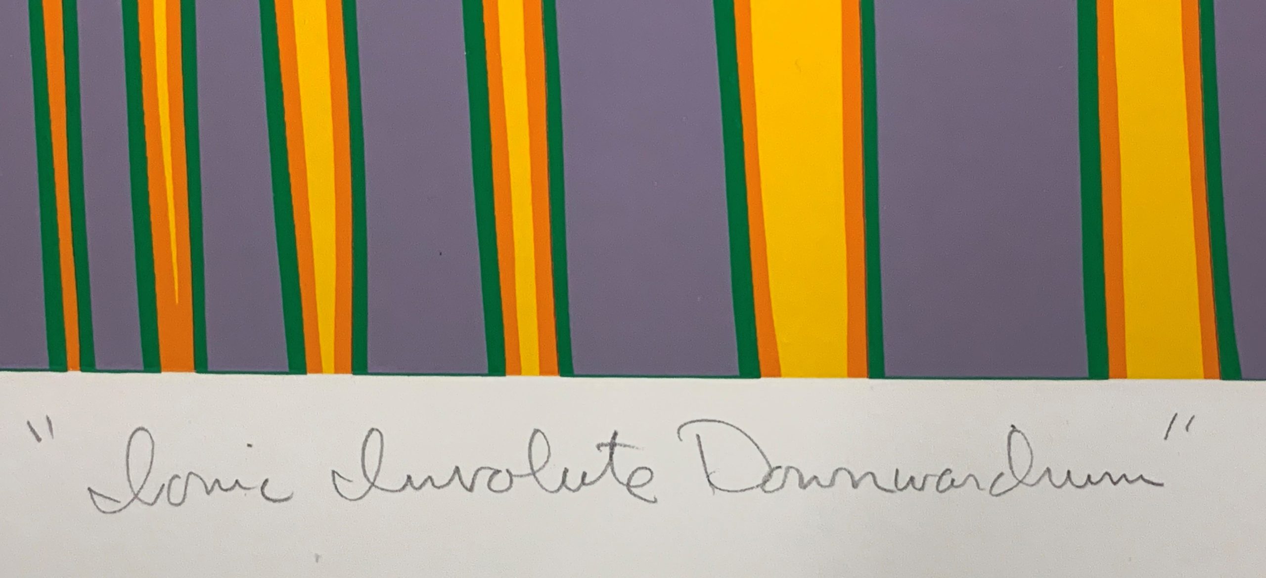 Pond’s dry sense of humor is evident in the titles of these elegant prints. Very few of the cast iron columns in the SoHo district are classic Greek—Doric, Ionic, or Corinthian. Almost all of them are bastardized combinations of styles and elements. As the architects of these buildings took liberties so, too, did Pond when he invented his ridiculous Latin-sounding but entirely made-up descriptive names—like the title of this work!