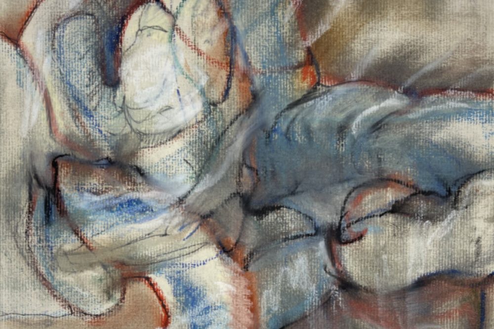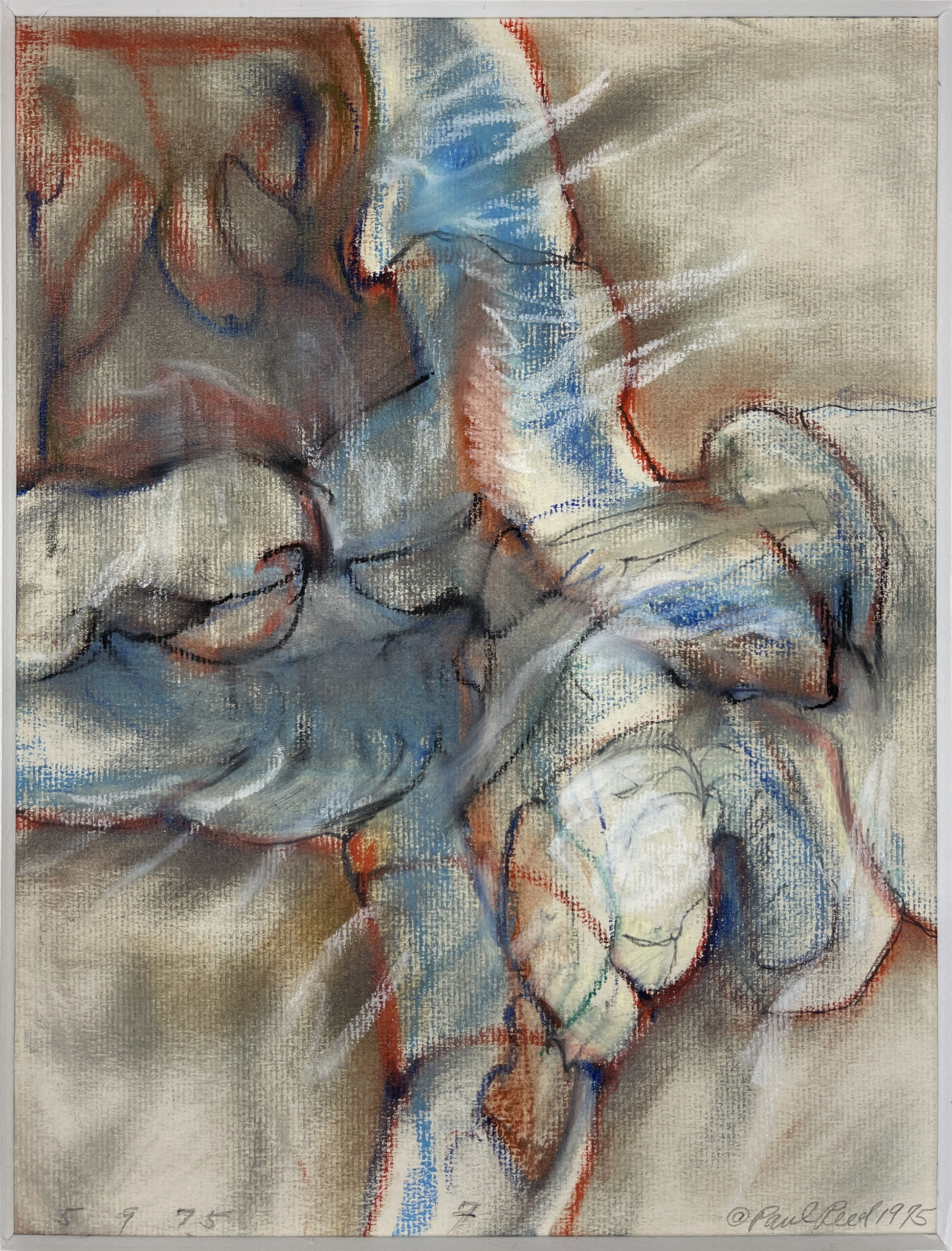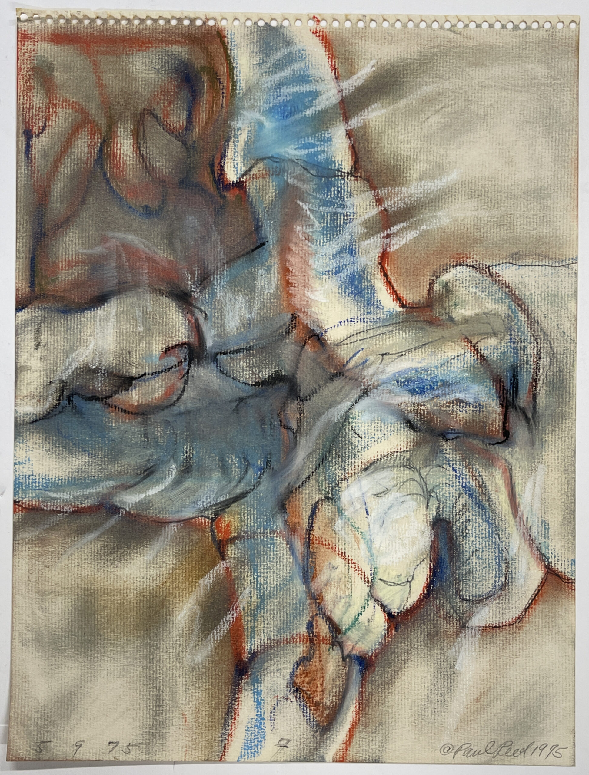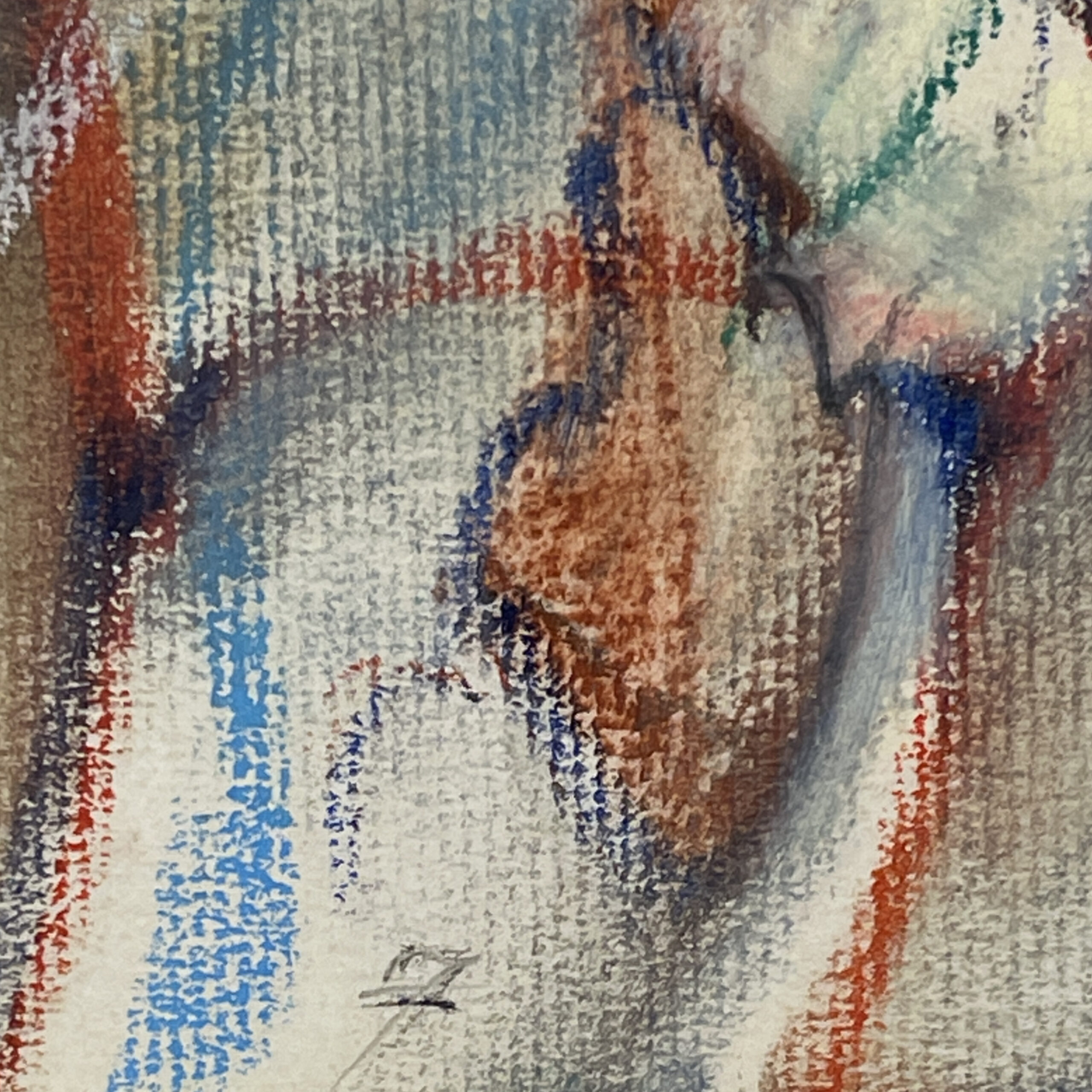 This work is a beautiful and rare organic abstraction in pastel and graphite.