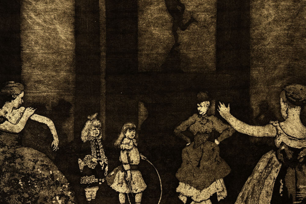 An enchanting work of women and girls playing.