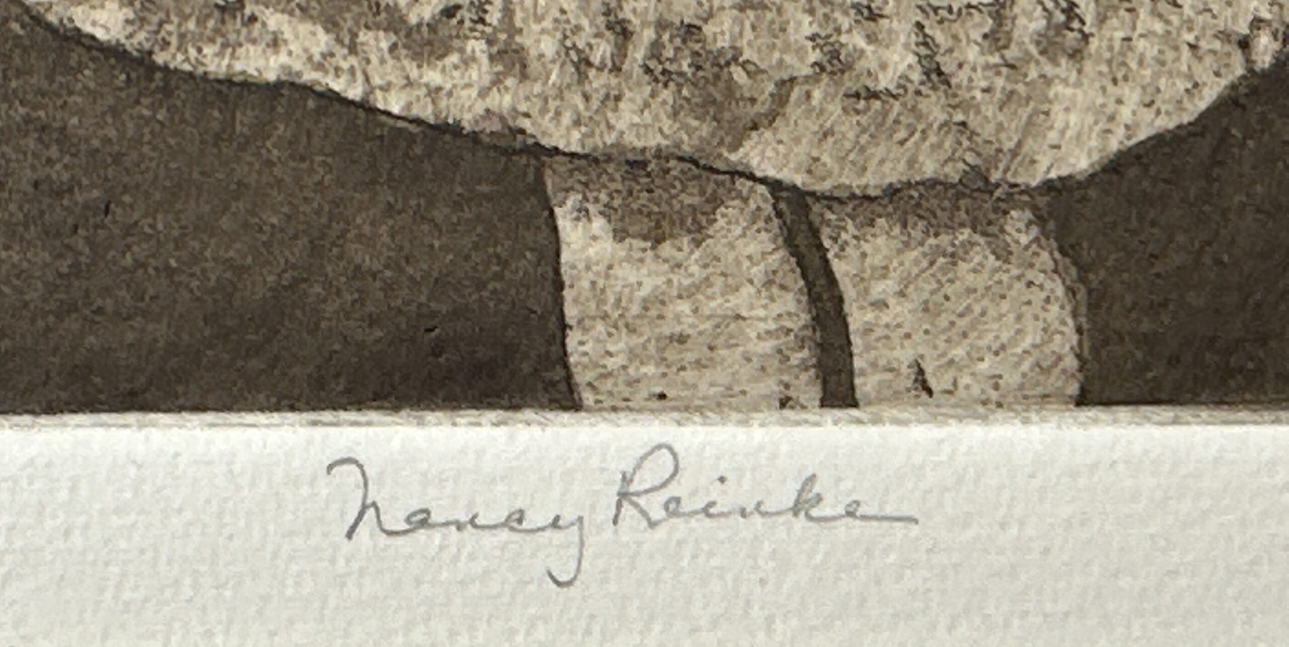 Hand-signed in pencil by the artist en recto lower right.  Title, in pencil, en recto lower center. Editioning, in pencil, en recto lower left.