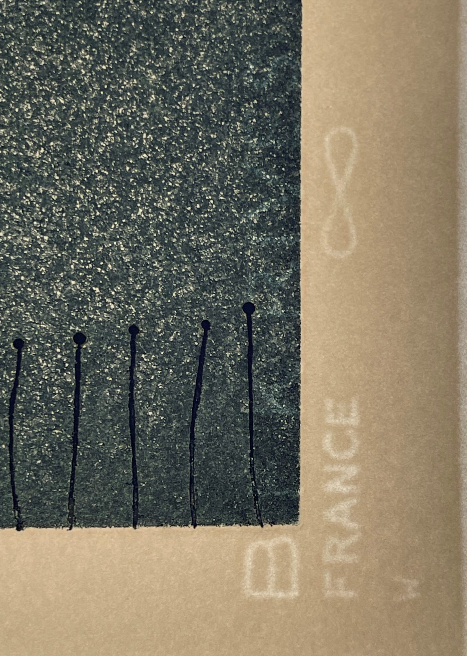 This work was printed by Marc Leclercq at Atelier Tanguy Garric, Paris. In addition to the edition of 30, there were printed 5 Artist’s Proofs, 1 trial proof, and 1 copy reserved for the Bibliotheque Nationale.