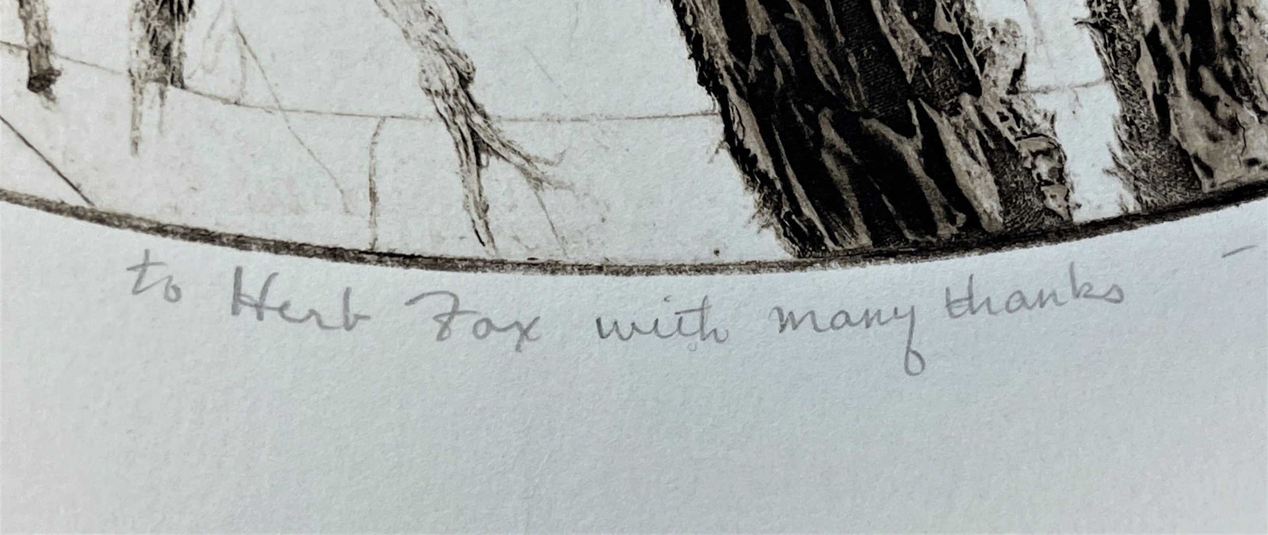This work has a superb provenance. It was part of the great collection of Steve and Stephanie Alpert and it first belonged to Herb Fox, a gift from the artist Ruth Rodman.  Fox was among the great printers of the printmaking renaissance of the mid-Twentieth century, printing works for Leonard Baskin, Yan Macs, Sloat Shaw, Michael Ventresca, James Aponovich, Robert Cottingham, Paul Rotterdam, and many others.