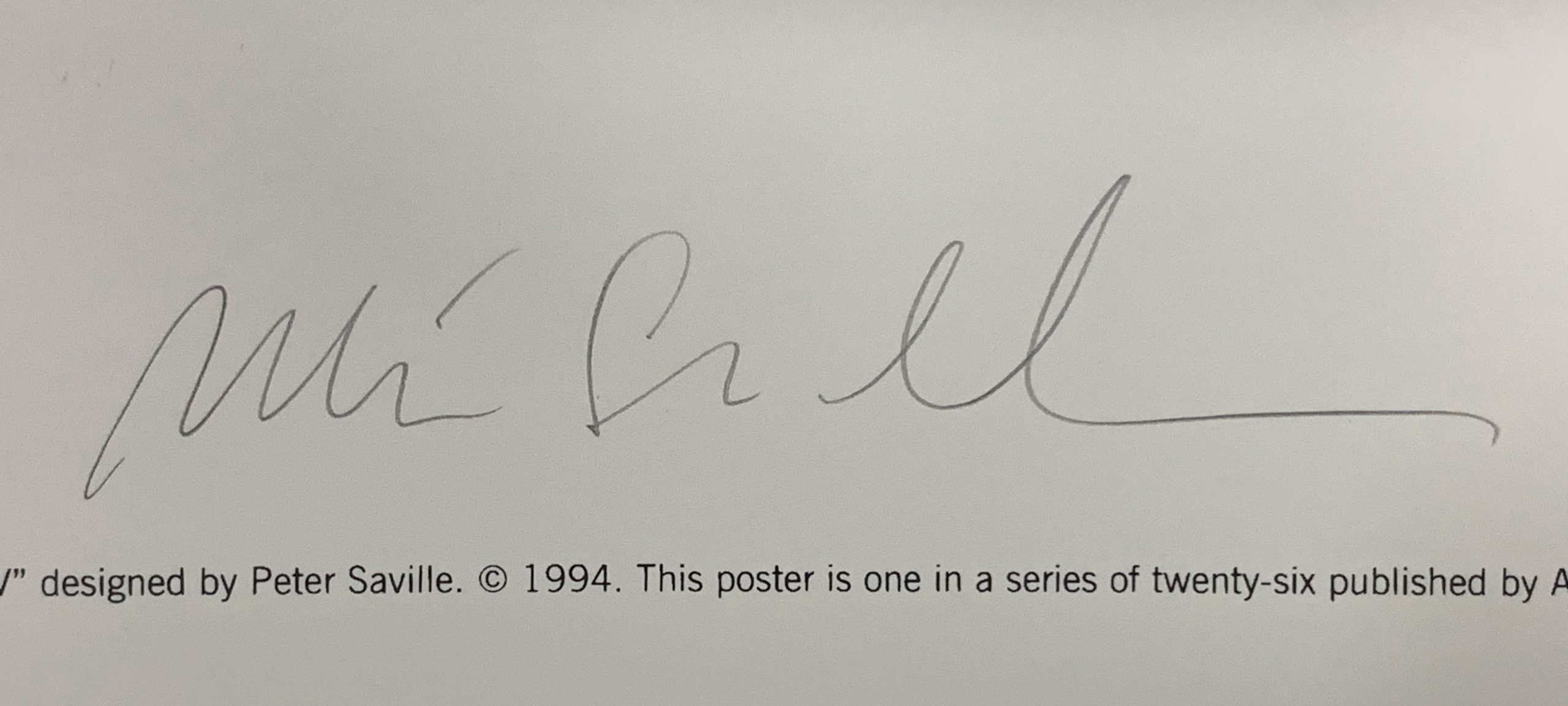 This work was part of an advertising project for Champion Paper. A dozen artist-designers with international reputations, including Peter Saville, Seymour Chwast, and Michael Bierut, were commissioned to design a letter. Peter Saville was assigned the letters B and V.