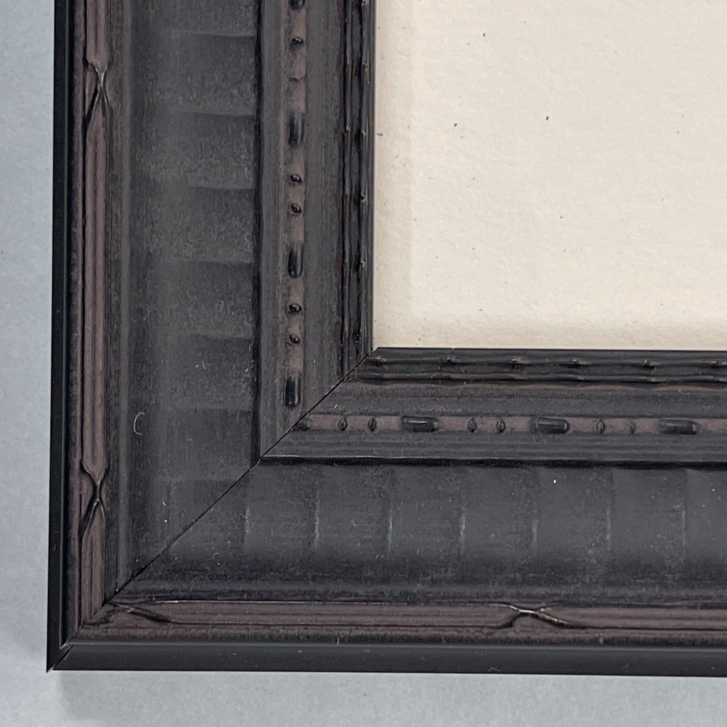 Custom matted and framed in an ornate wood frame behind 99% UV-blocking art glass using strictly conservation-grade materials.