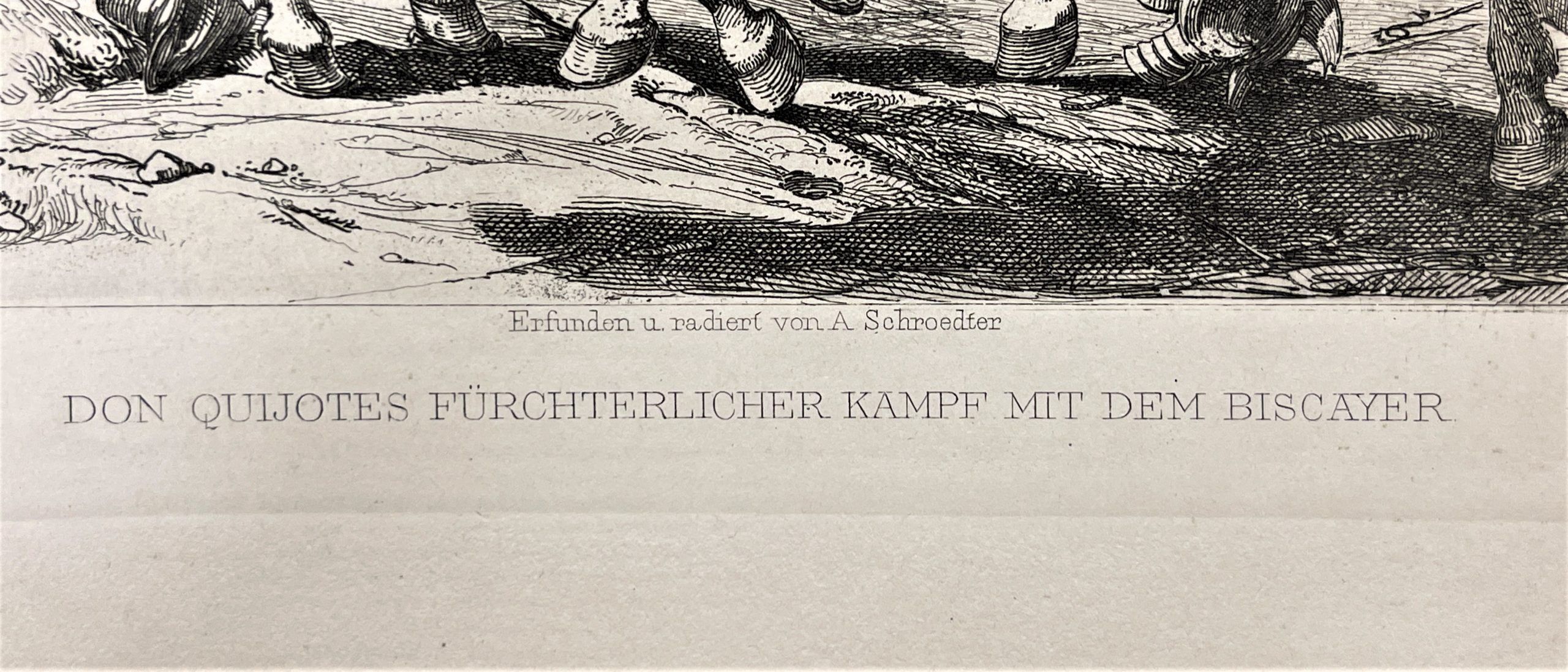 This 1843 etching by the great master Adolf Schrödter illustrates the scene in which Don Quixote battles with the Biscayan.