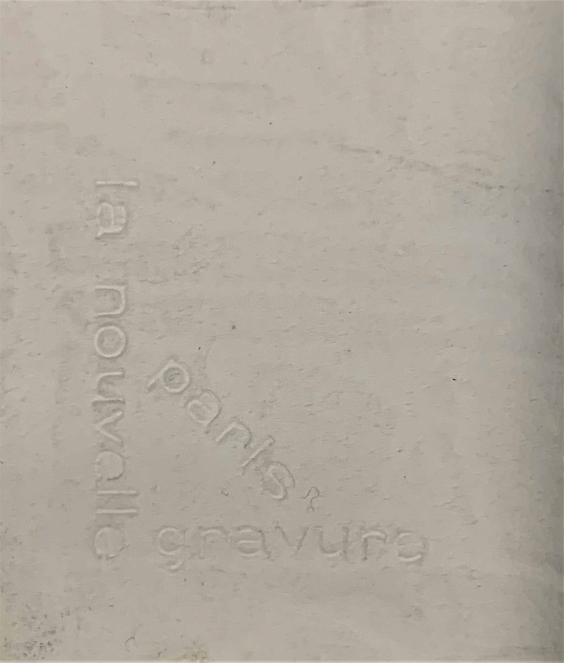 Intaglio print, on previously-embossed paper, then hand-painted.