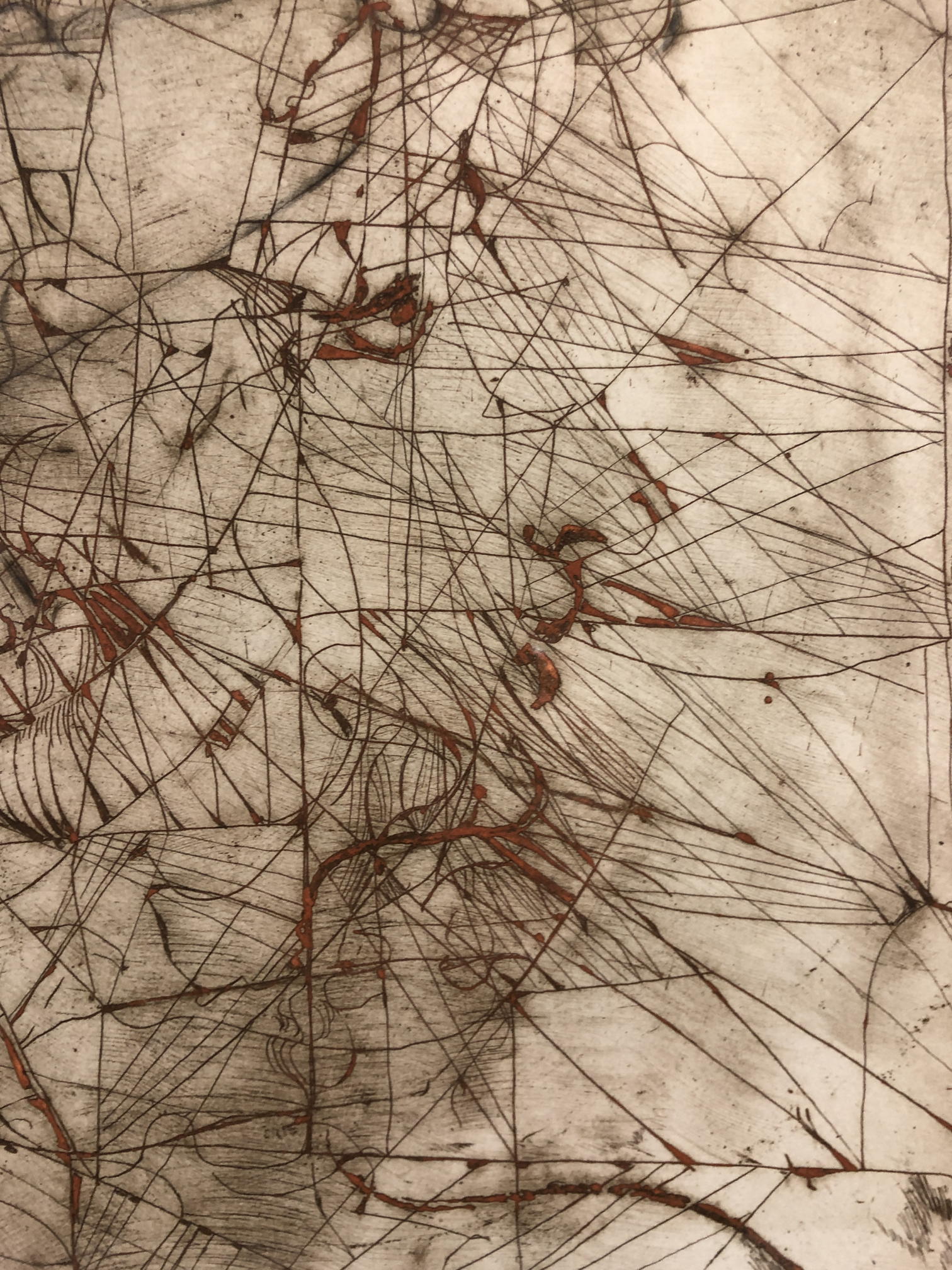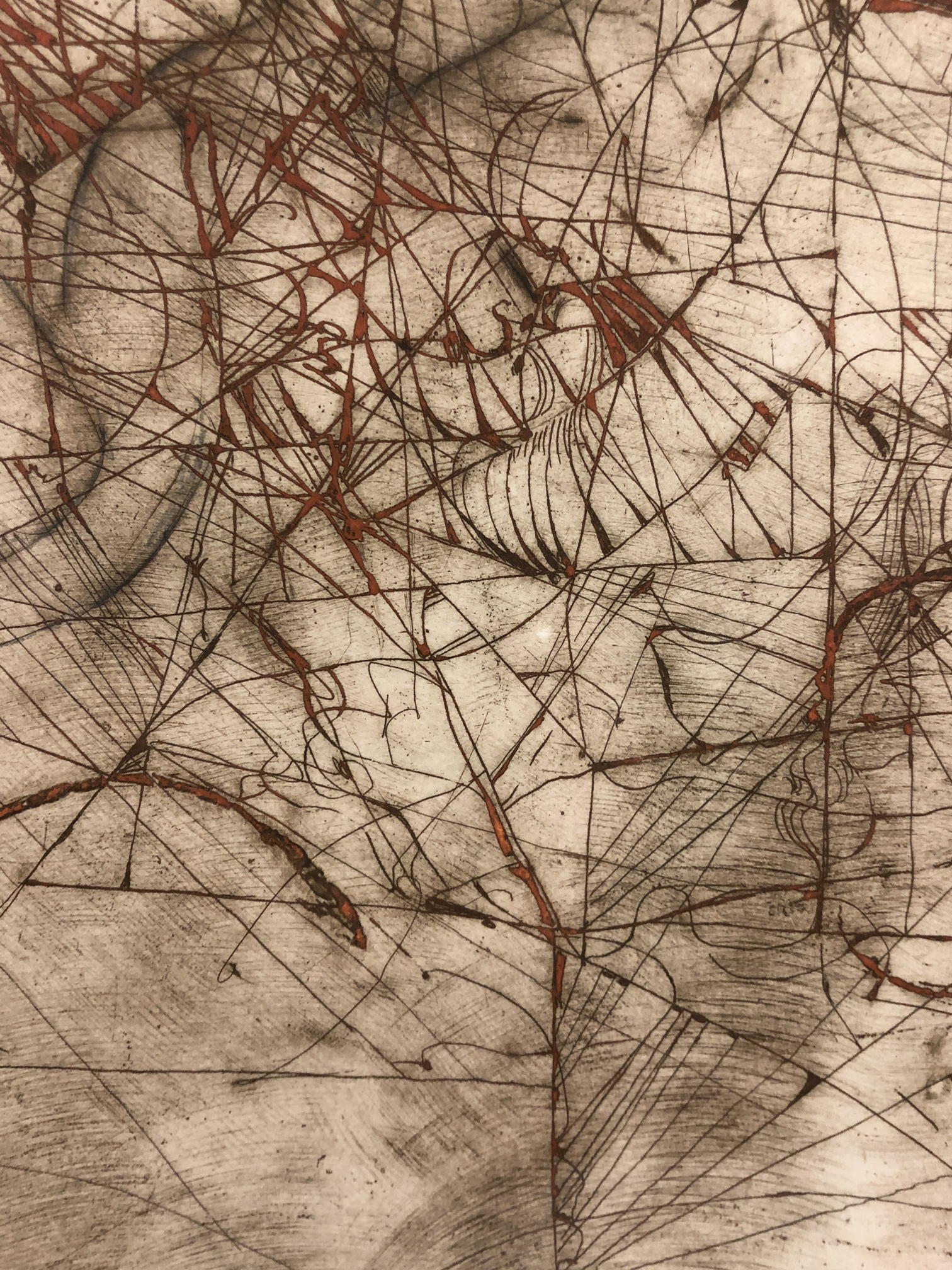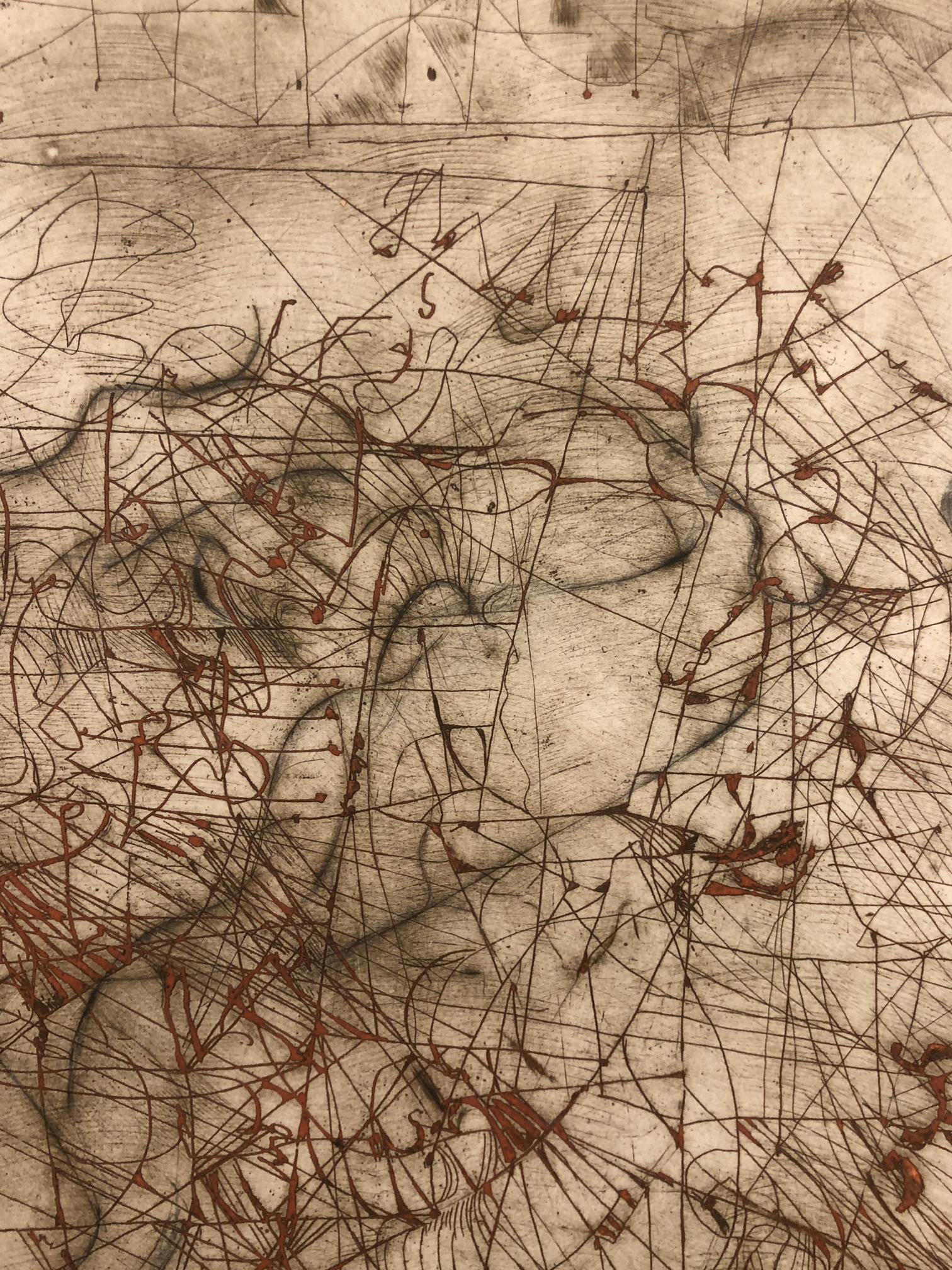 Smiechowska is a master engraver, but her works often combine several modes of expression, such as etching and aquatint, and are often made on previously embossed papers.