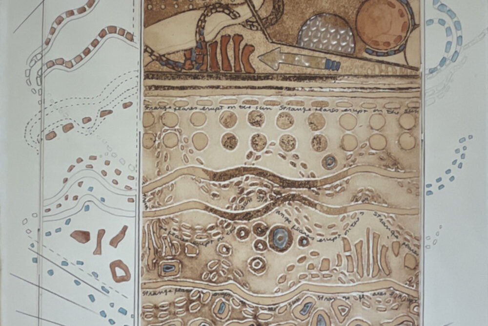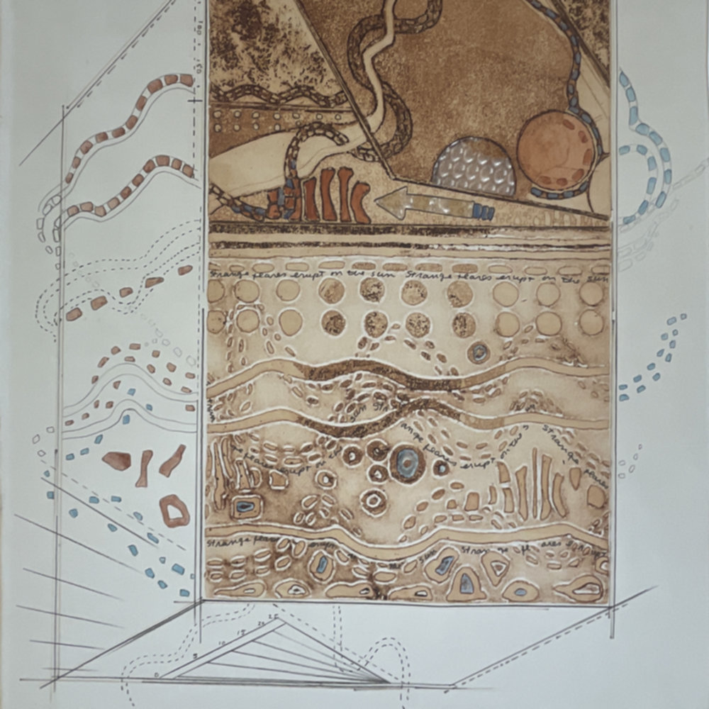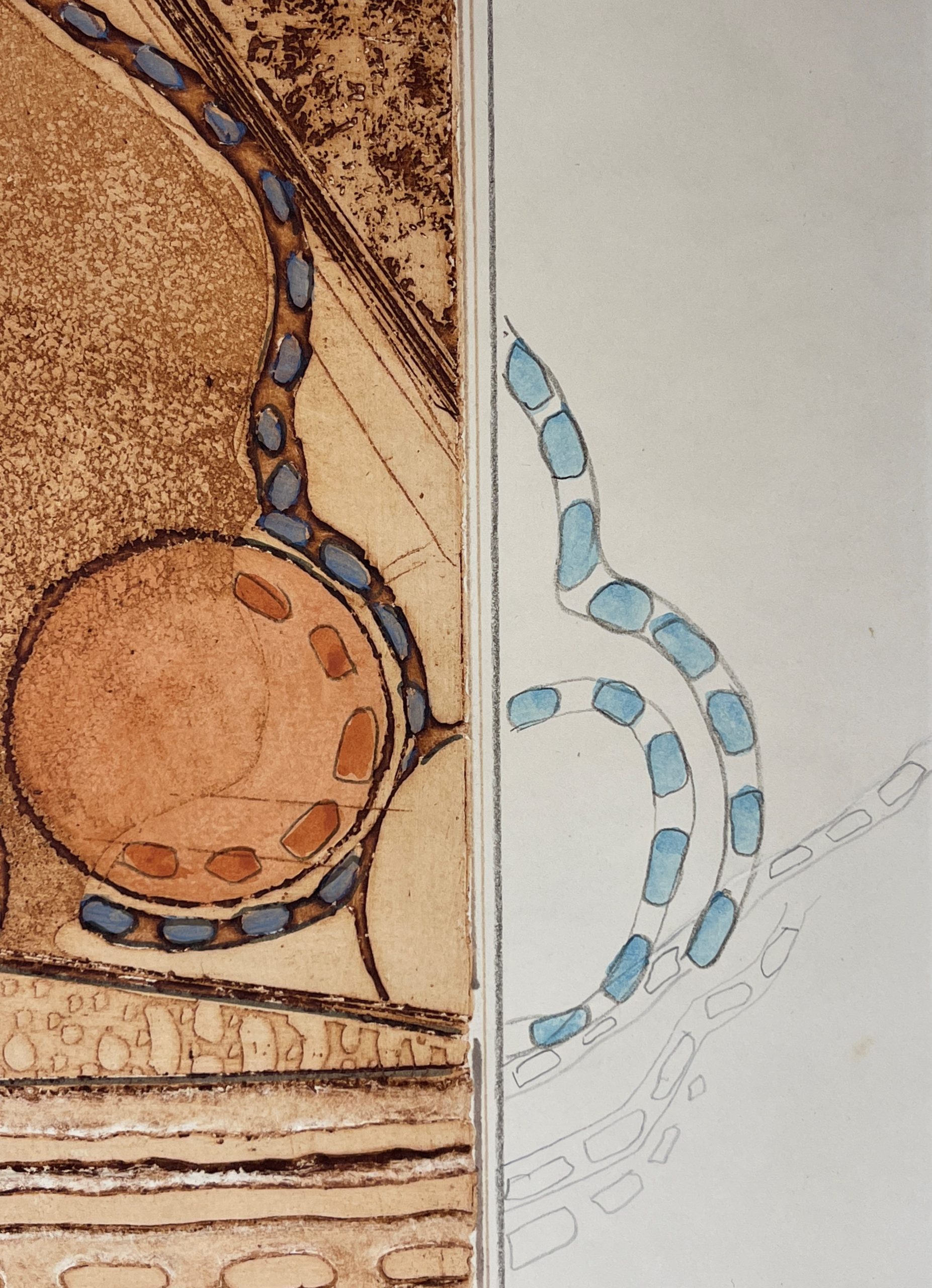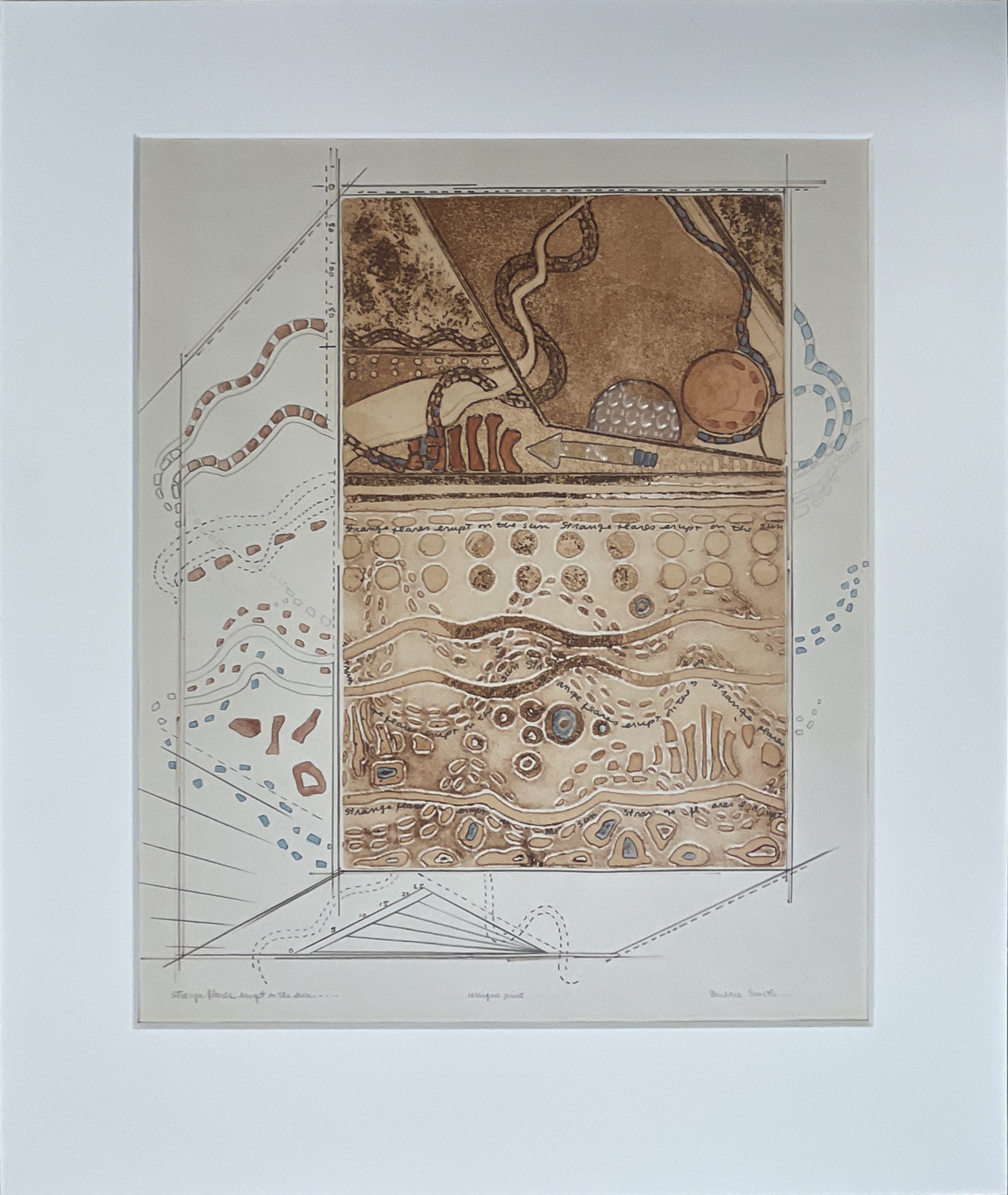 Hand-Pulled unique Intaglio Monoprint (i.e., only one impression was made) with Collage and Drawing.
