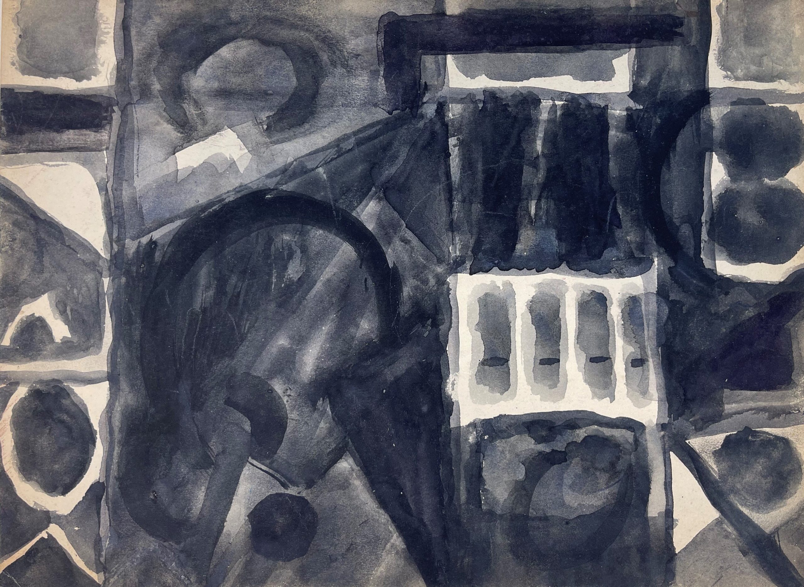 Black watercolor on board