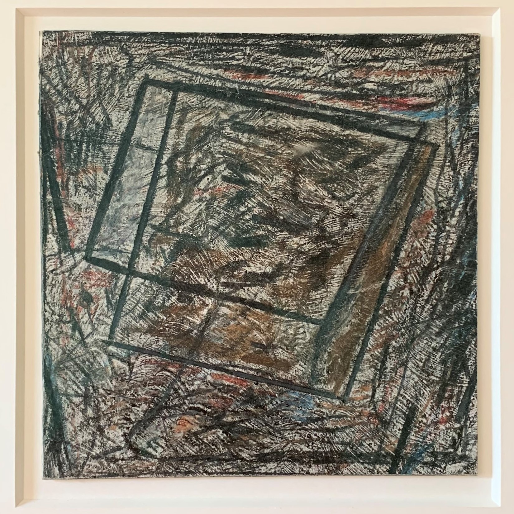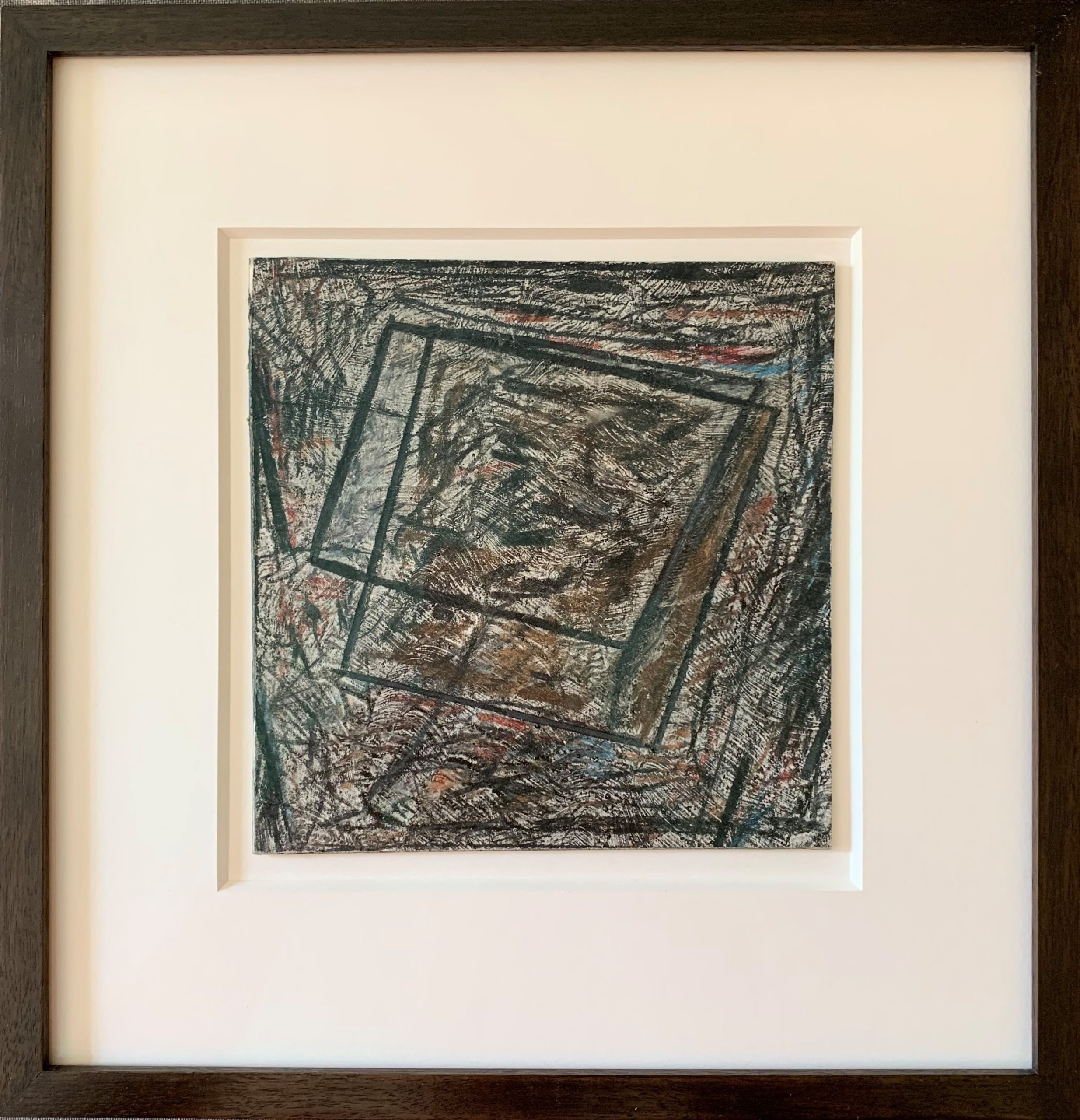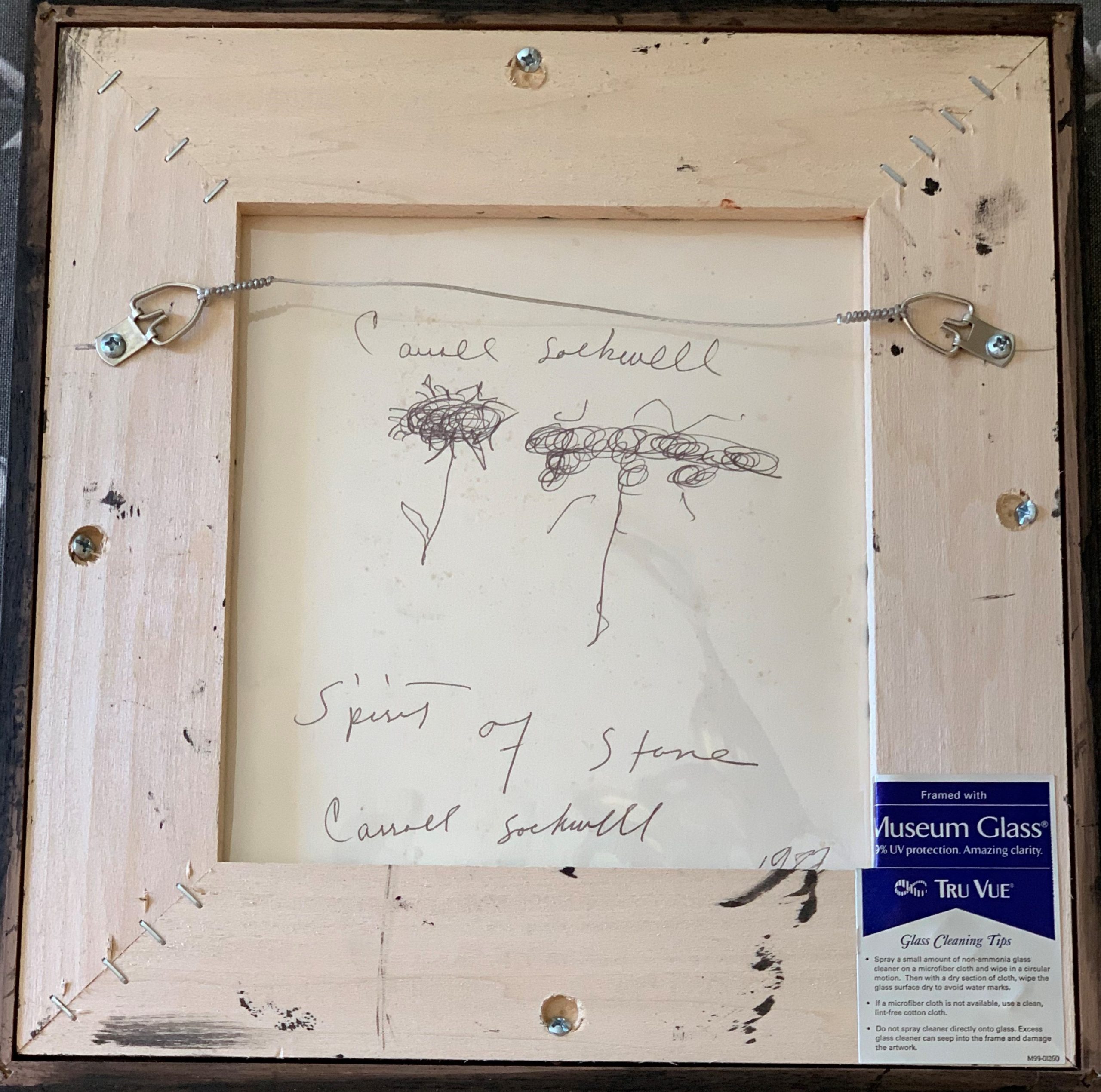 Framed in walnut using archival materials. Artist’s signature, title, and a drawing on former backing board visible en verso protected by an acrylic sheet.