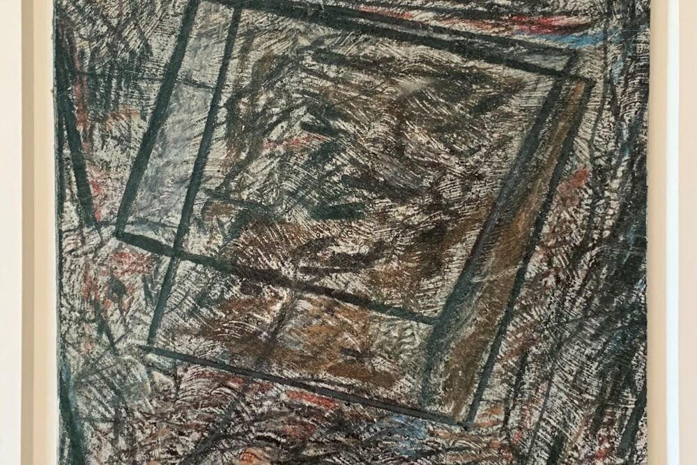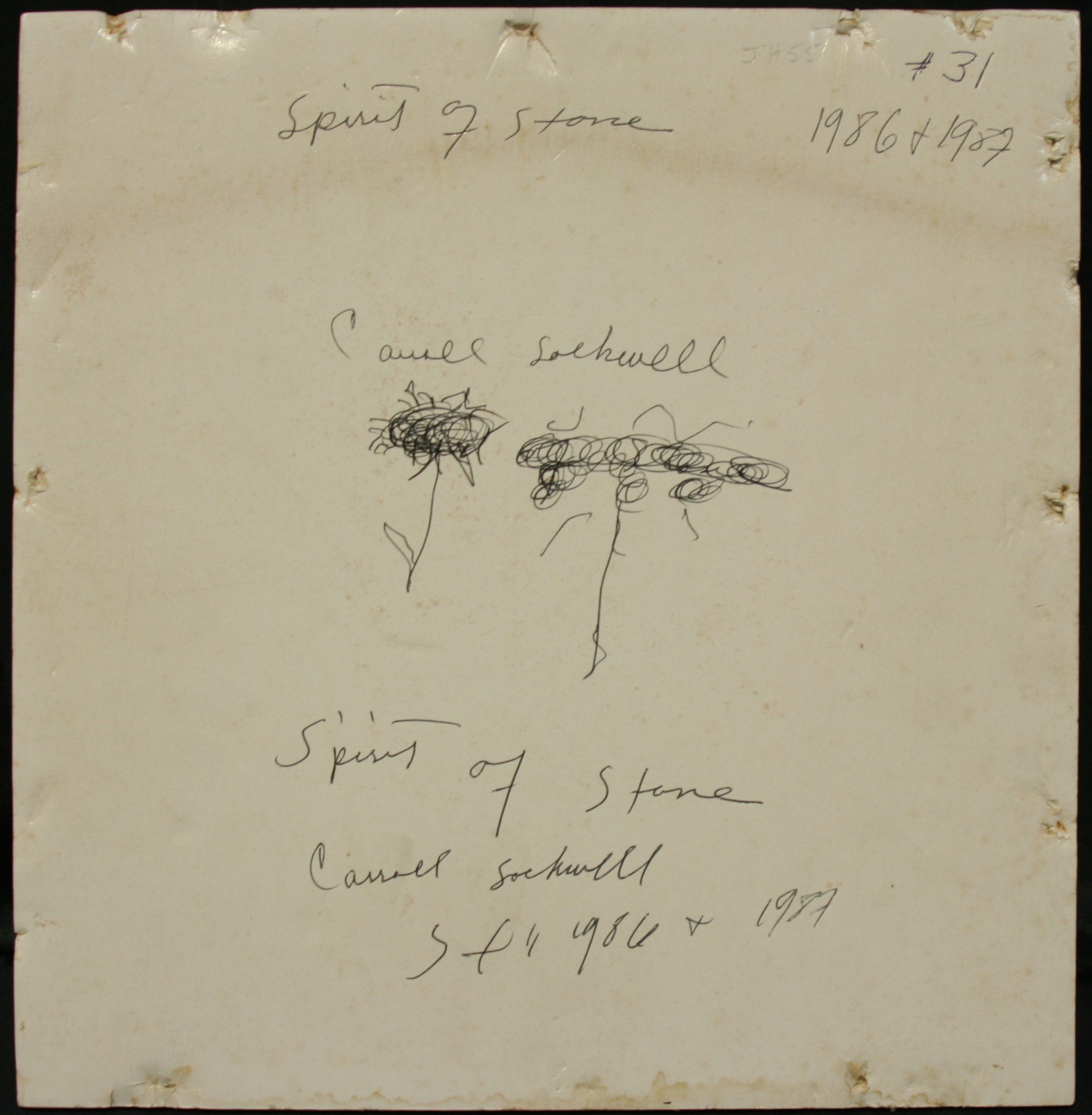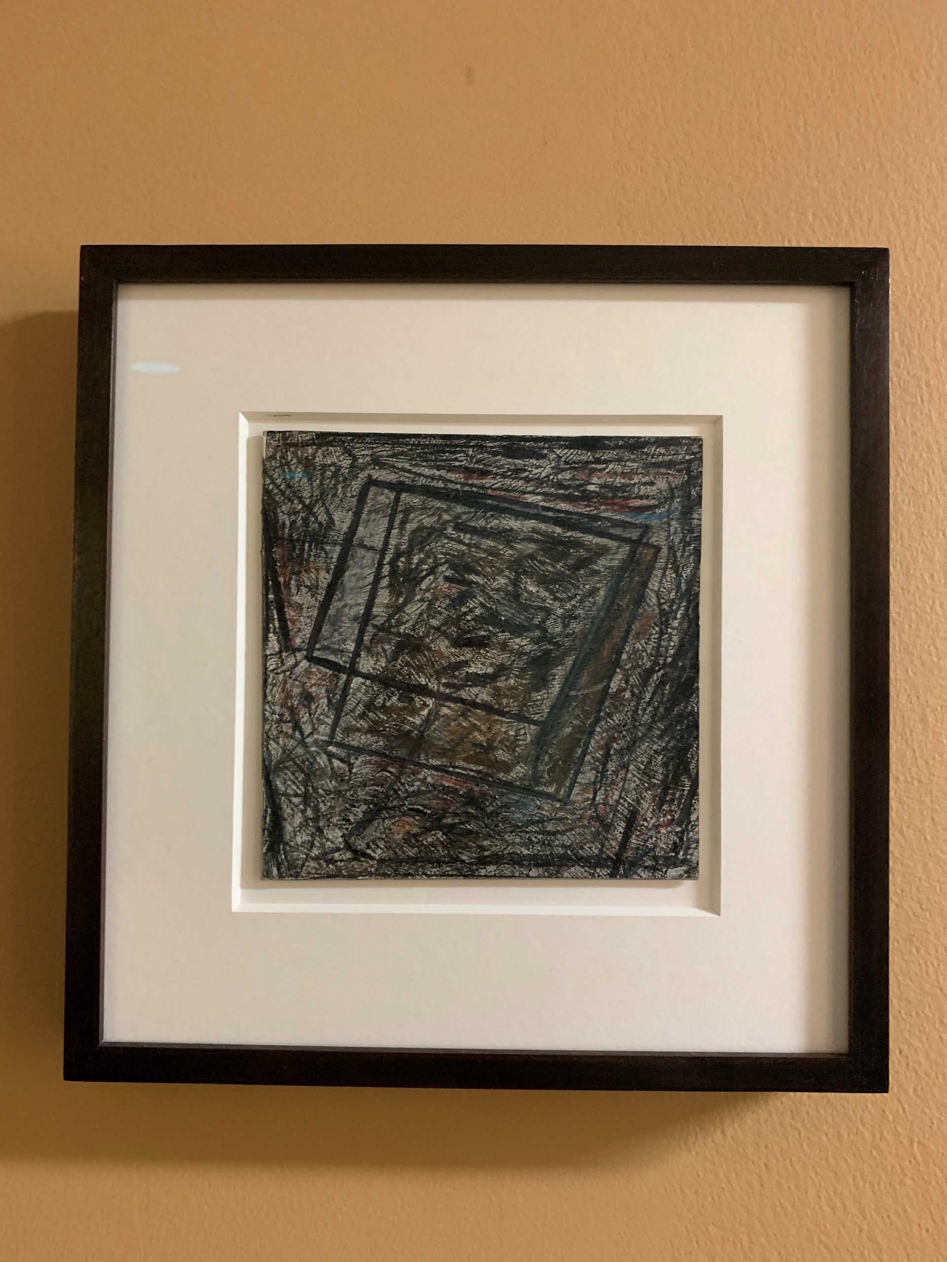 Framed in walnut using archival materials. Artist’s signature, title, and a drawing on former backing board visible en verso protected by an acrylic sheet.