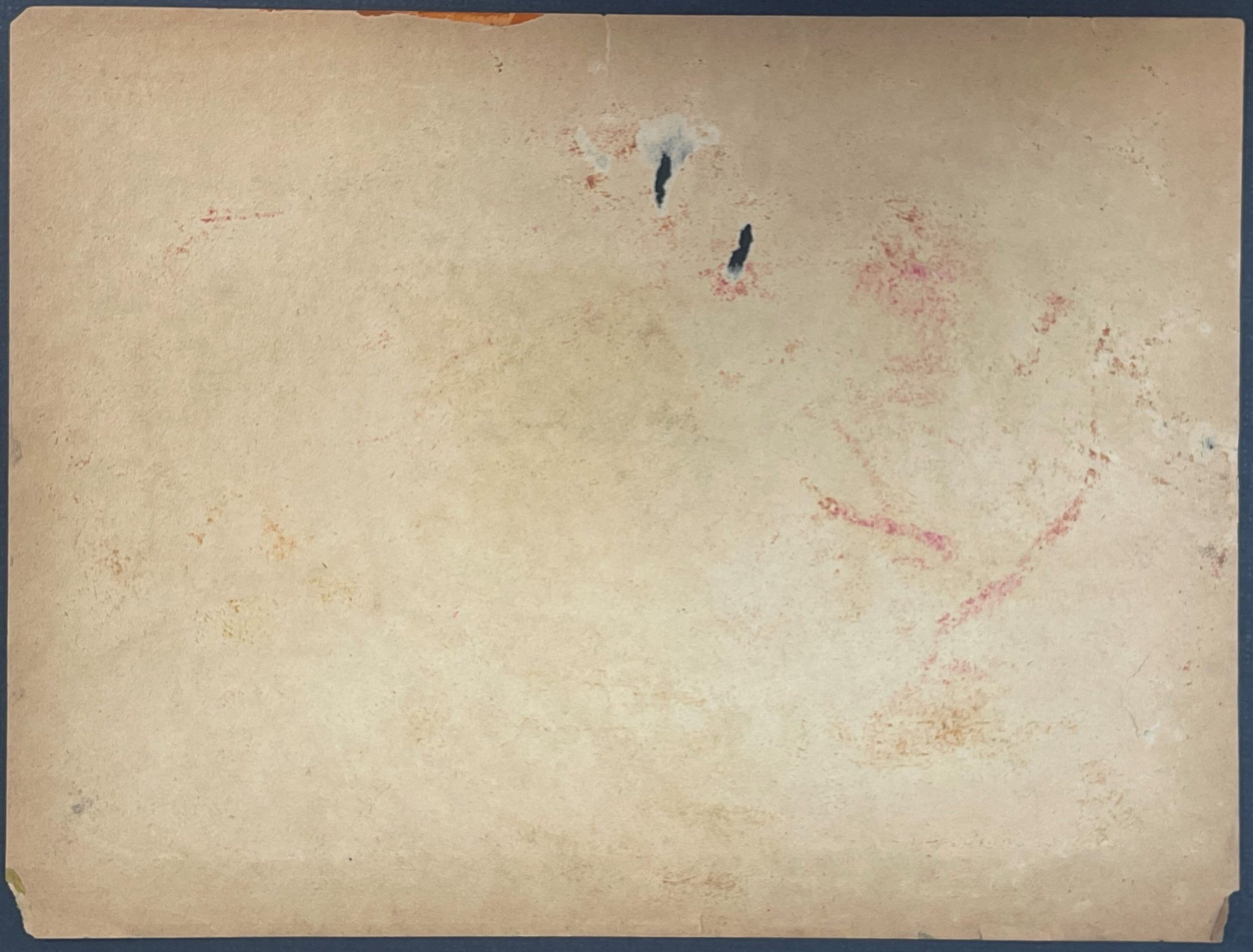 Paper is brittle and lower corners have small losses; two holes in sheet. Defects do not detract from the work, now stabilized in frame.