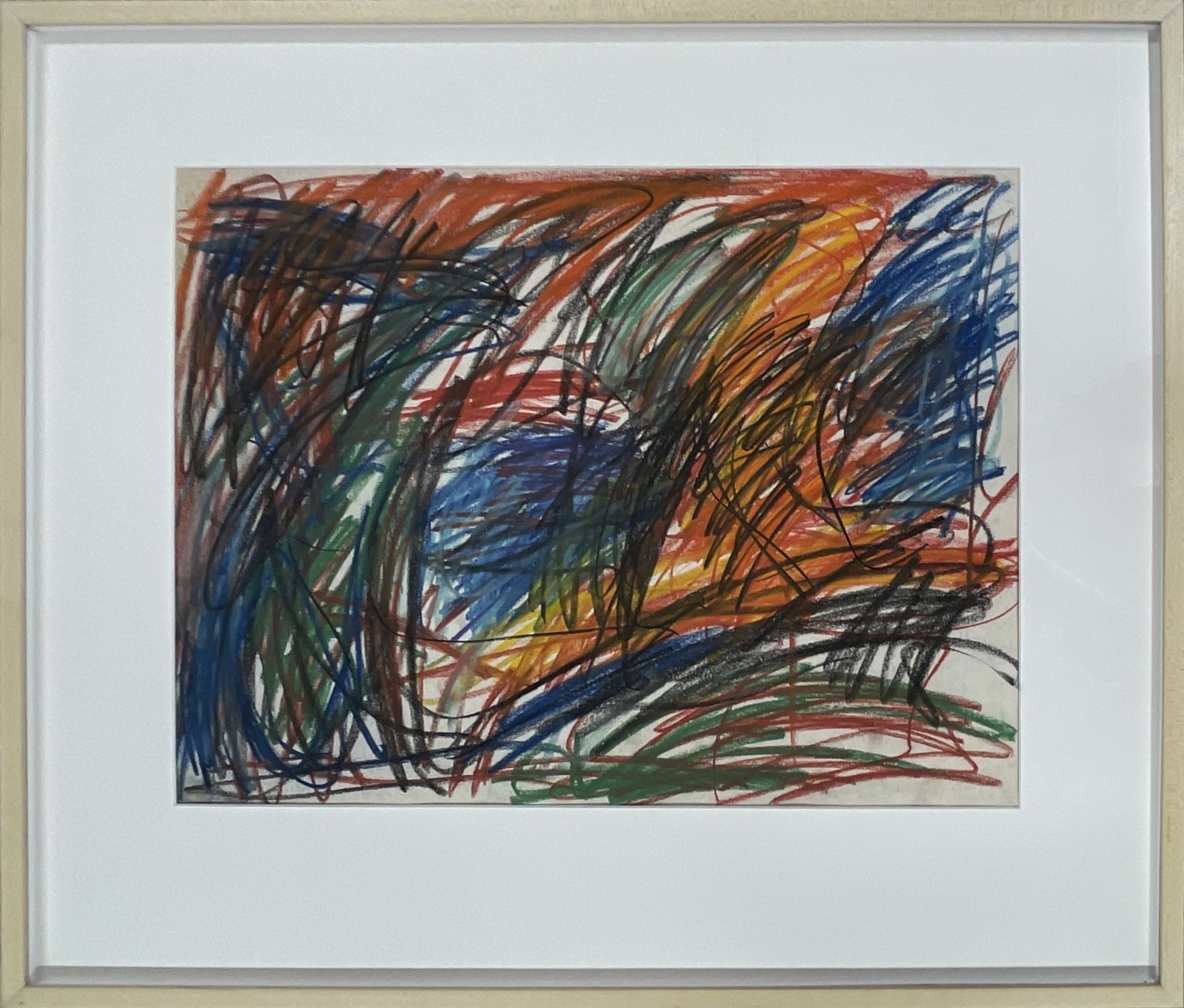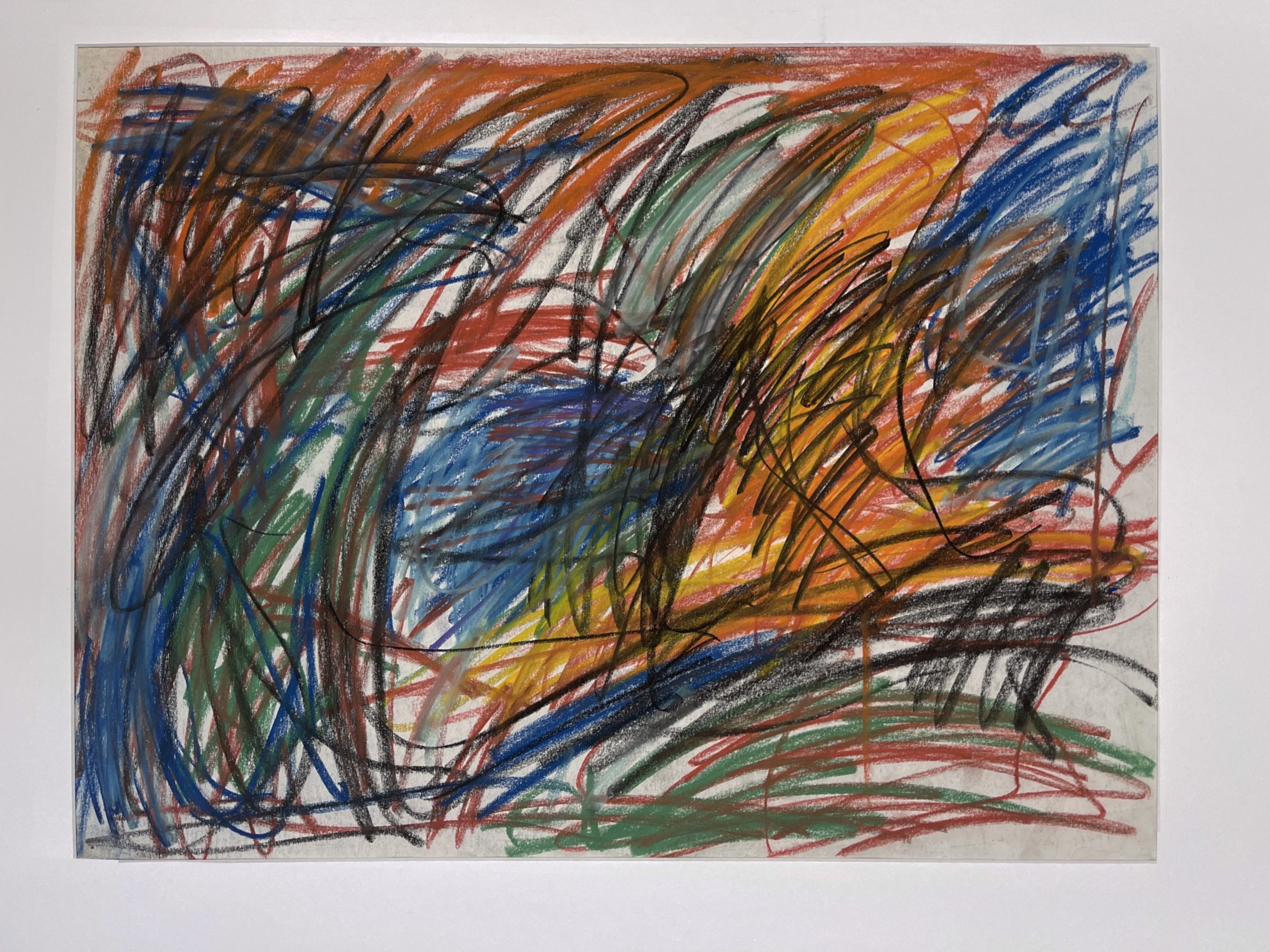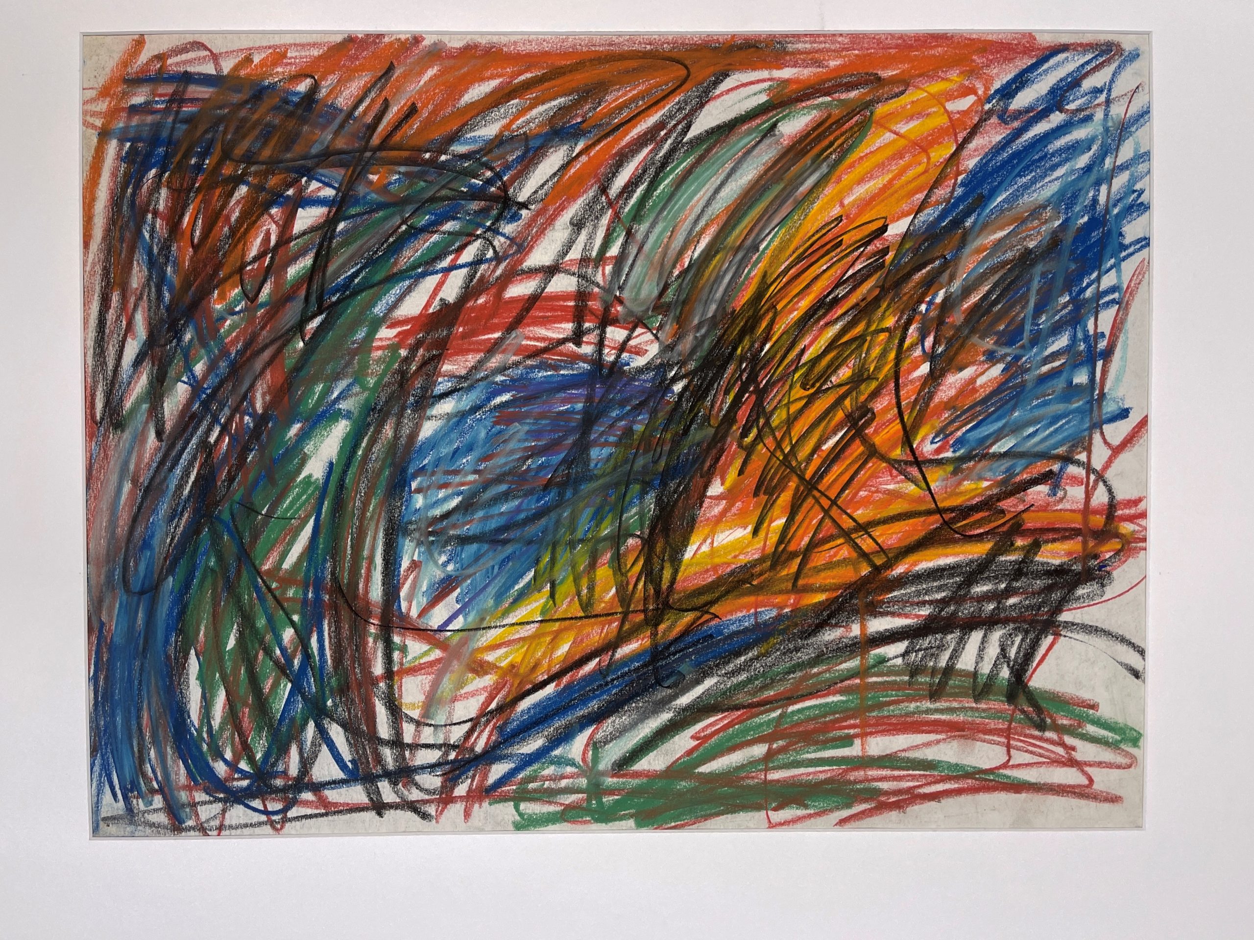 An energetic example of gestural abstraction which is a study in energy and power and color while plainly remaining a work of pure abstraction.
