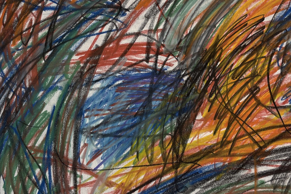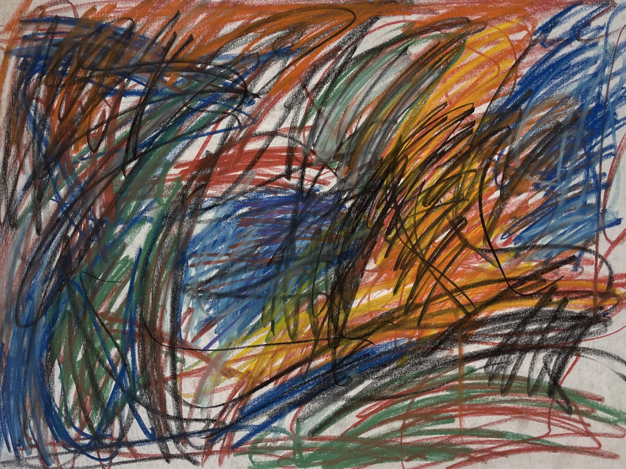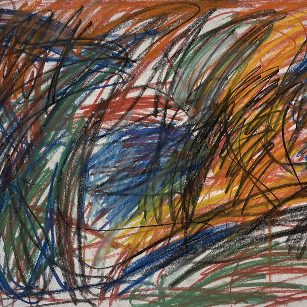 An energetic example of gestural abstraction which is a study in energy and power and color while plainly remaining a work of pure abstraction.